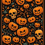 Spooky Pumpkin Patch Area Rug with Gothic Skull Accents and Halloween Vibes(Orange)