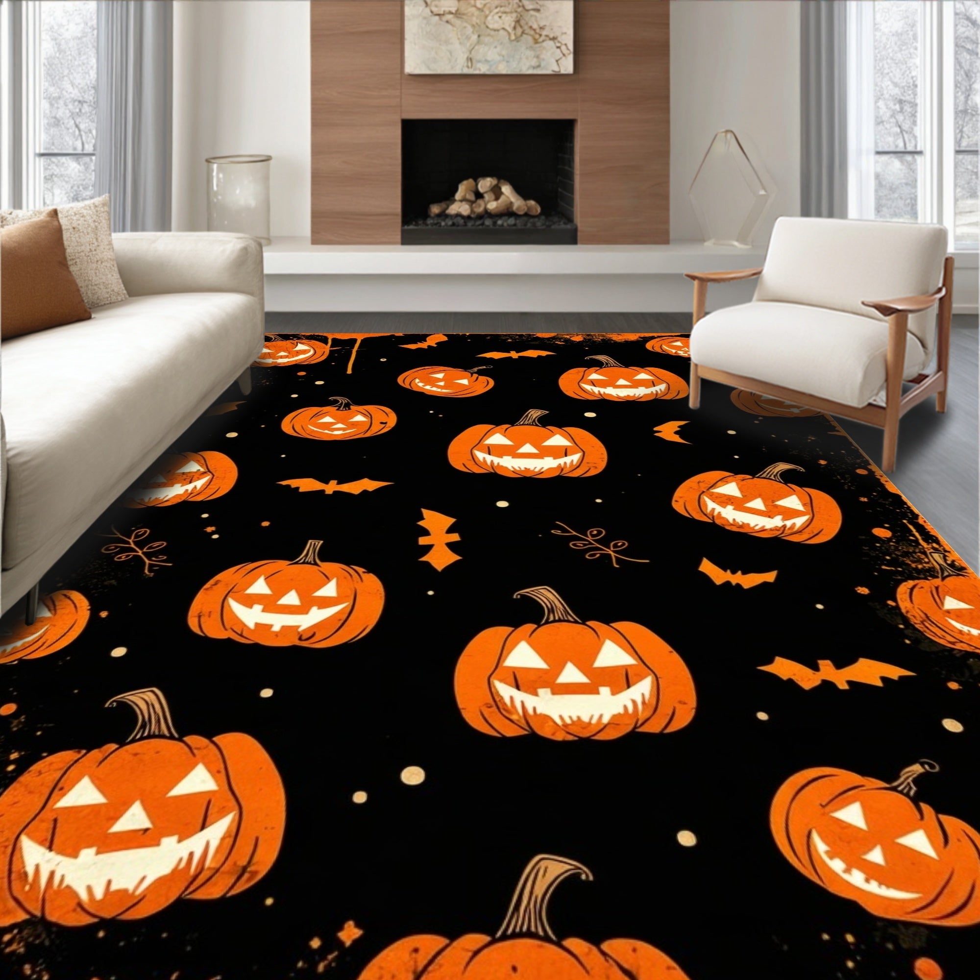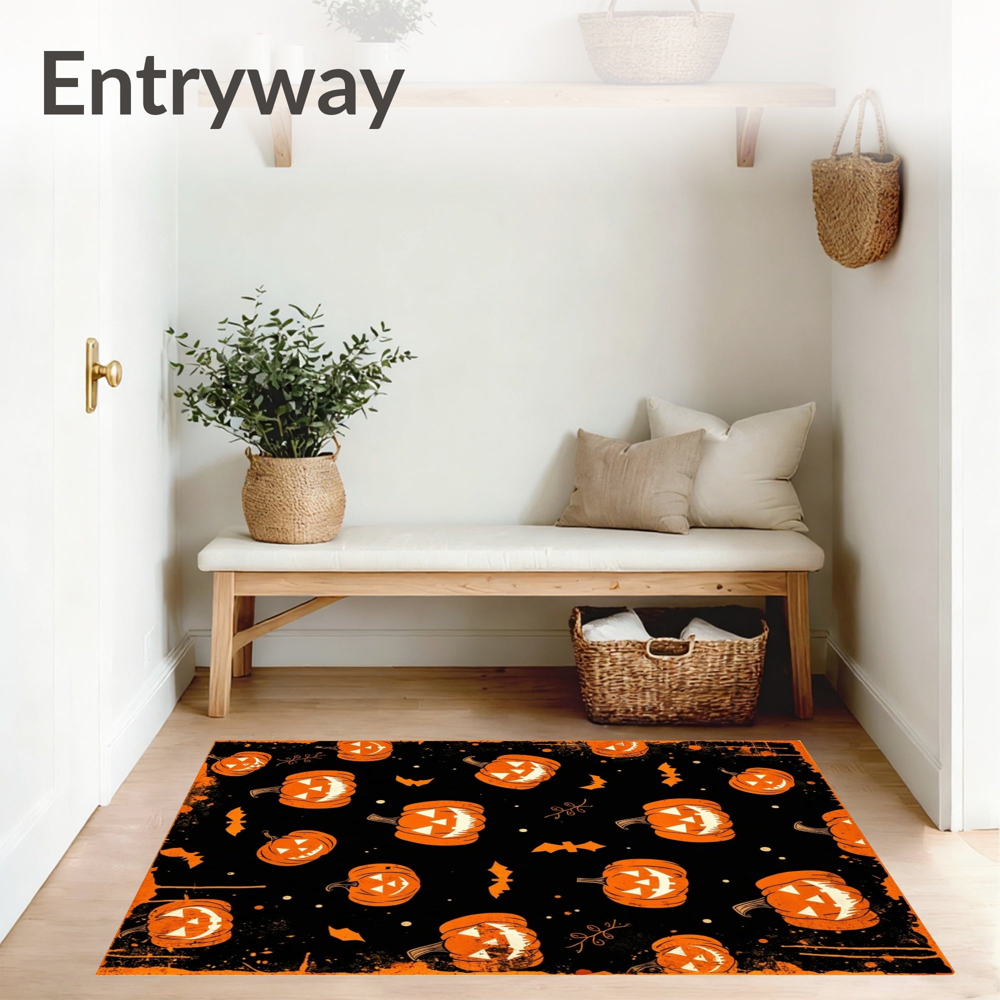 Flatwoven High Traffic Area Rug, Spooky Pumpkin Patch Creepy Jack o Lantern Black, Non Slip, Stain Resistant, Washable Area Rugs for Living Room, Bedroom (Black) Overview:
