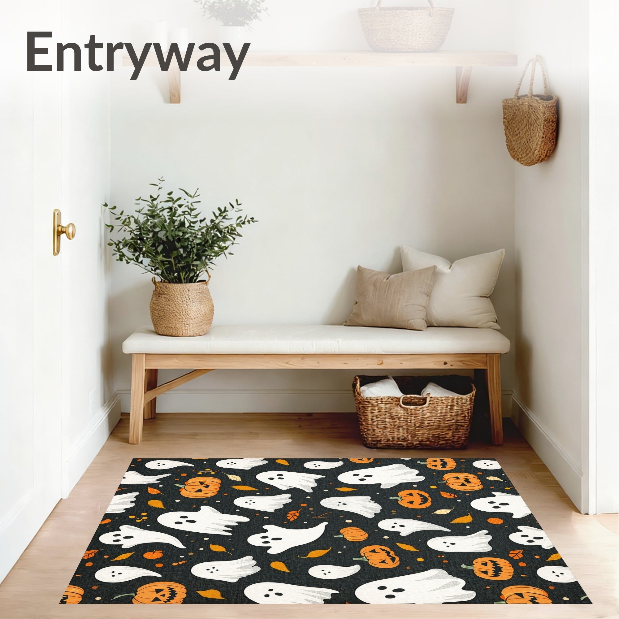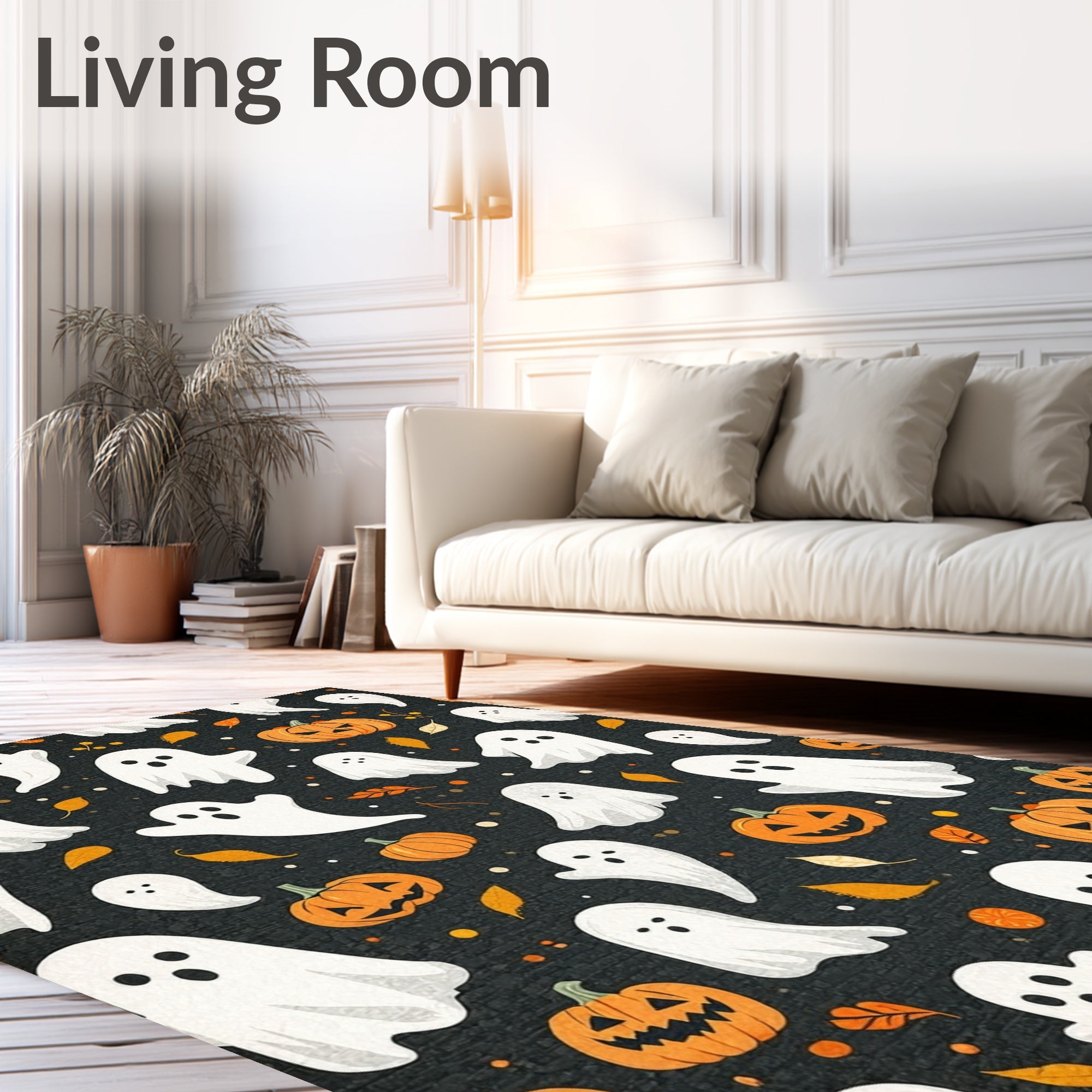 Ultra Soft Area Rug, Non Slip, Stain Resistant, Washable Area Rugs for Living Room, Bedroom, Spooky Season Kitchen Area Rugs Set Pack Non Slip Halloween Decor(Gray) Overview: