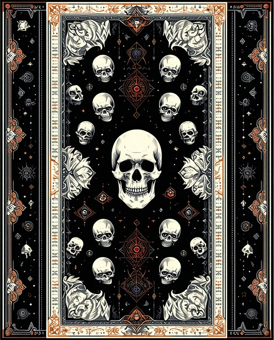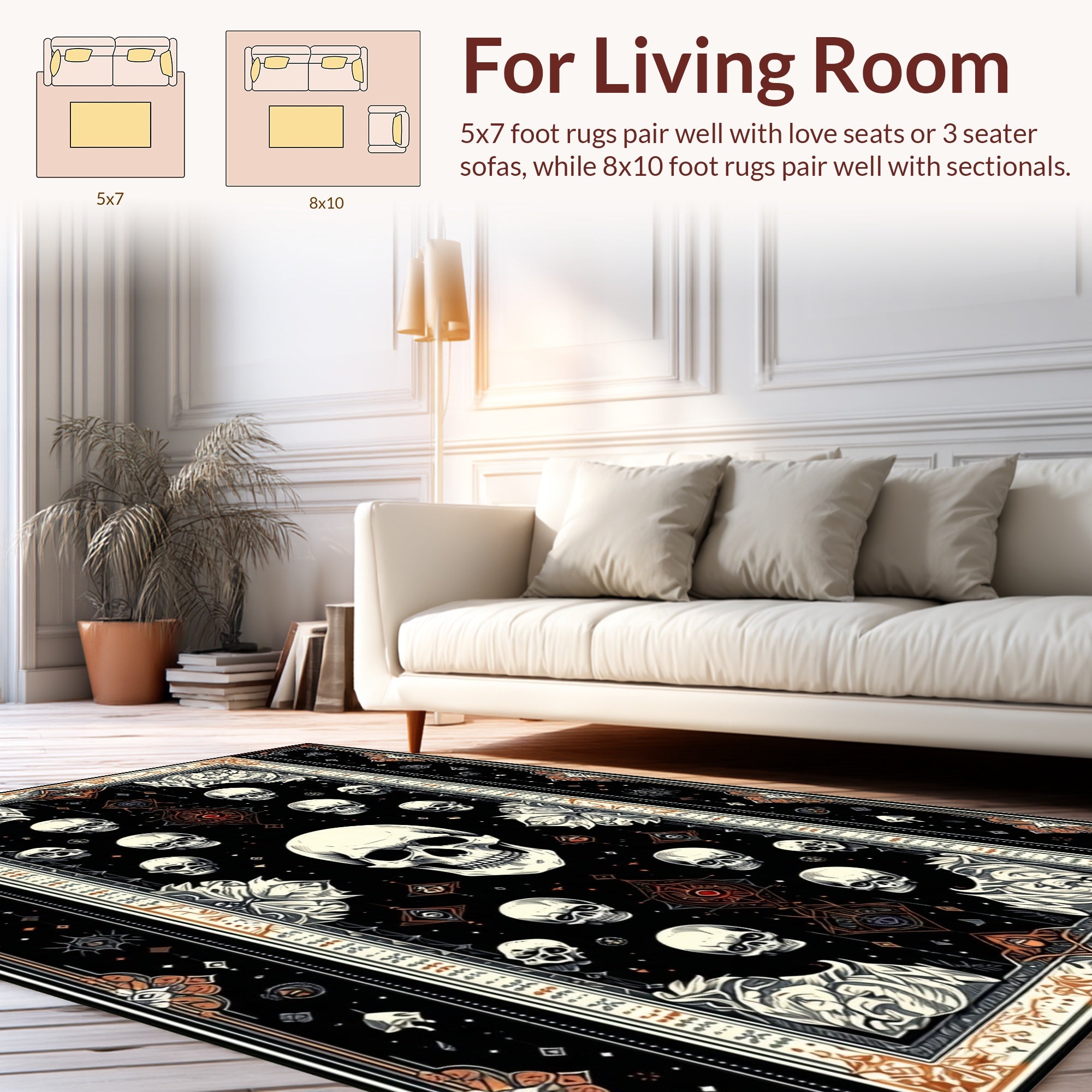 Flatwoven High Traffic Area Rug, Spooky Witchy Themed, Non Slip, Stain Resistant, Washable Area Rugs for Living Room, Bedroom (Black) Overview:
