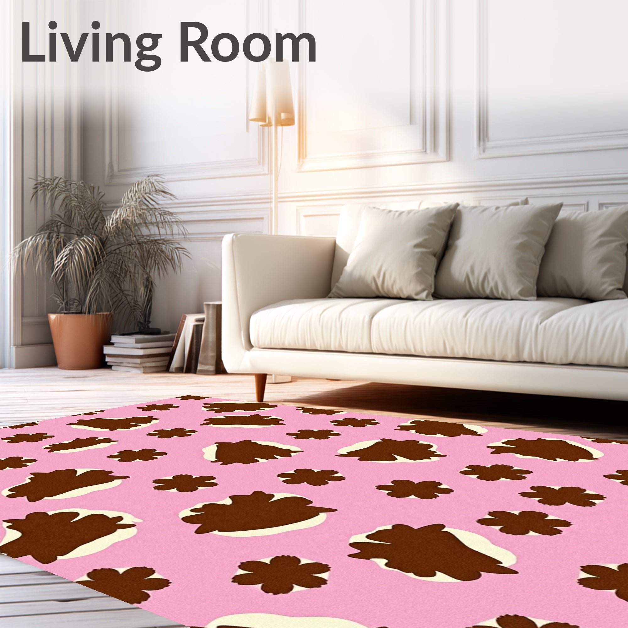 Ultra Soft Area Rug, Non Slip, Stain Resistant, Washable Area Rugs for Living Room, Bedroom, Spotted Cowhide Area with Natural Ranch Design(Pink) Overview: