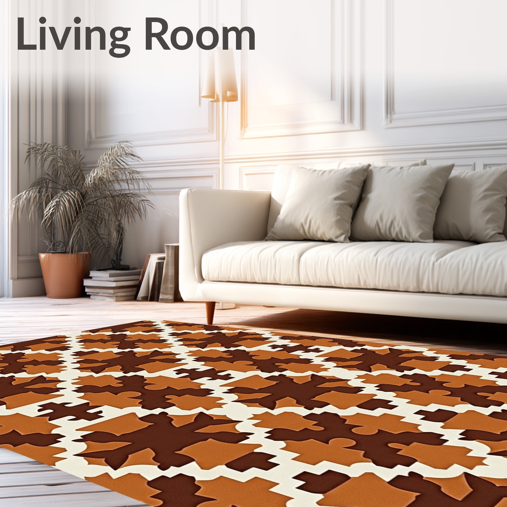 Ultra Soft Area Rug, Non Slip, Stain Resistant, Washable Area Rugs for Living Room, Bedroom, Spotted with Interlocking Accents(Brown) Overview: