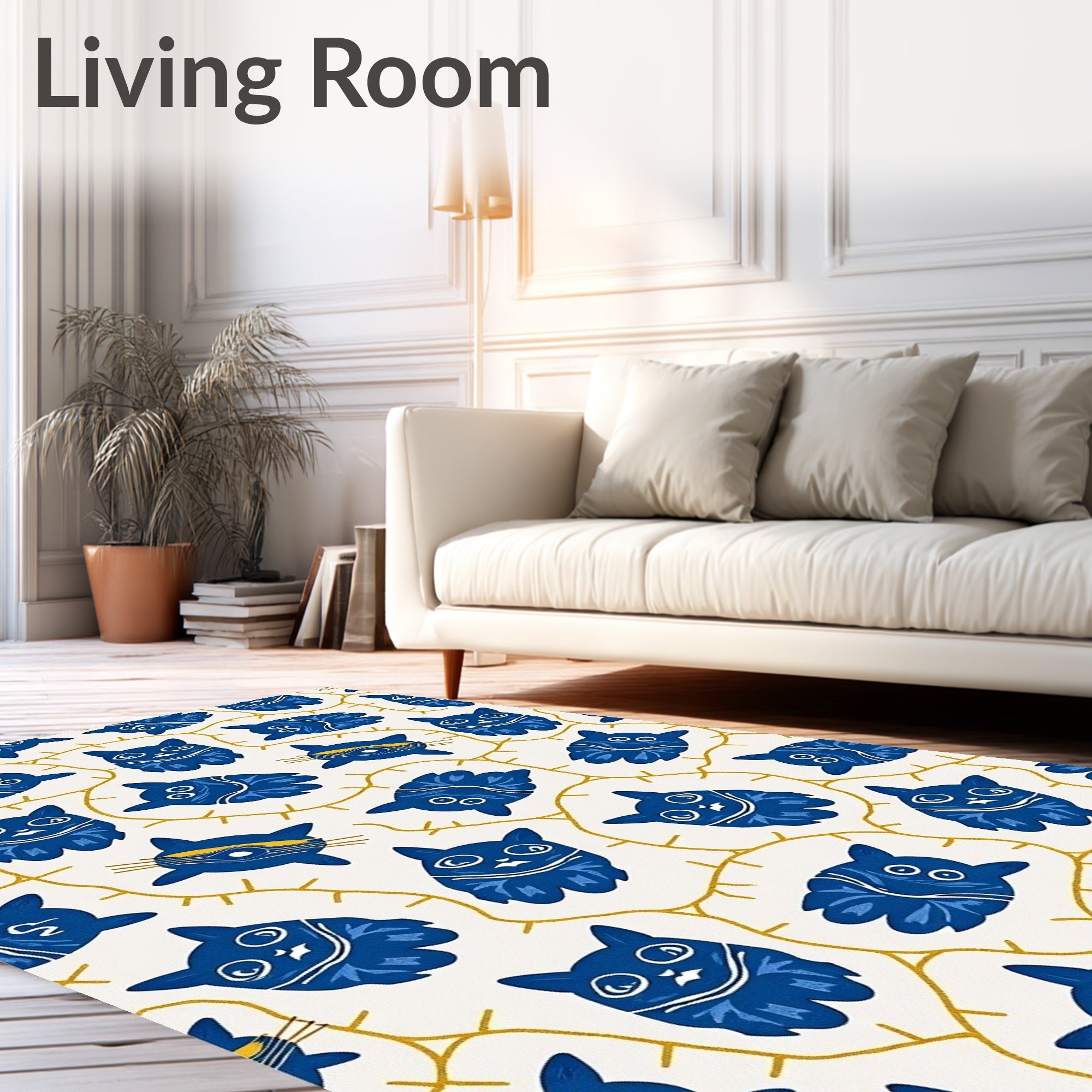 Ultra Soft Area Rug, Non Slip, Stain Resistant, Washable Area Rugs for Living Room, Bedroom, Starlit Feline Dance Featuring Abstract Holiday Lights(Blue) Overview: