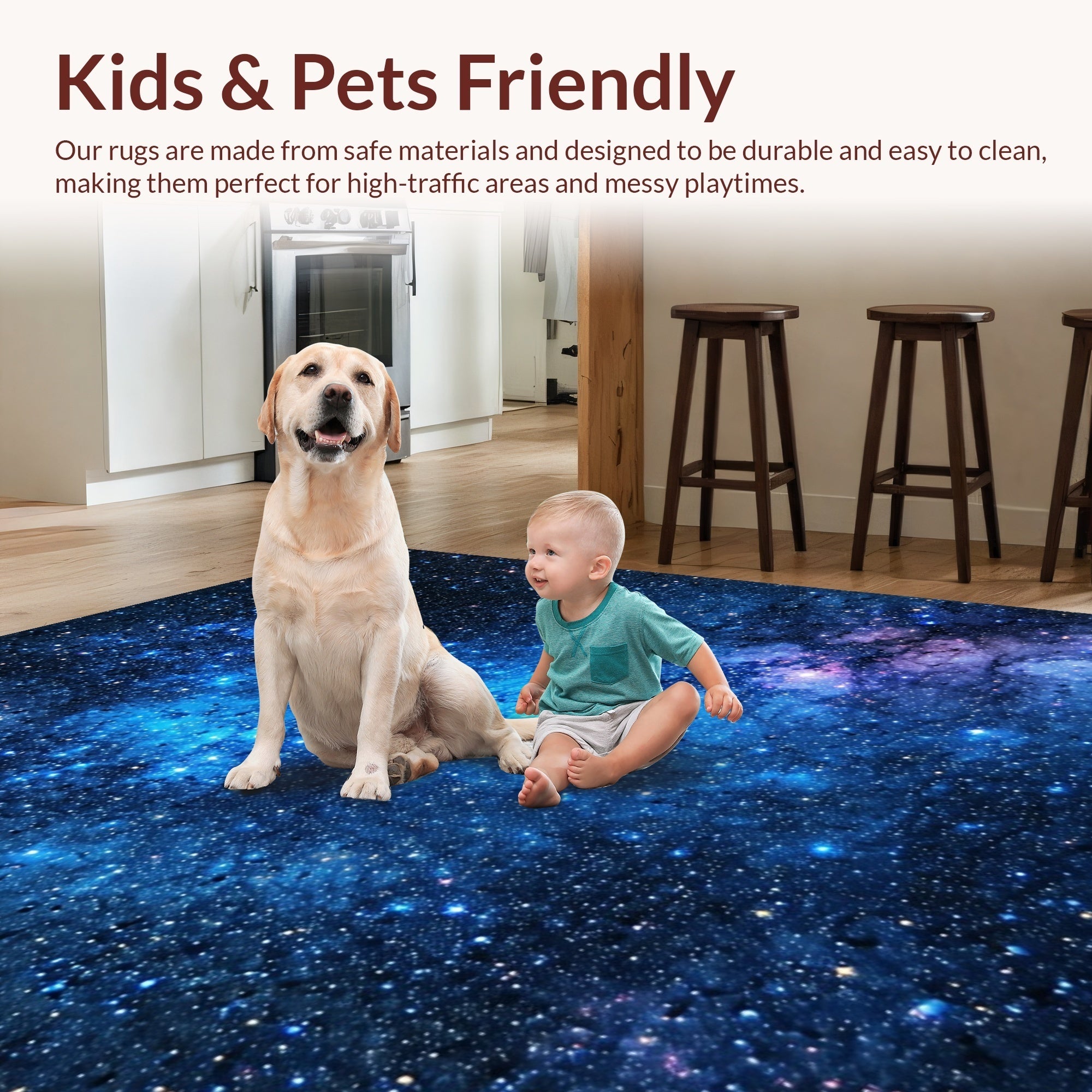 Ultra Soft Area Rug, Non Slip, Stain Resistant, Washable Area Rugs for Living Room, Bedroom, Starry Sky Glitter Kids Bedroom Rug(Blue) Overview: