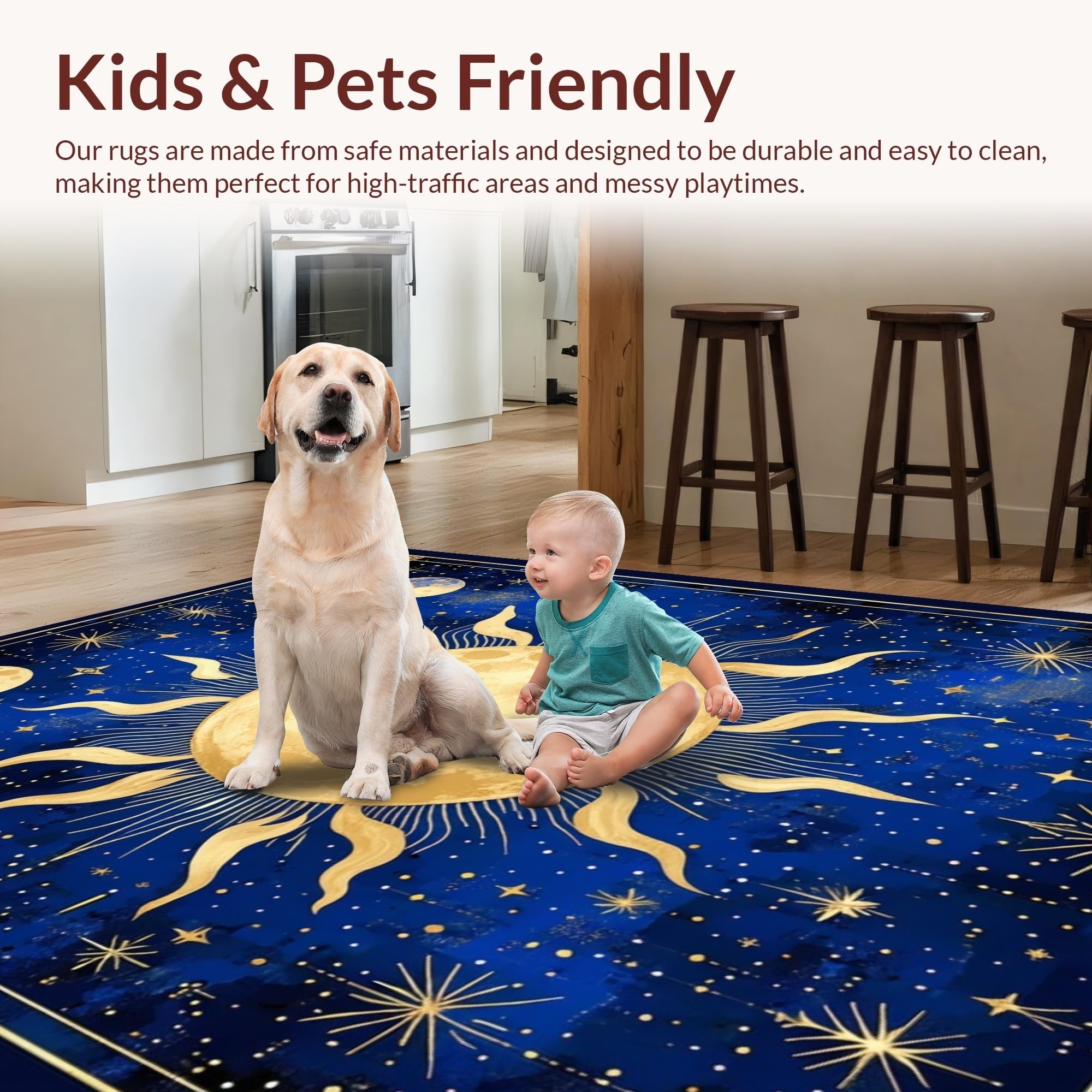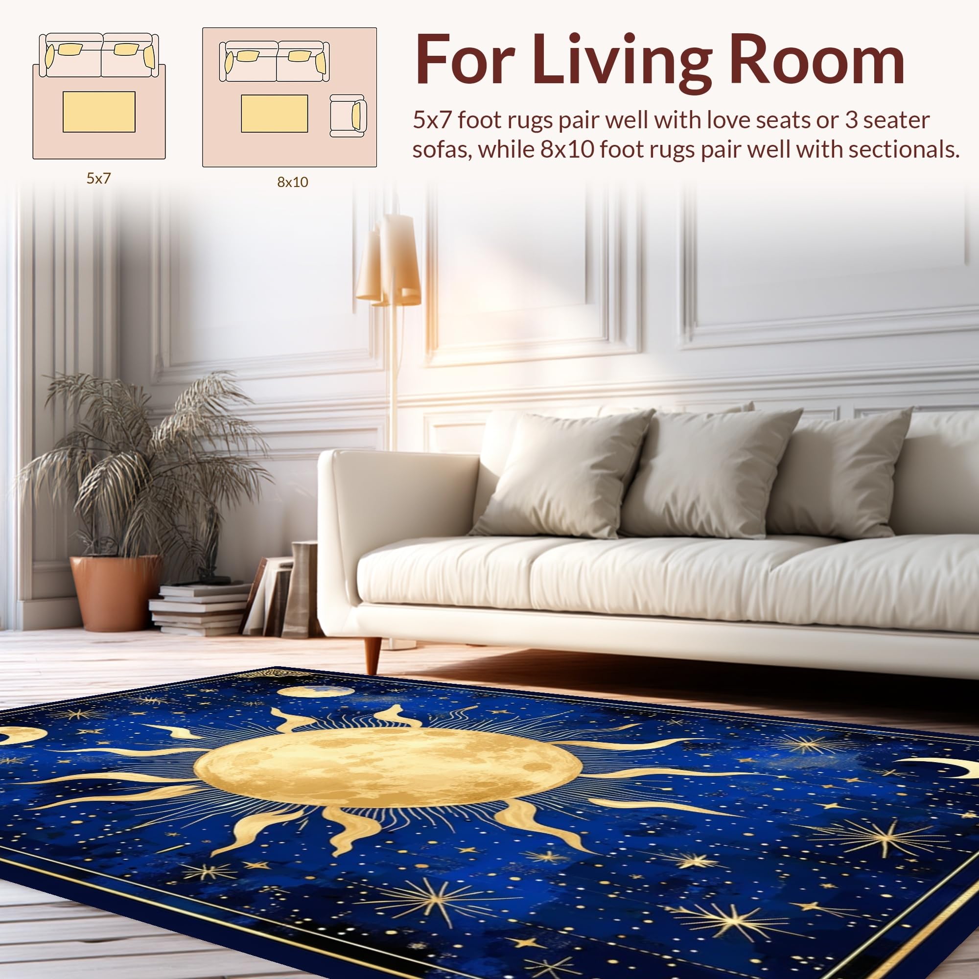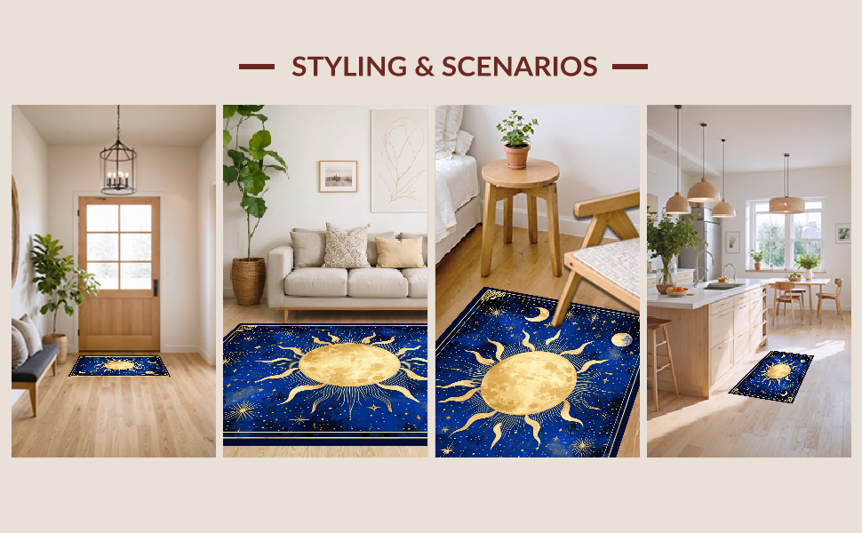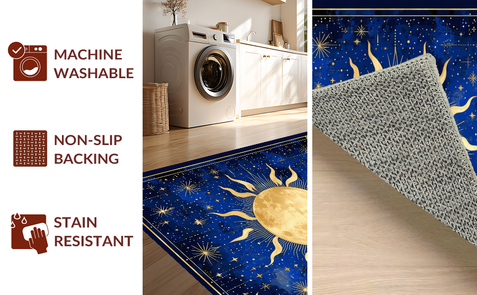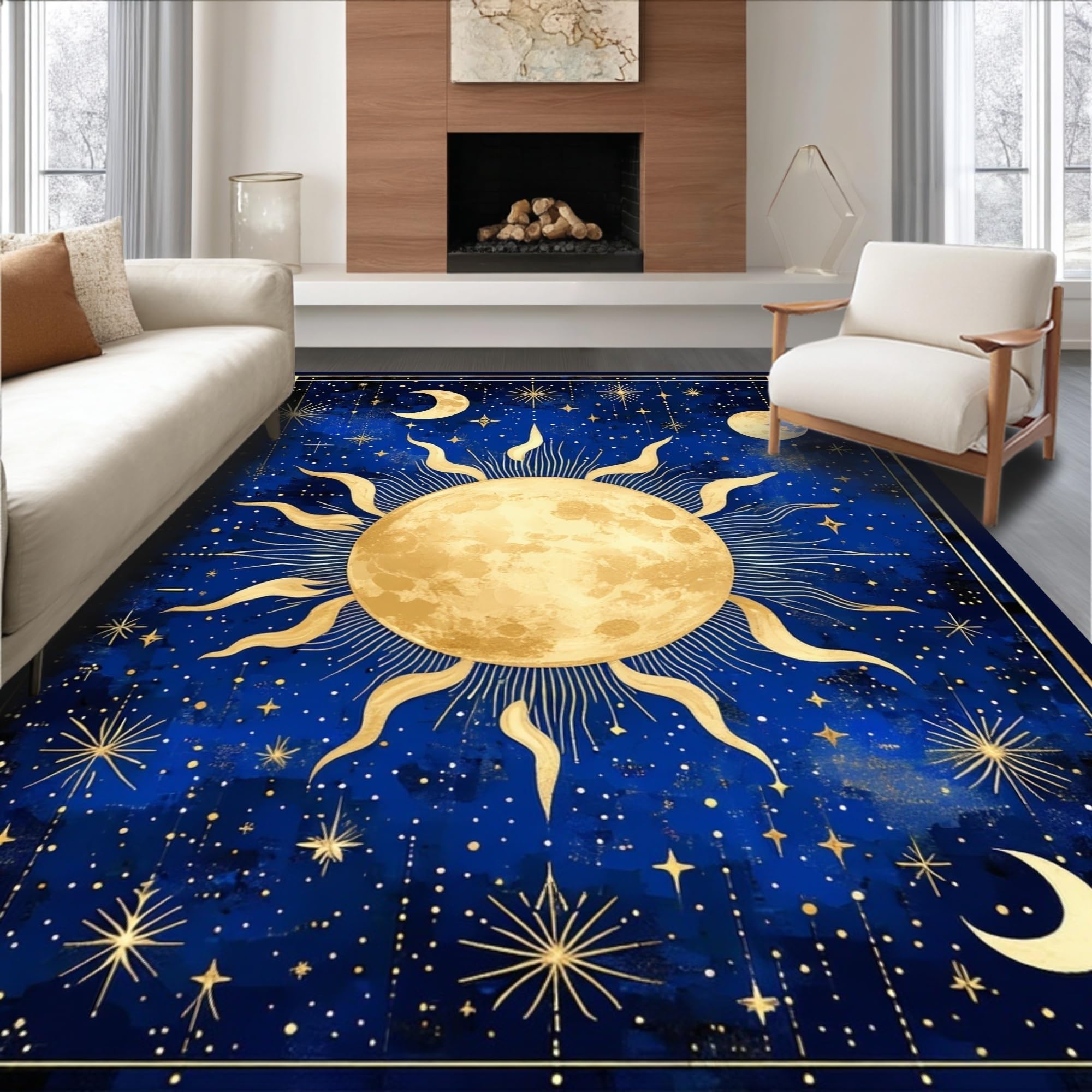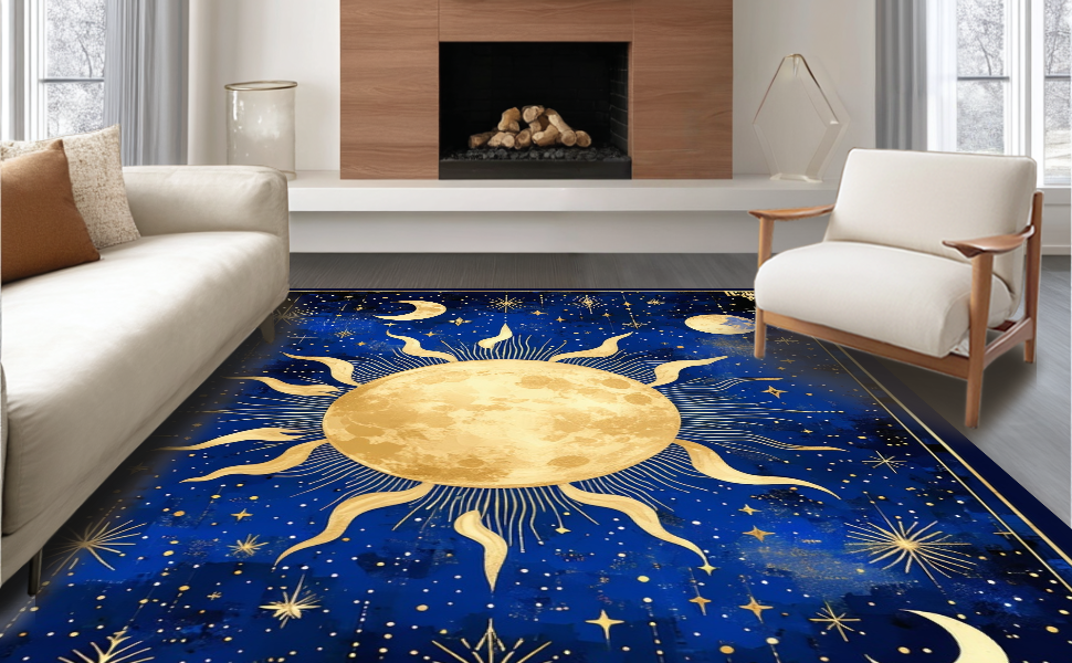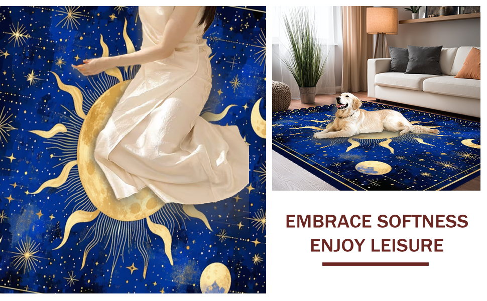 Ultra Soft Area Rug, Non Slip, Stain Resistant, Washable Area Rugs for Living Room, Bedroom, Stellar Dreamy Moonlit Pattern(Blue) Overview: