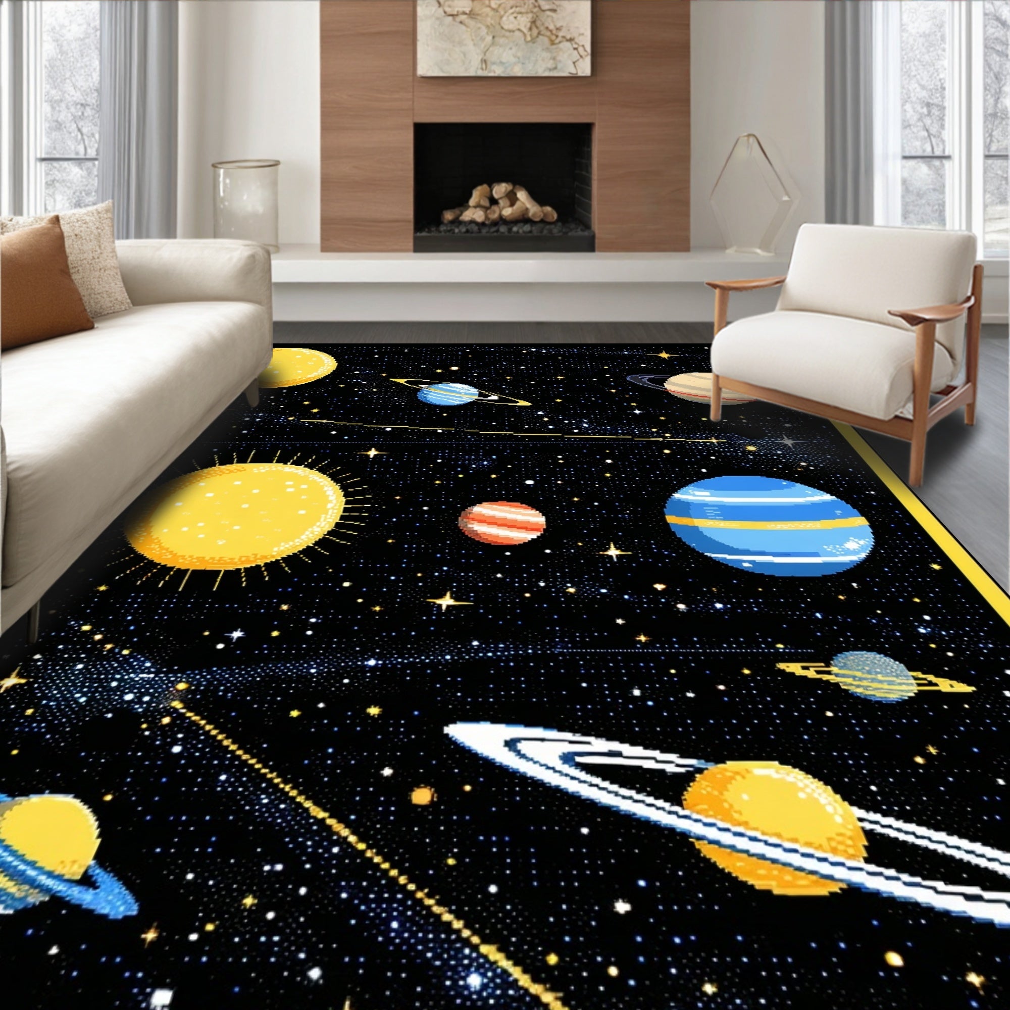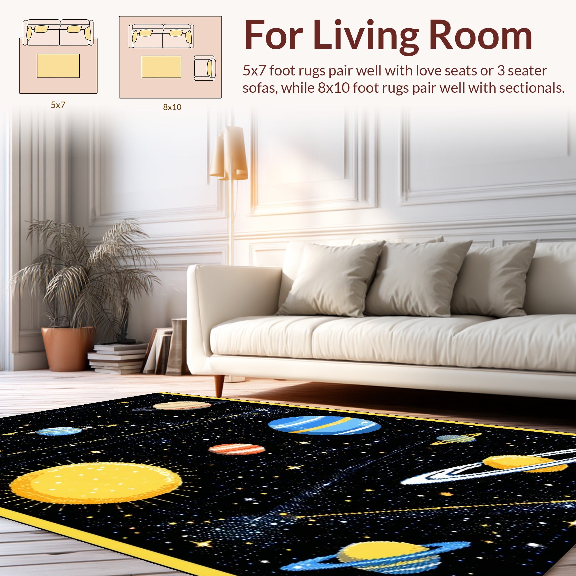 Flatwoven High Traffic Area Rug, Stellar Educational Play Space, Non Slip, Stain Resistant, Washable Area Rugs for Living Room, Bedroom (Yellow) Overview: