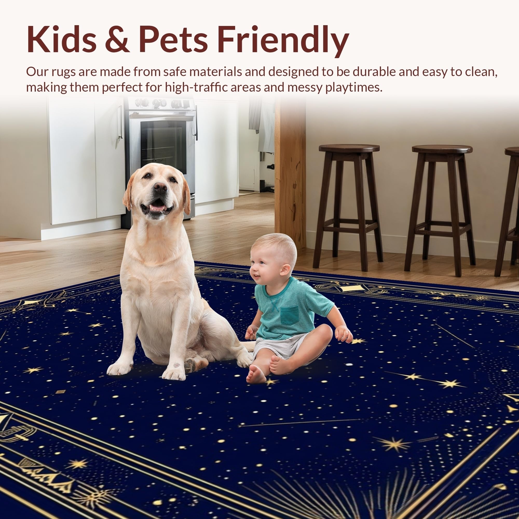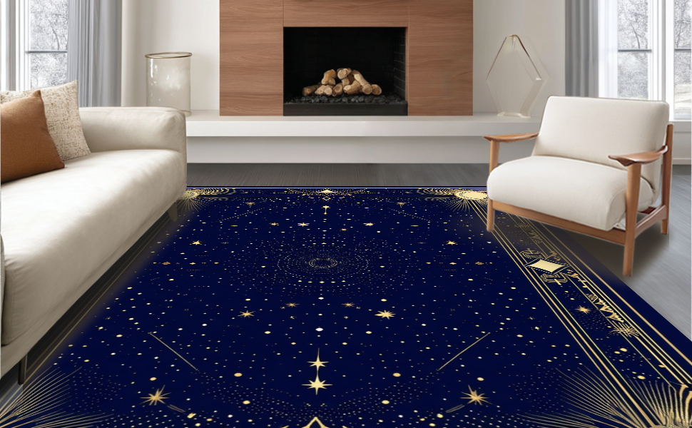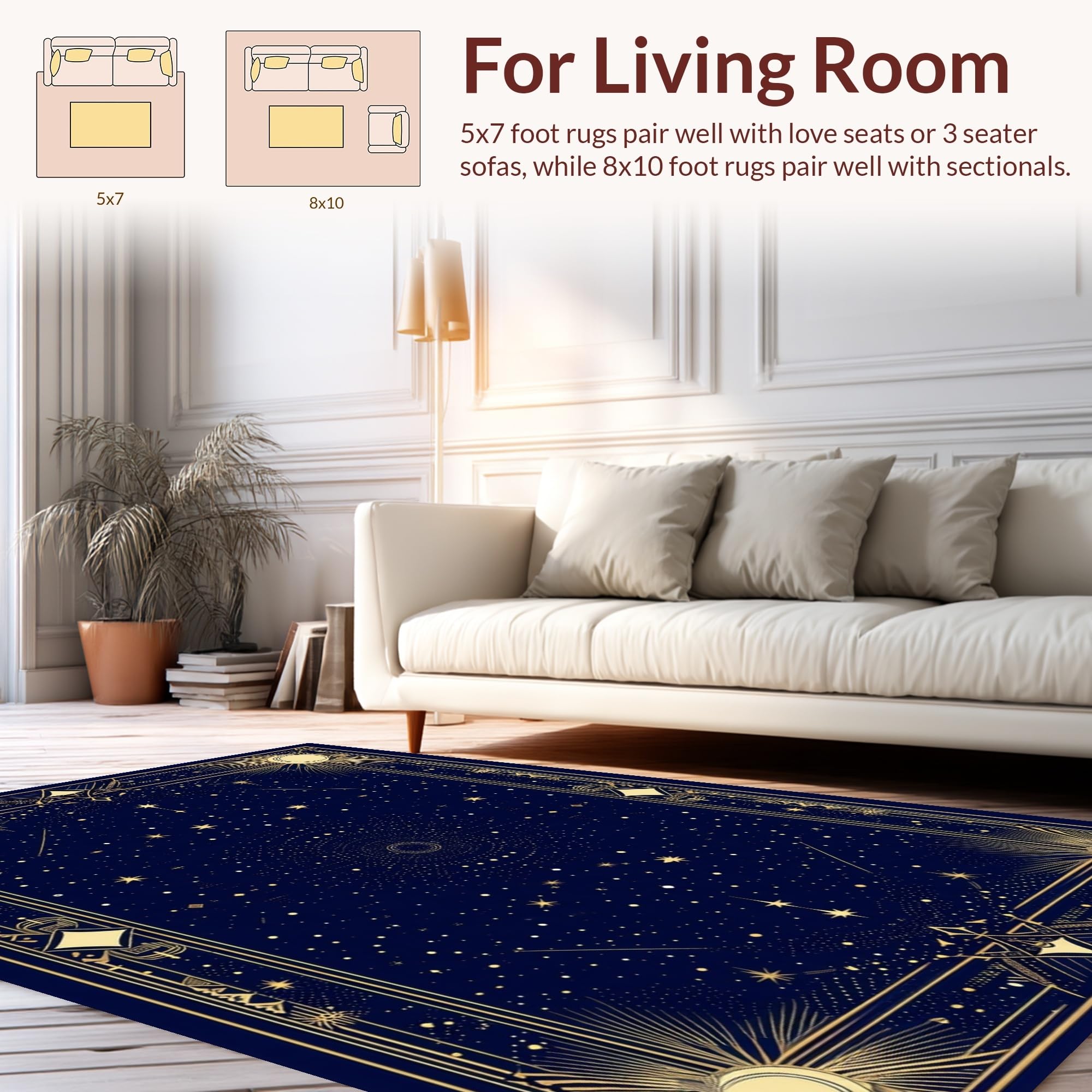 Ultra Soft Area Rug, Non Slip, Stain Resistant, Washable Area Rugs for Living Room, Bedroom, Striking Abstract Indigo Swirl(Blue) Overview: