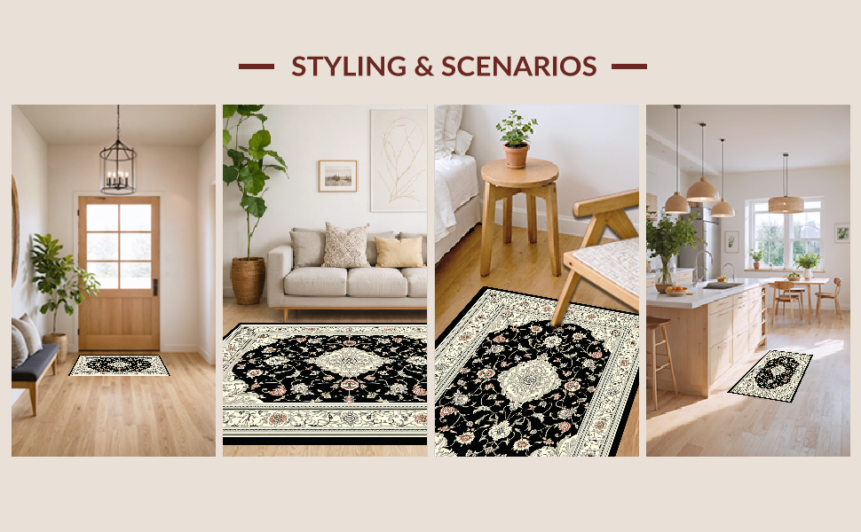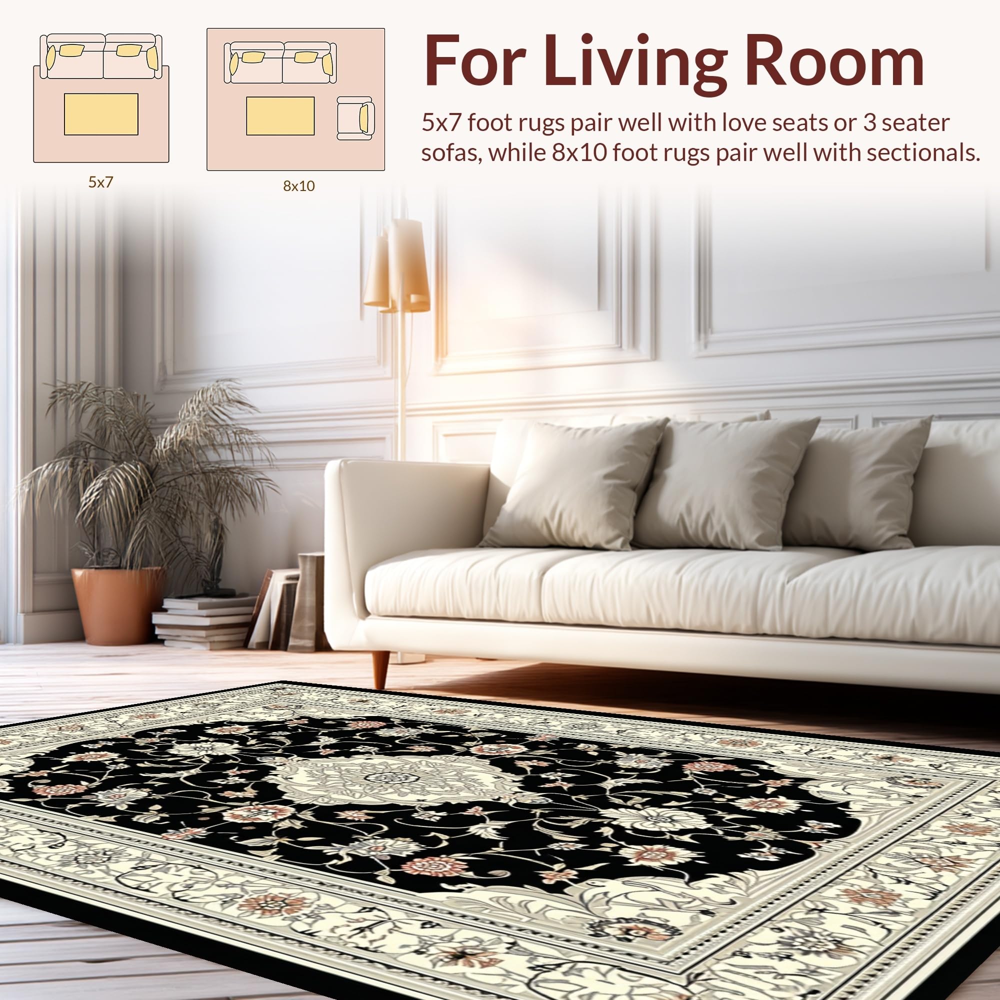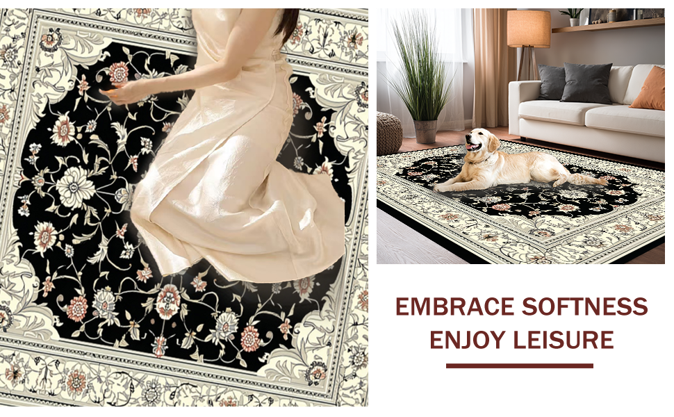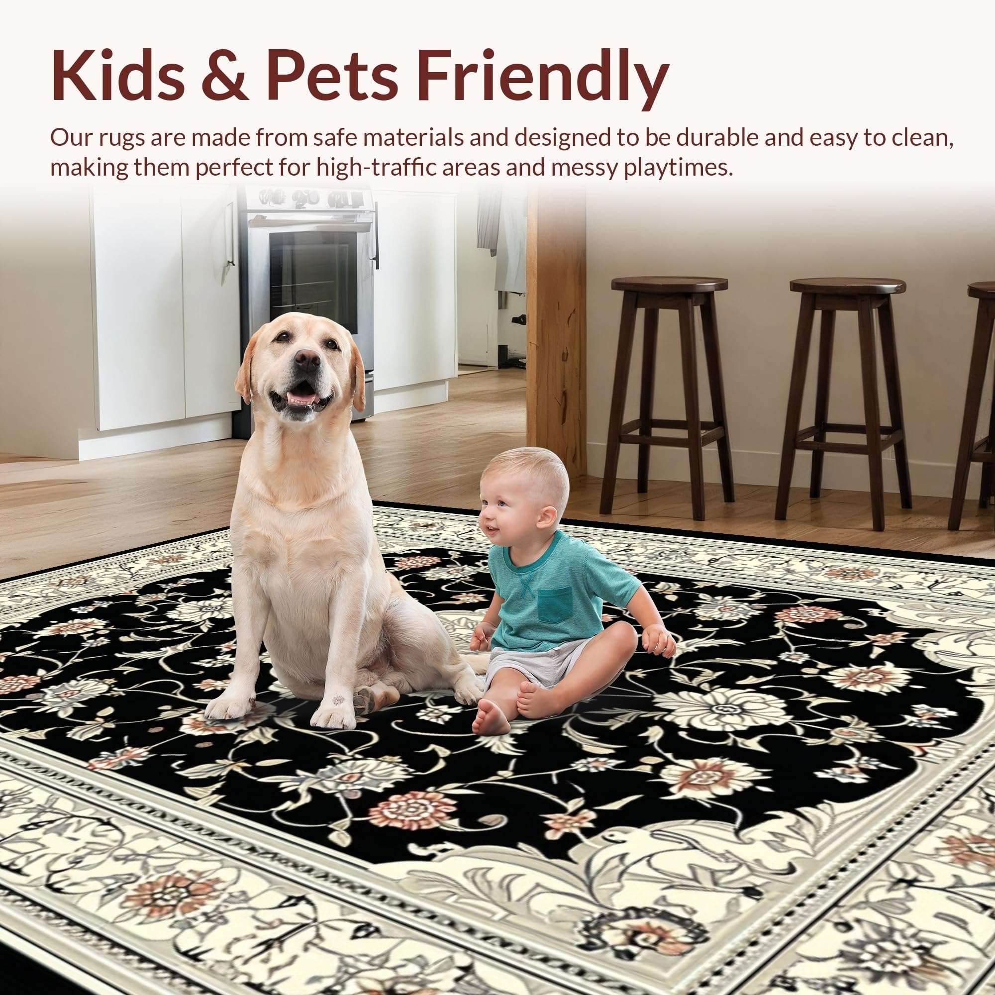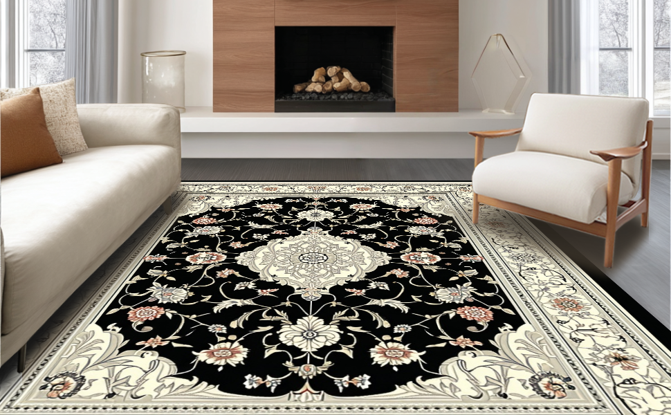 Ultra Soft Area Rug, Non Slip, Stain Resistant, Washable Area Rugs for Living Room, Bedroom, Striking Black and Ivory Trellis(Black) Overview: