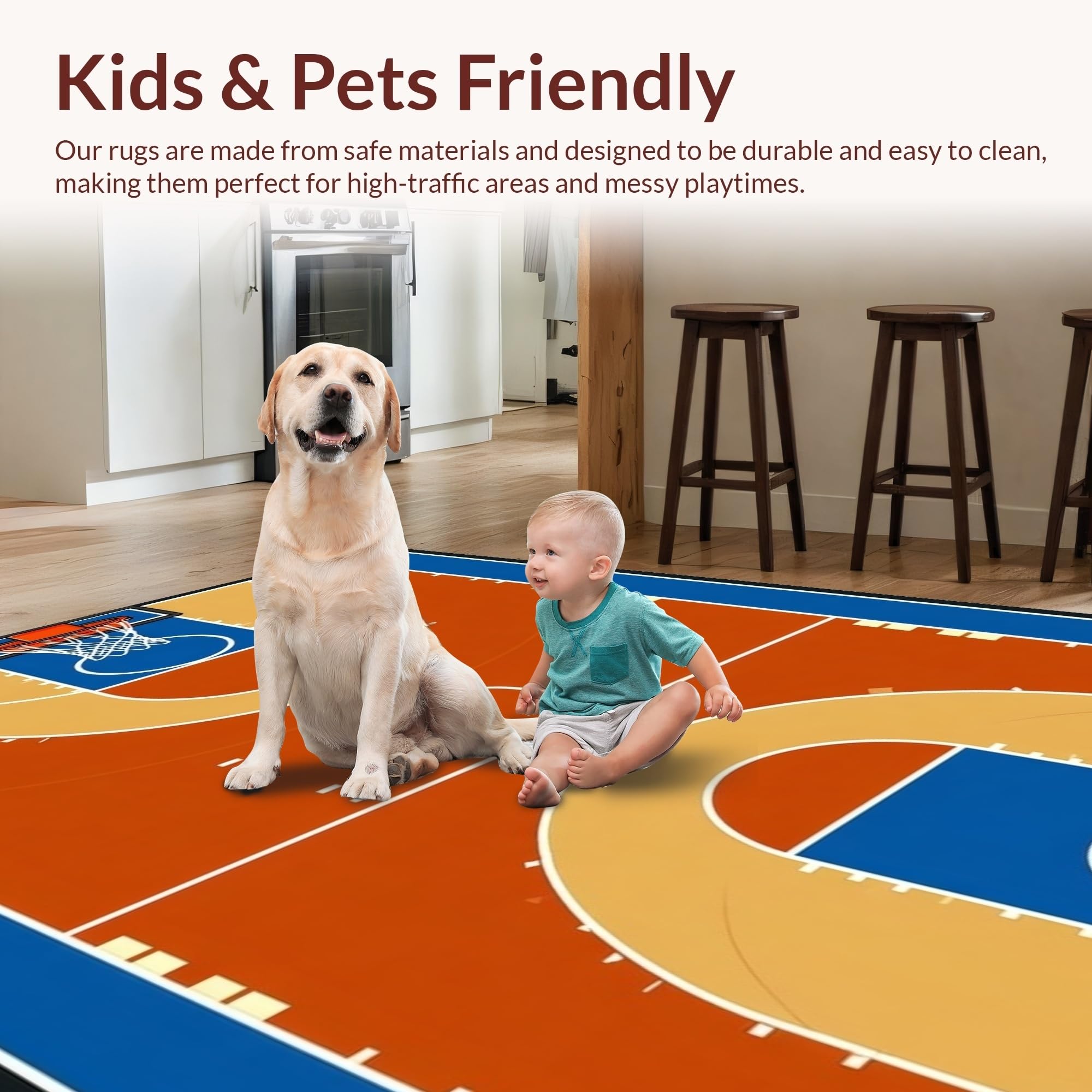 Ultra Soft Area Rug, Non Slip, Stain Resistant, Washable Area Rugs for Living Room, Bedroom, Striking Colorful Court Layout(Brown) Overview: