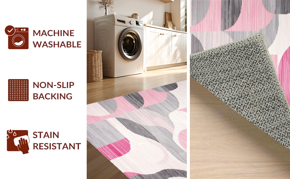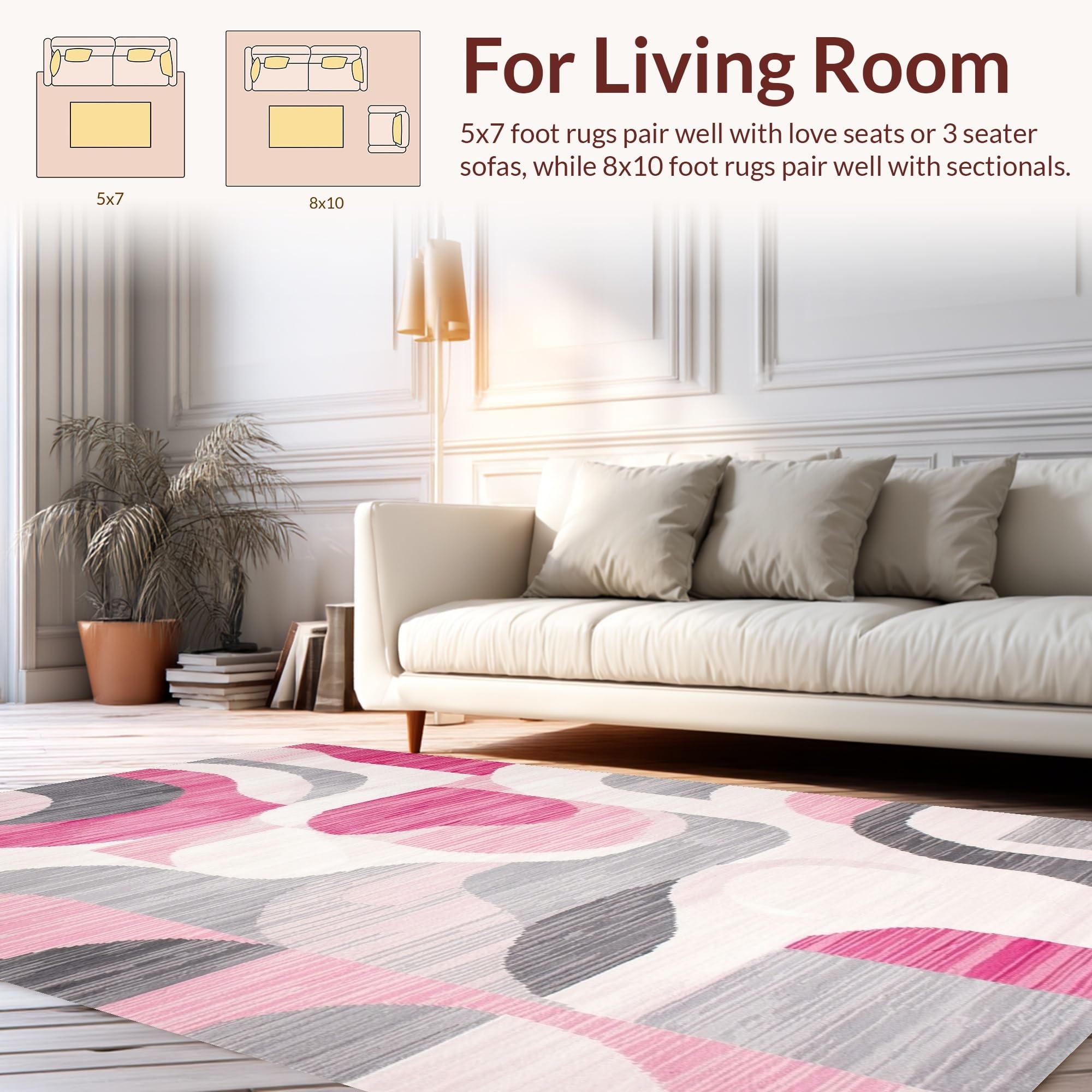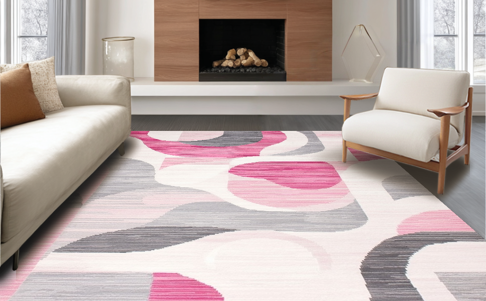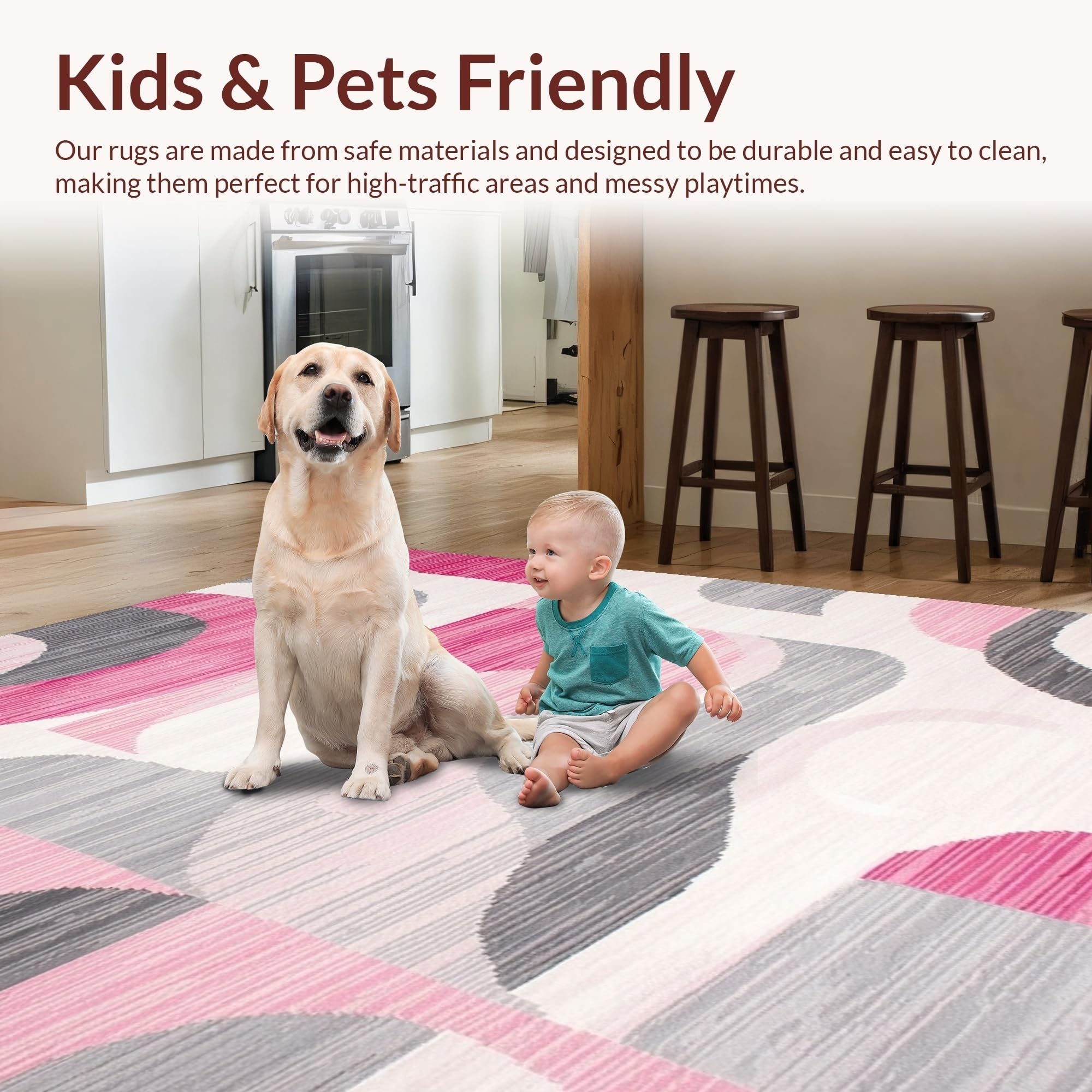 Ultra Soft Area Rug, Non Slip, Stain Resistant, Washable Area Rugs for Living Room, Bedroom, Striking Contemporary Geometric Blend(Pink) Overview: