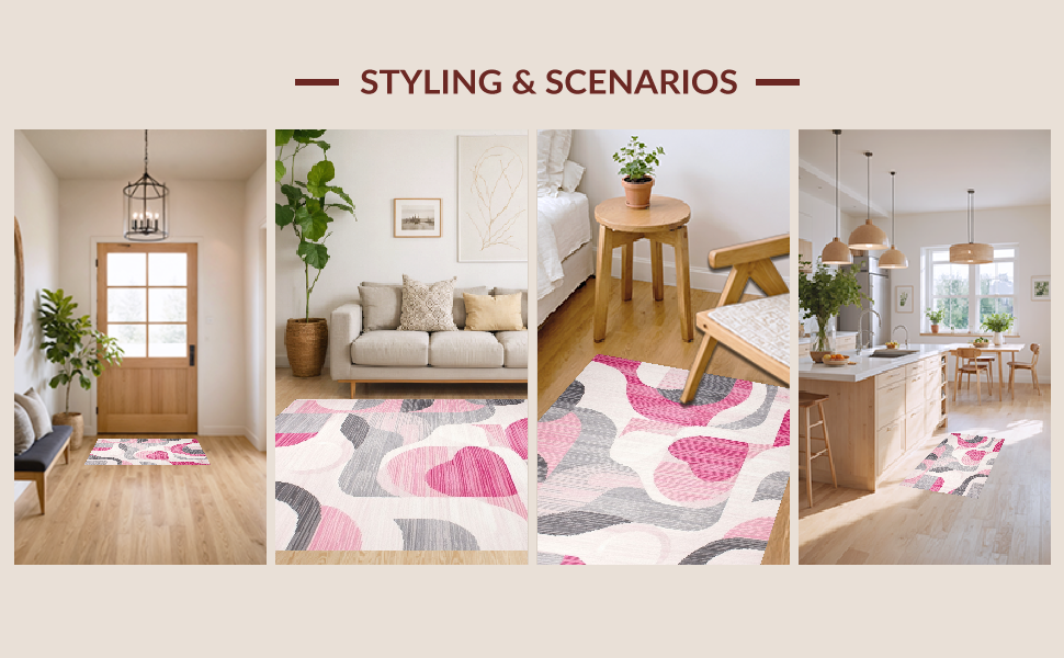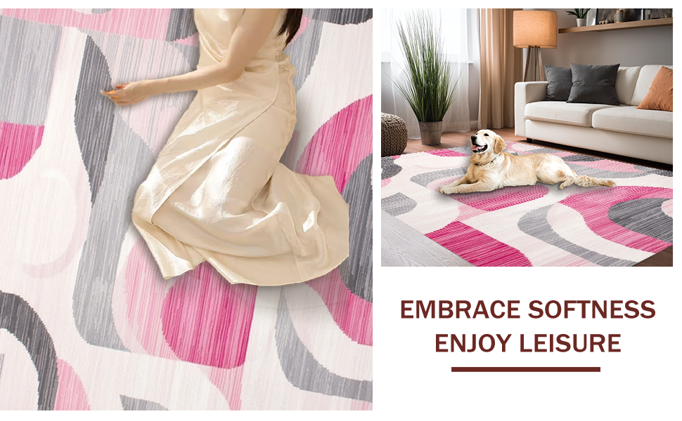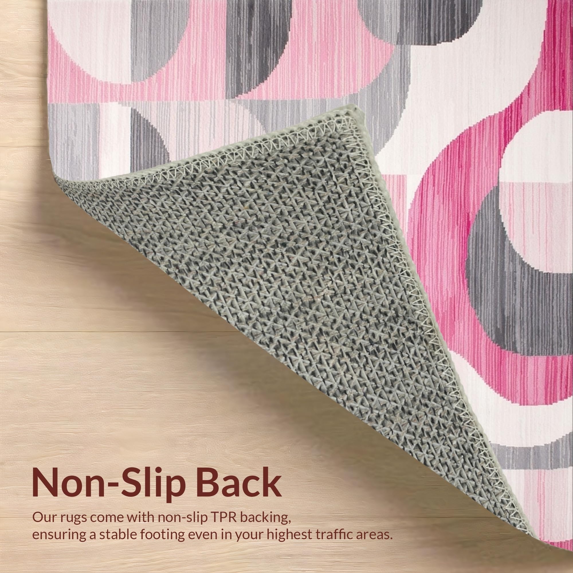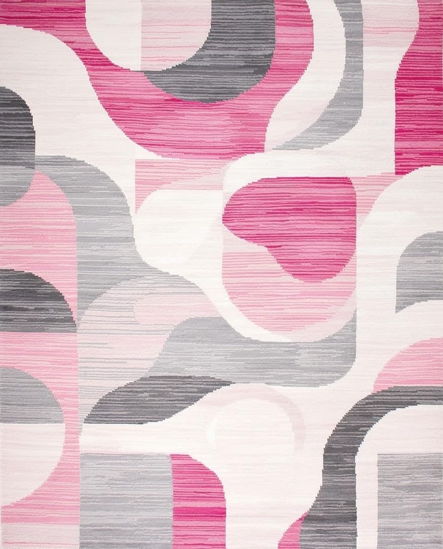 Ultra Soft Area Rug, Non Slip, Stain Resistant, Washable Area Rugs for Living Room, Bedroom, Striking Contemporary Geometric Blend(Pink) Overview: