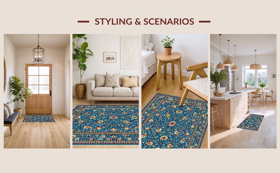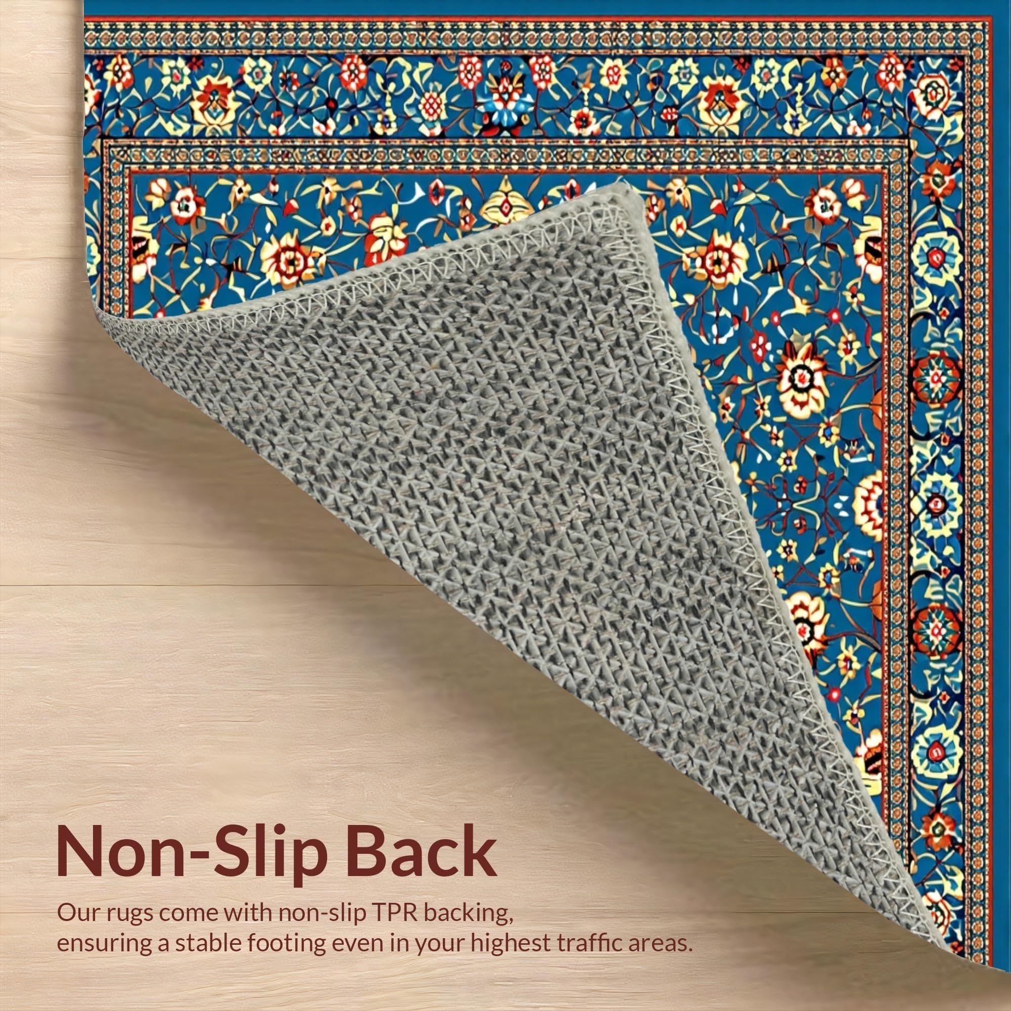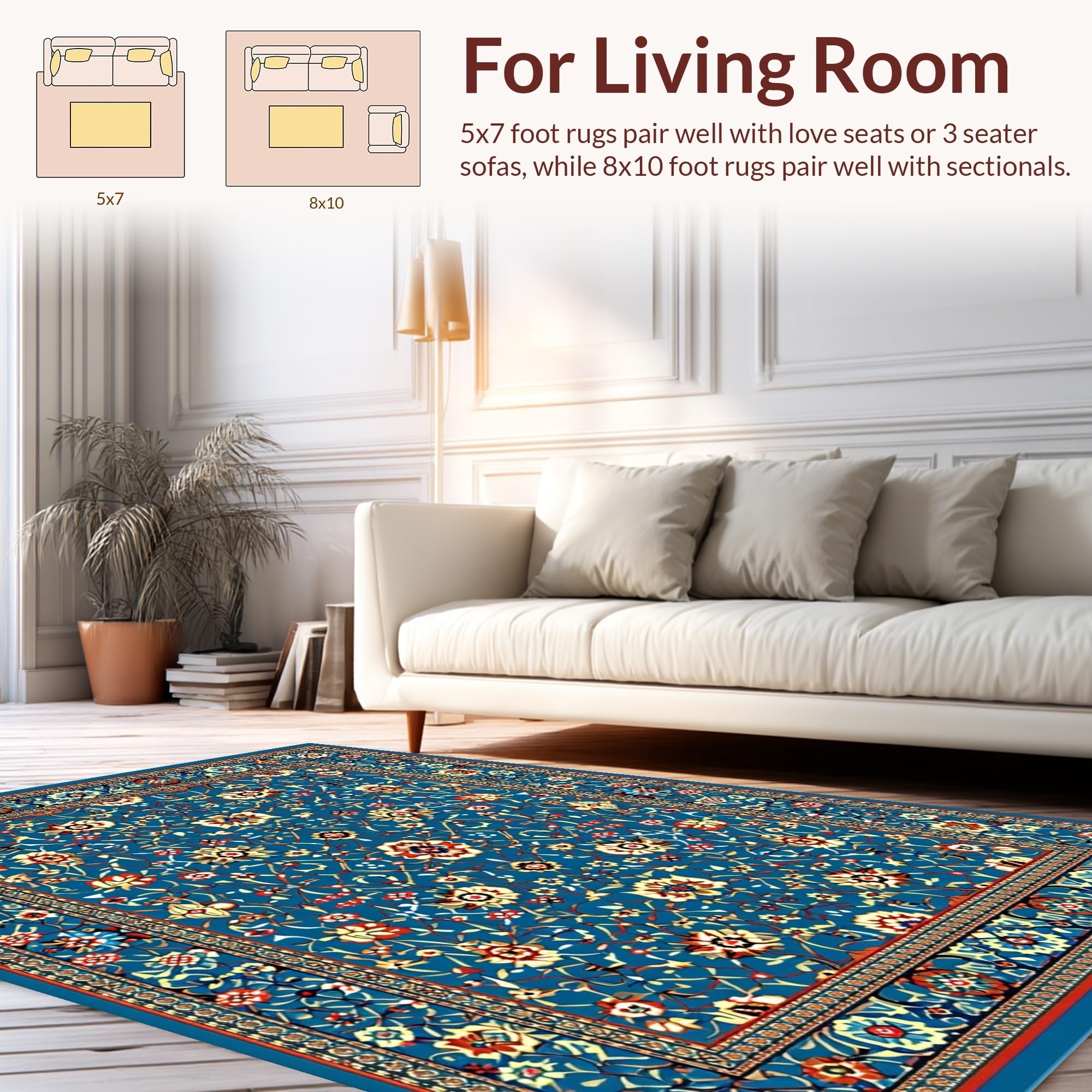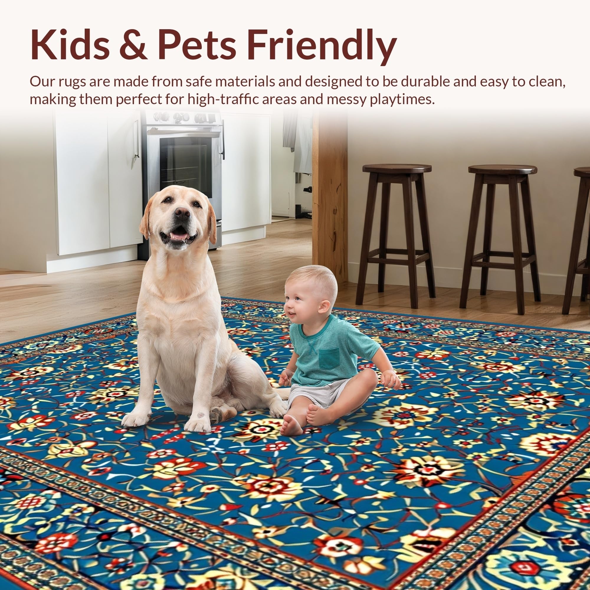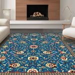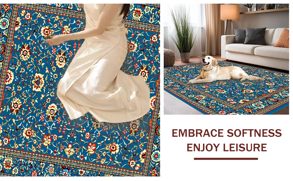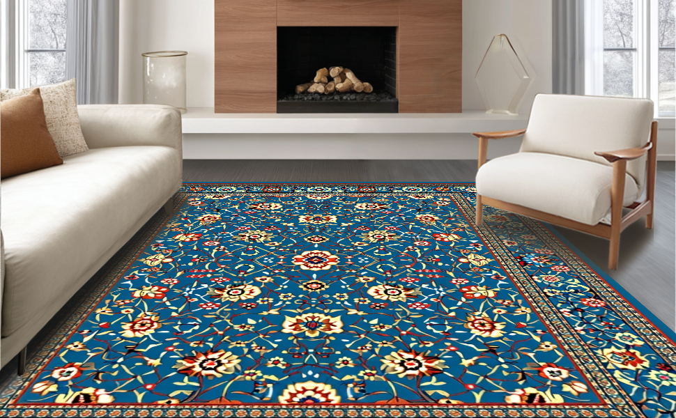 Ultra Soft Area Rug, Non Slip, Stain Resistant, Washable Area Rugs for Living Room, Bedroom, Striking Distressed Vintage Style(Blue) Overview: