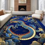 Flatwoven High Traffic Area Rug, Striking Dragon Art, Non Slip, Stain Resistant, Washable Area Rugs for Living Room, Bedroom (Blue) Overview:
