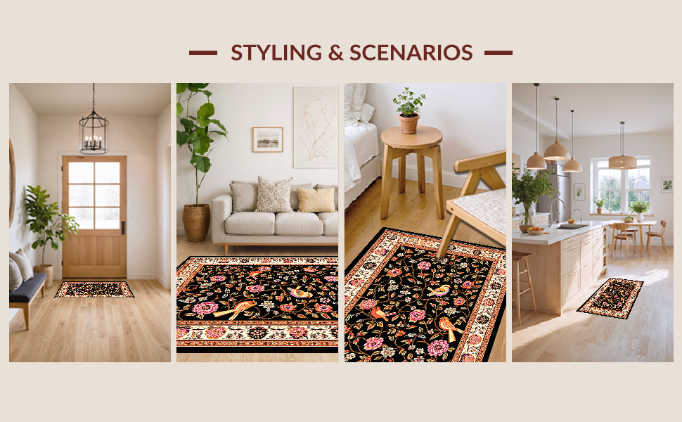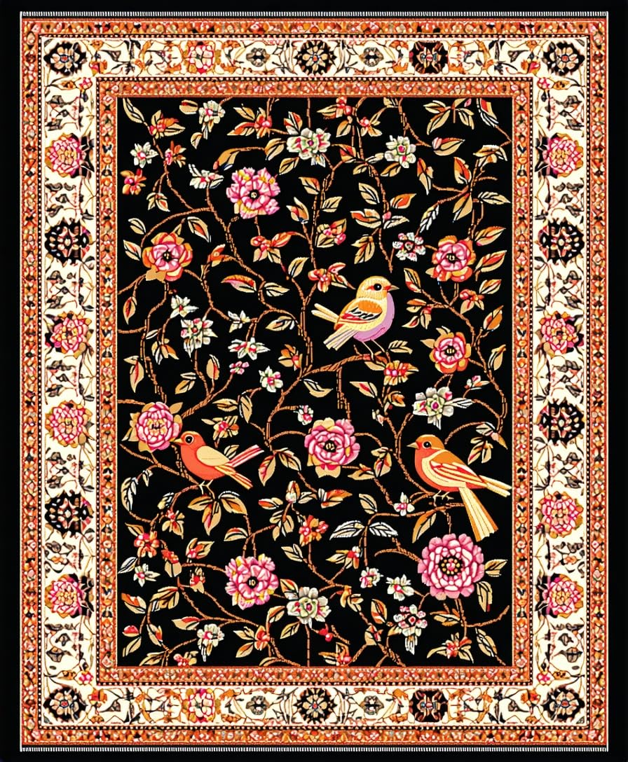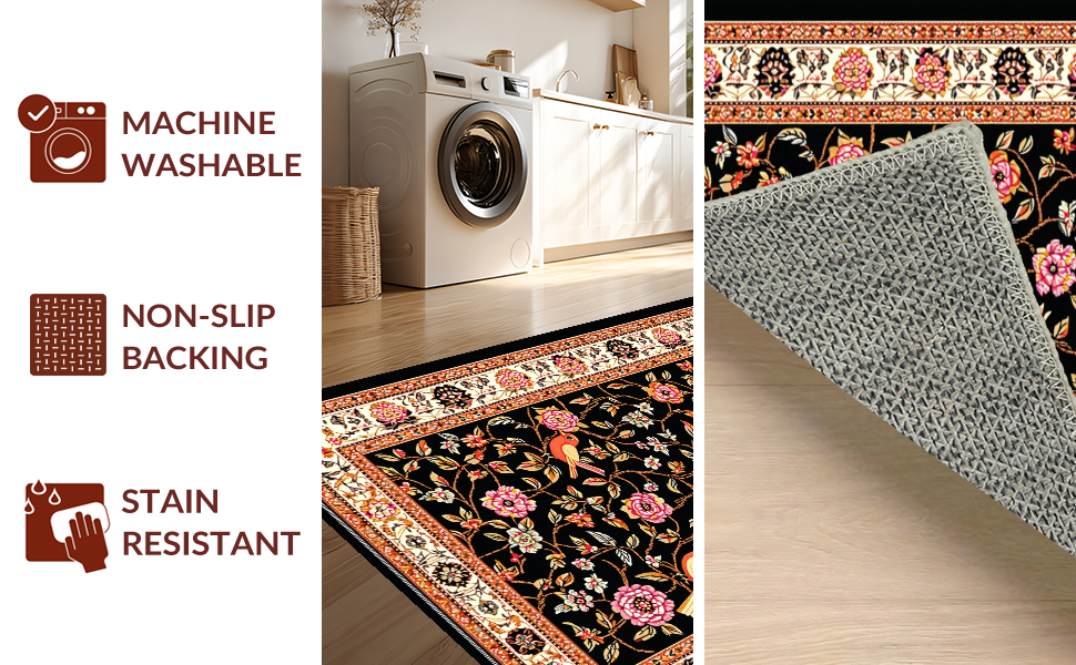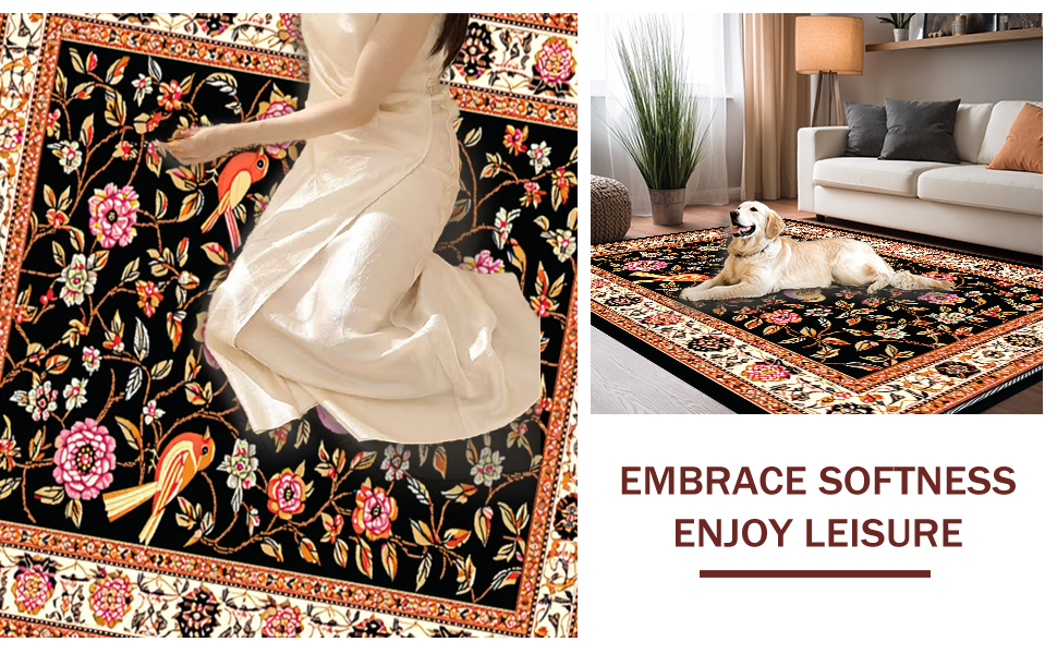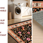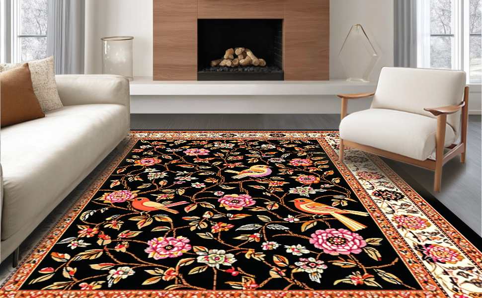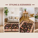 Ultra Soft Area Rug, Non Slip, Stain Resistant, Washable Area Rugs for Living Room, Bedroom, Striking Elegant Floral Composition(Black) Overview: