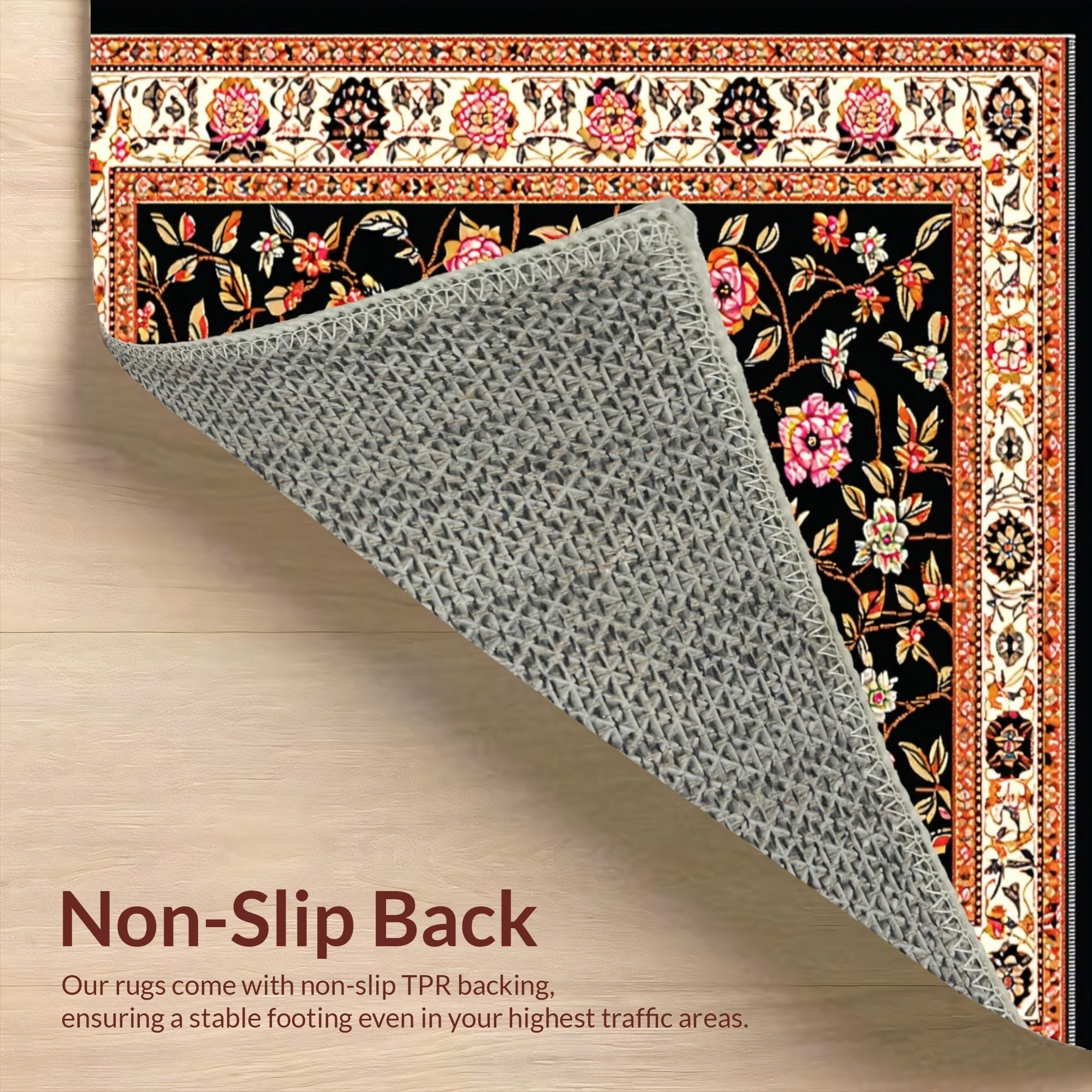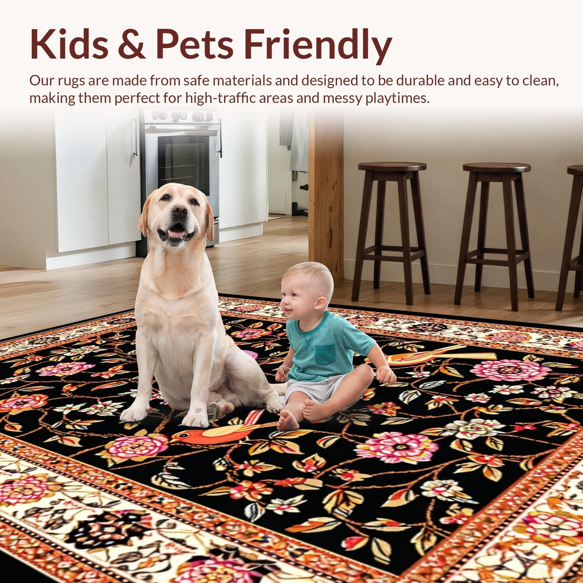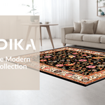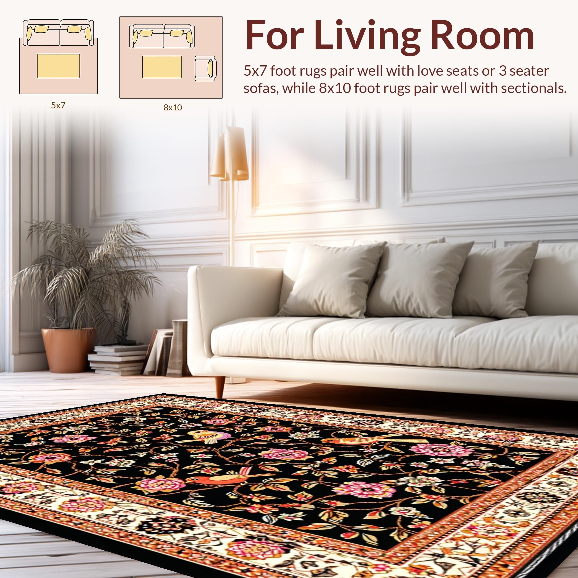Ultra Soft Area Rug, Non Slip, Stain Resistant, Washable Area Rugs for Living Room, Bedroom, Striking Elegant Floral Composition(Black) Overview: