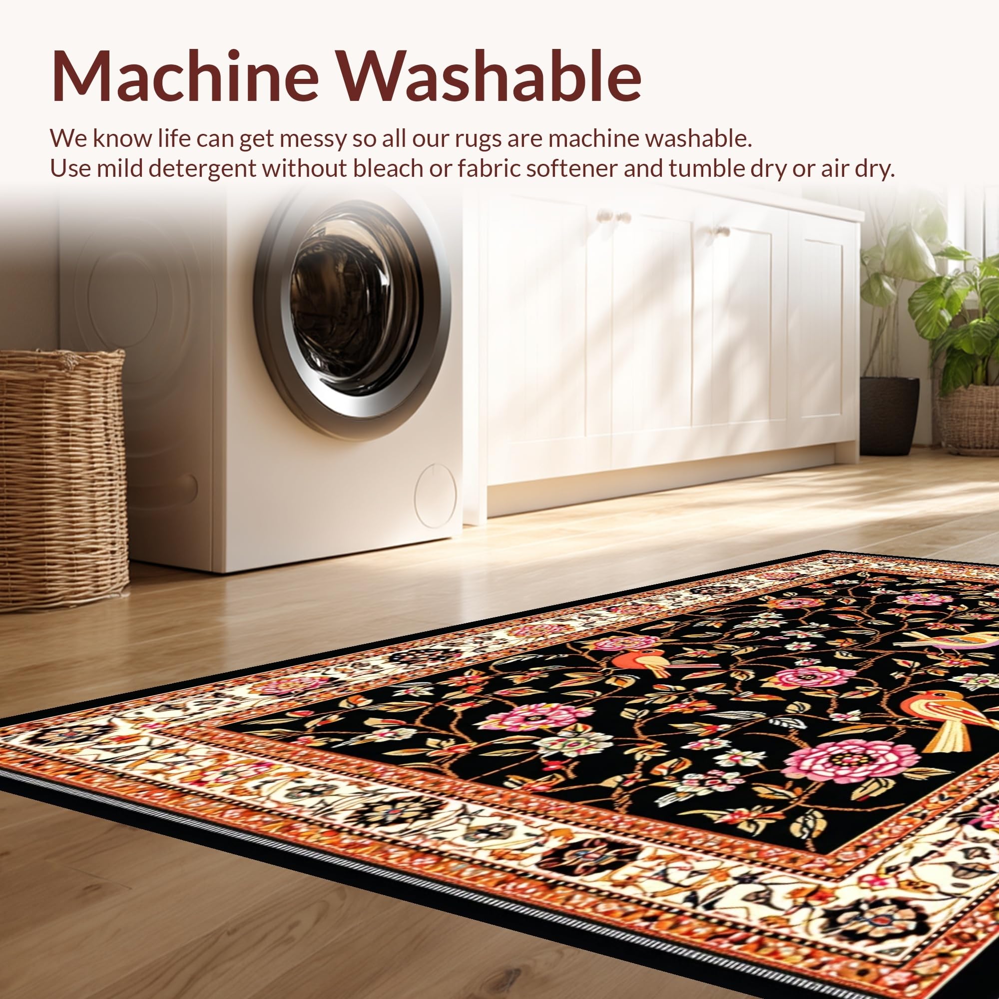 - Machine Washable: Our rugs can be easily thrown in the wash machine.