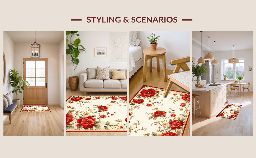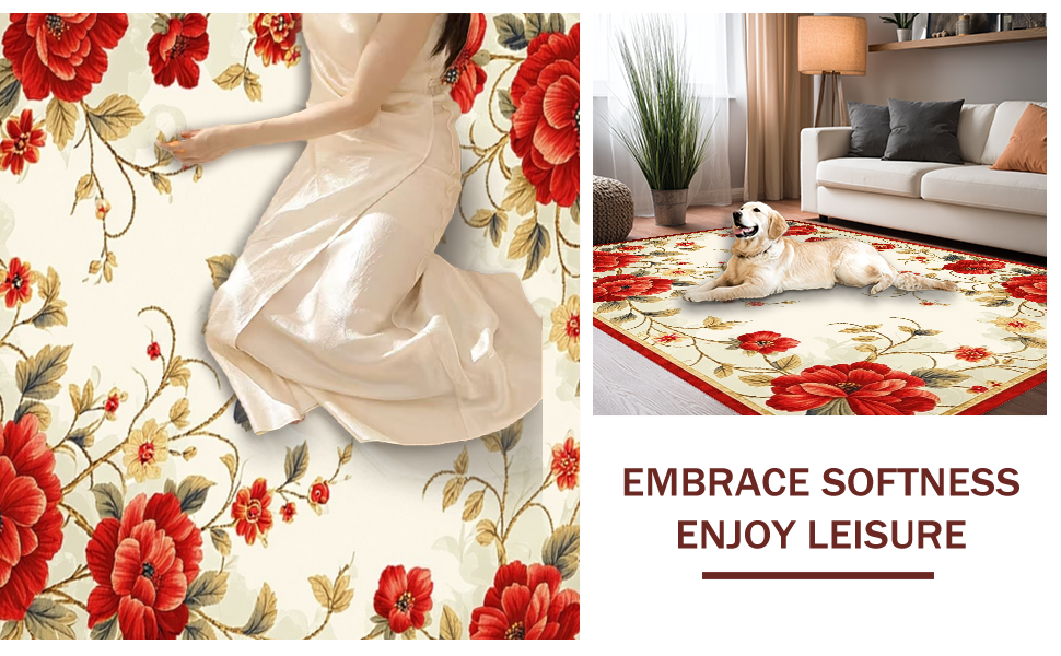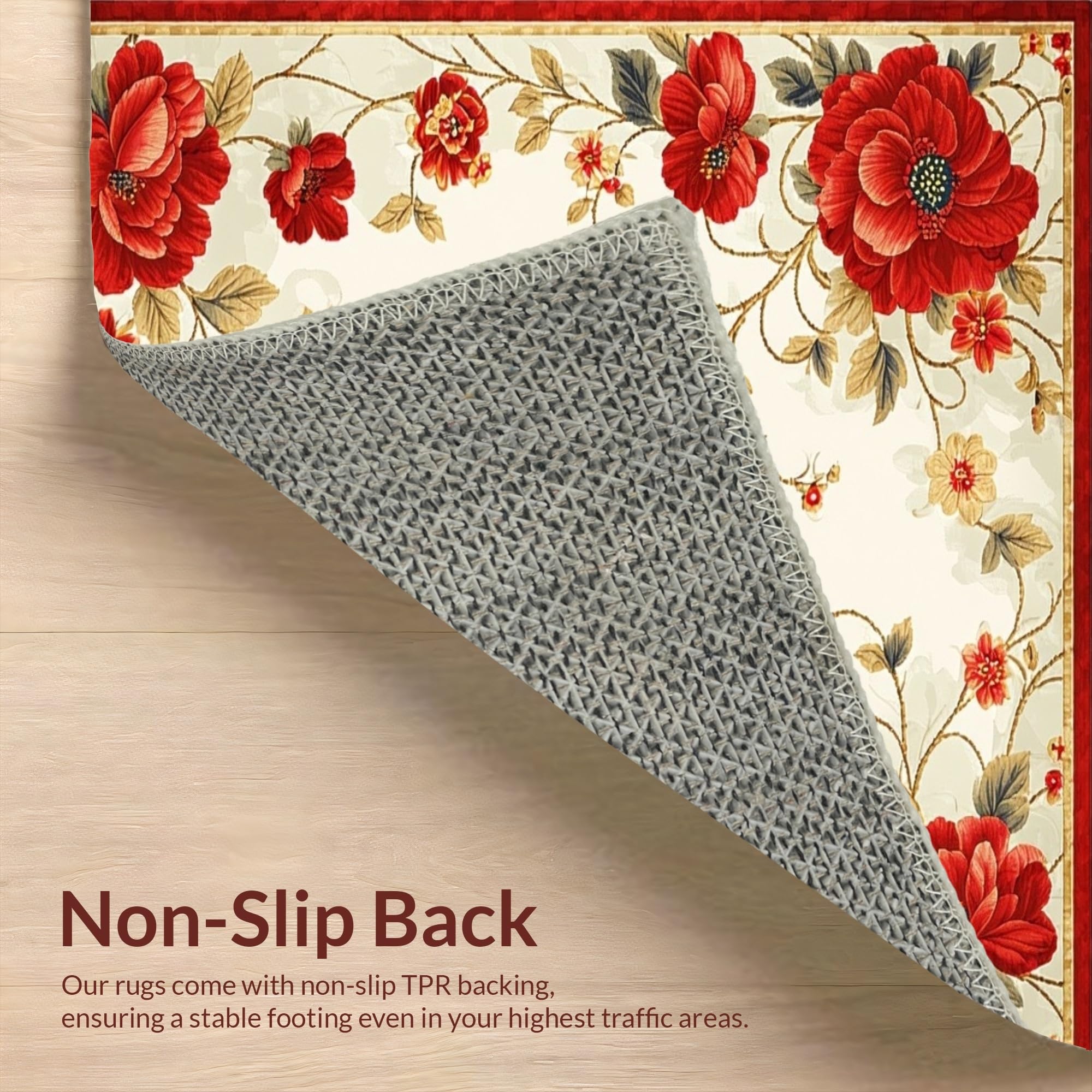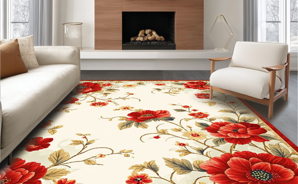 Ultra Soft Area Rug, Non Slip, Stain Resistant, Washable Area Rugs for Living Room, Bedroom, Striking Elegant Multicolored Pattern(Red) Overview: