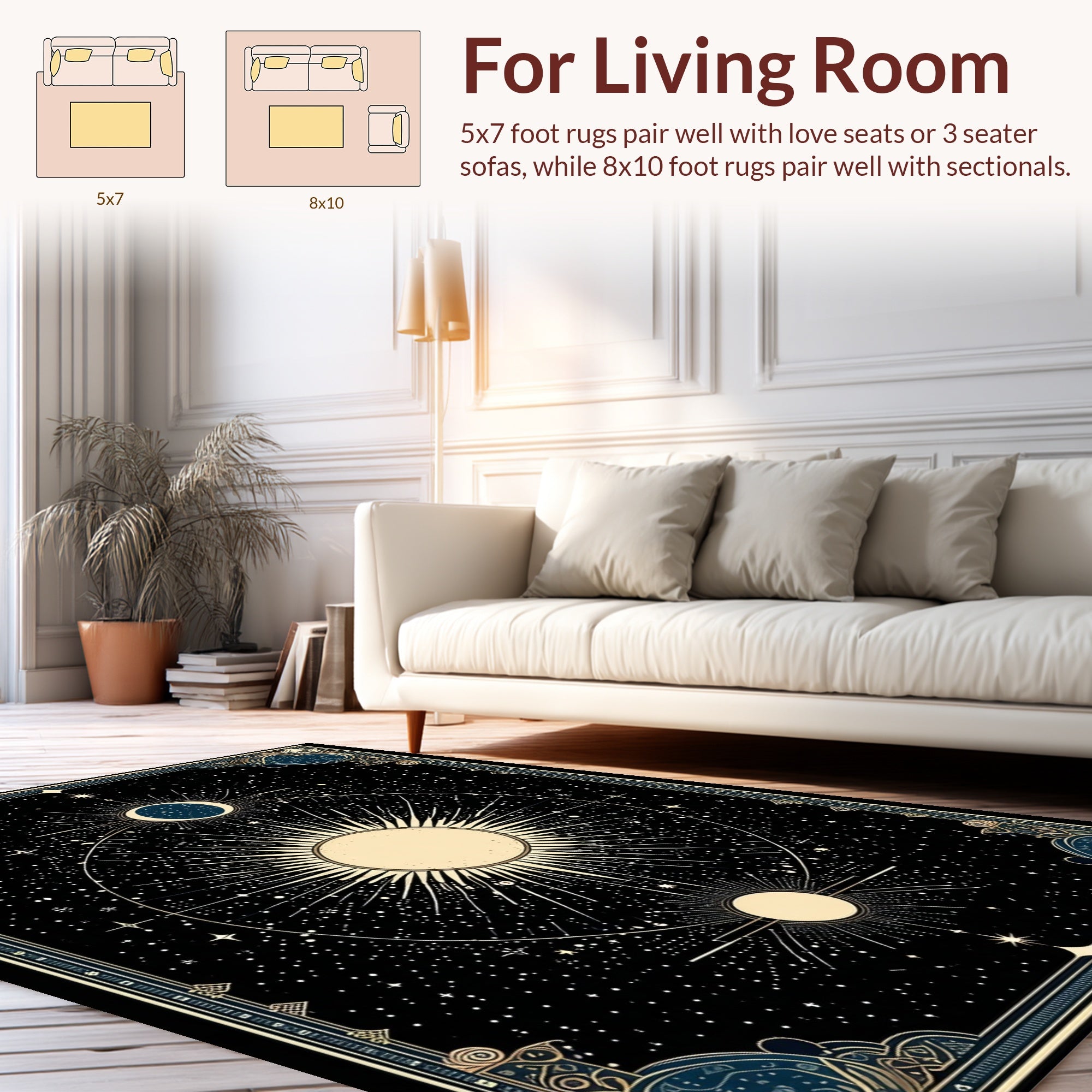 Flatwoven High Traffic Area Rug, Striking Gothic Ethereal Style, Non Slip, Stain Resistant, Washable Area Rugs for Living Room, Bedroom (Black) Overview: