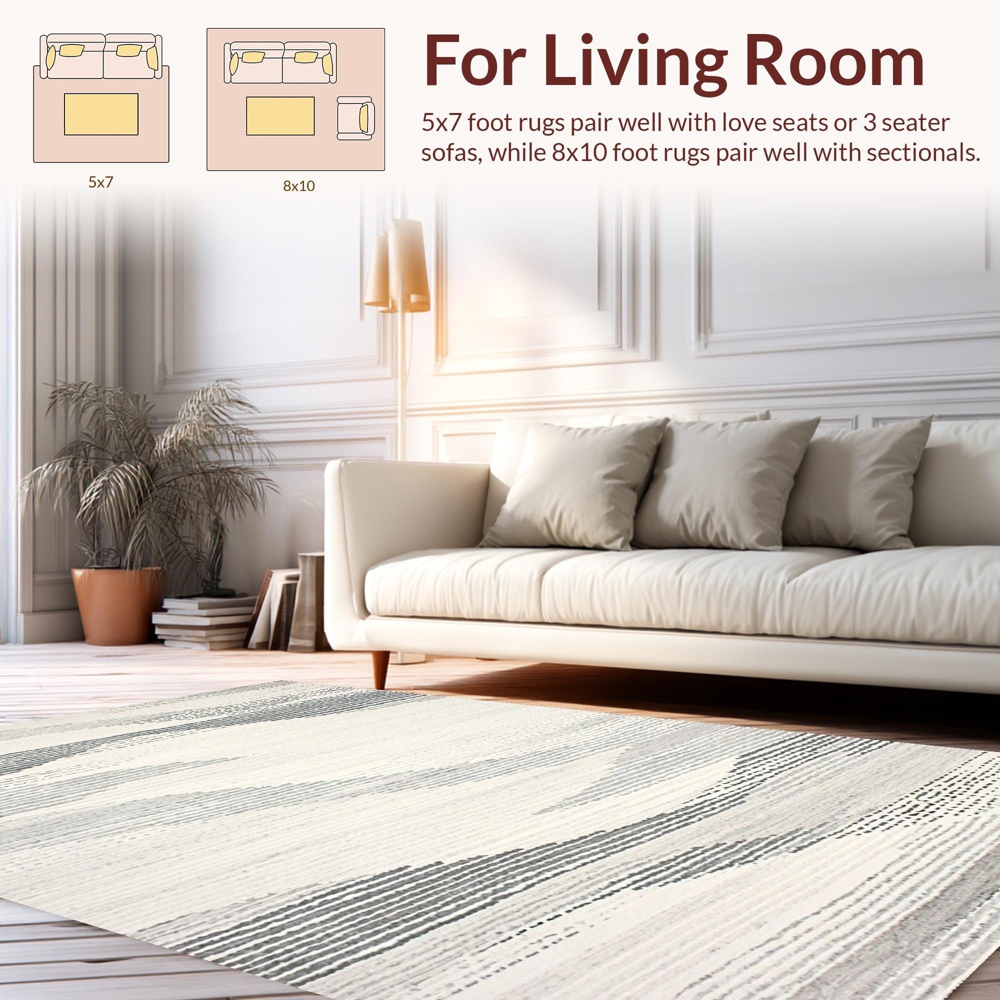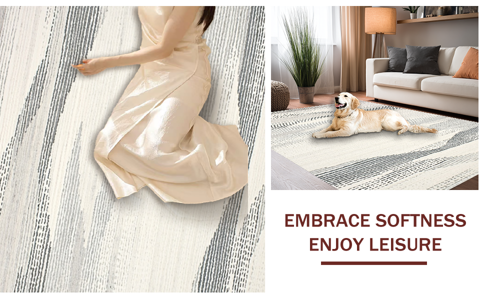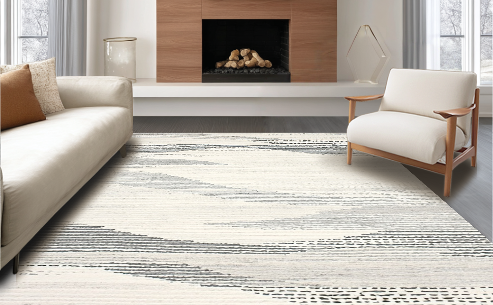 Ultra Soft Area Rug, Non Slip, Stain Resistant, Washable Area Rugs for Living Room, Bedroom, Striking Grey and Cream Organic Shapes(Ivory) Overview:
