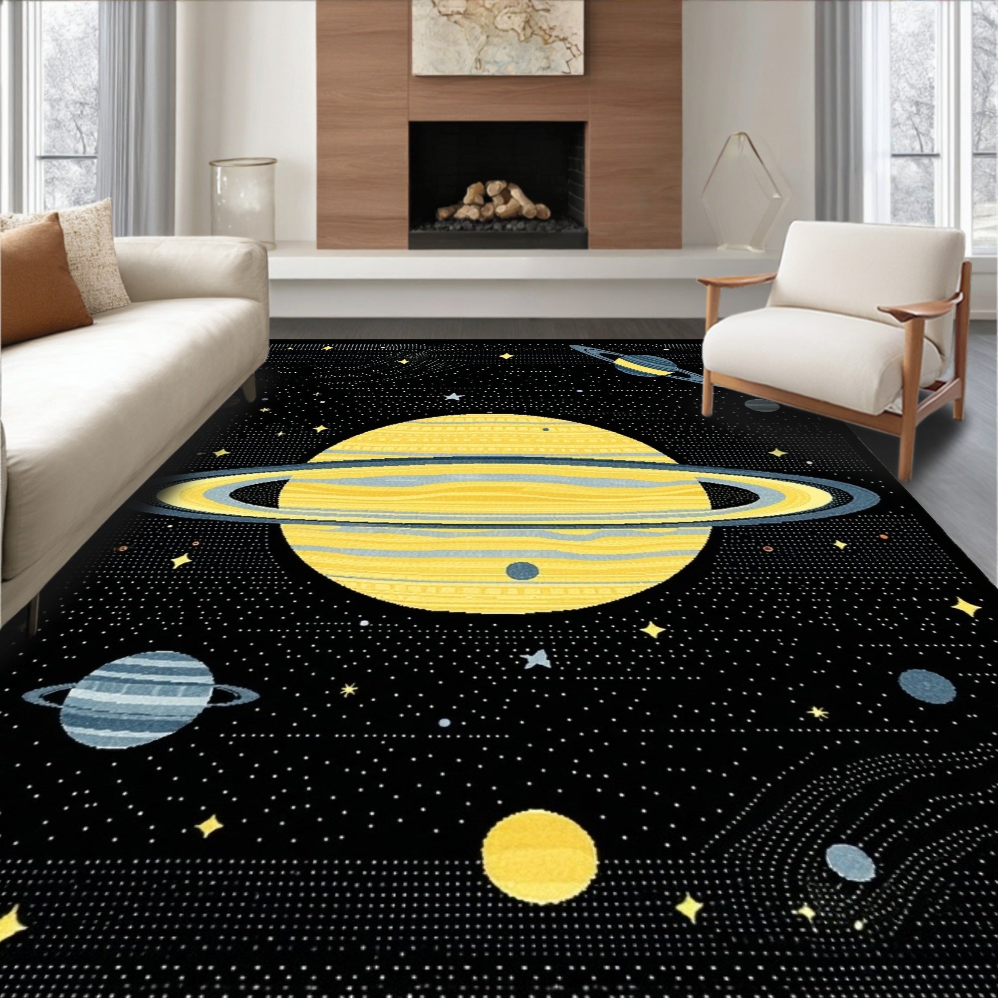 Flatwoven High Traffic Area Rug, Striking Interstellar Color Palette, Non Slip, Stain Resistant, Washable Area Rugs for Living Room, Bedroom (Yellow) Overview: