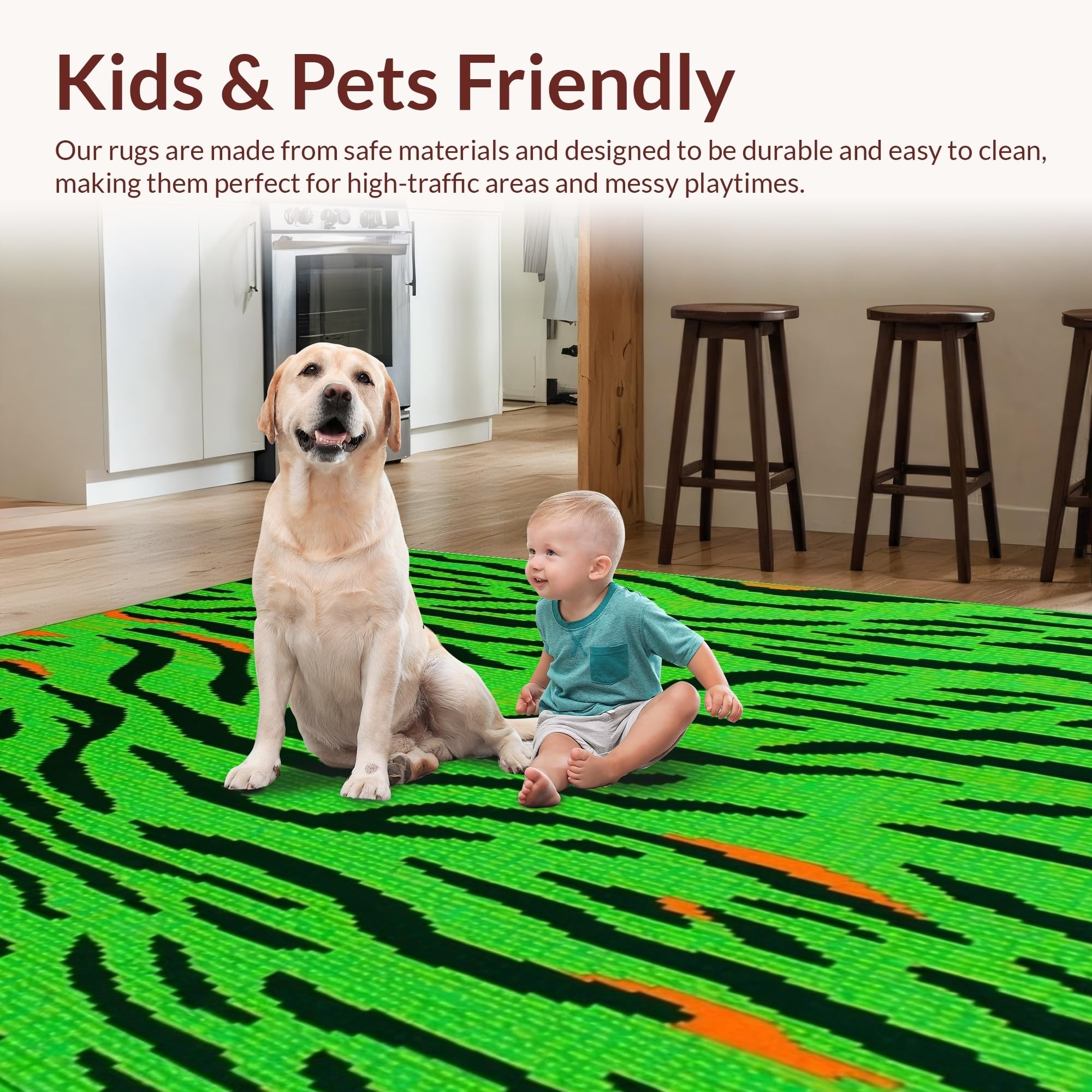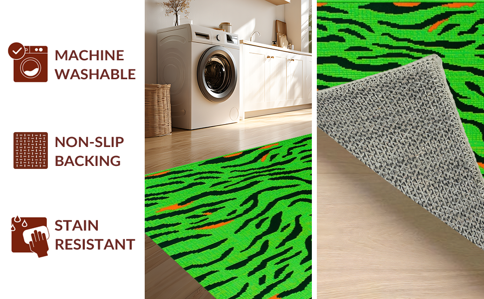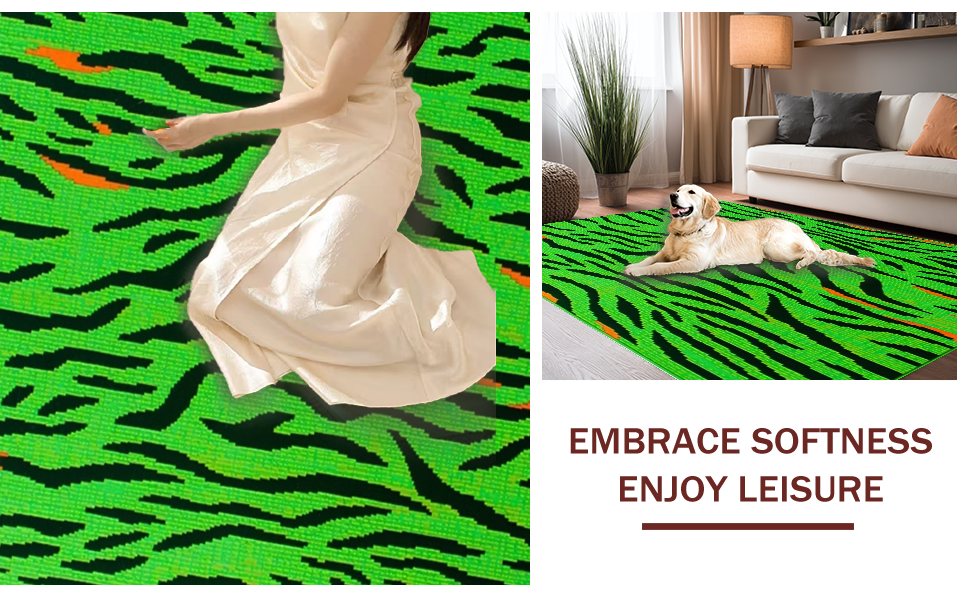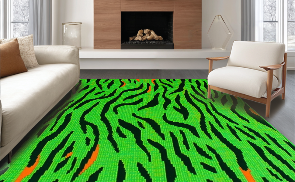Ultra Soft Area Rug, Non Slip, Stain Resistant, Washable Area Rugs for Living Room, Bedroom, Striking Jungle-Inspired Decor(Green) Overview:
