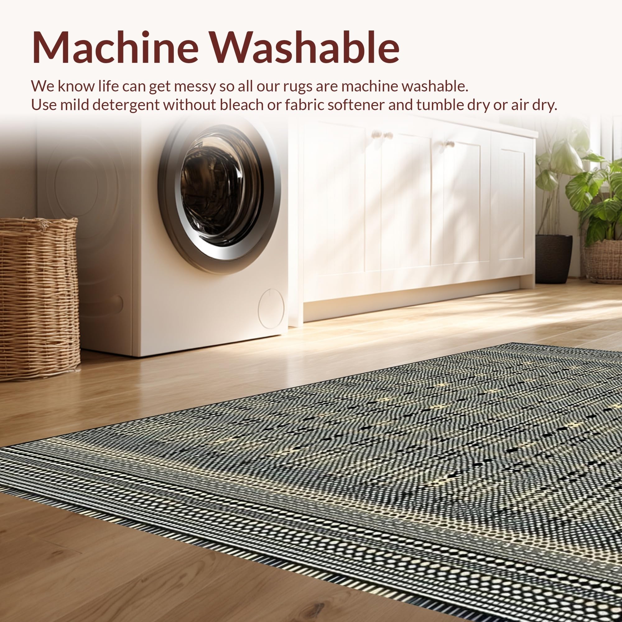 - Machine Washable: Our rugs can be easily thrown in the wash machine.
