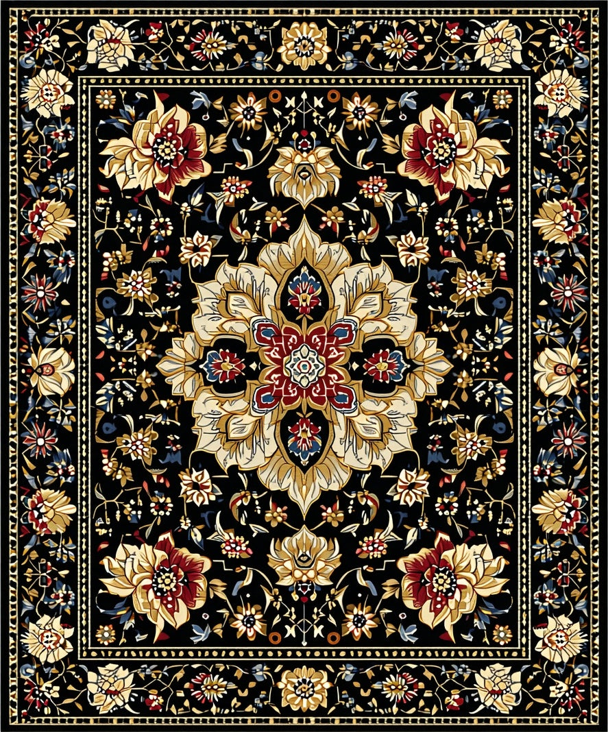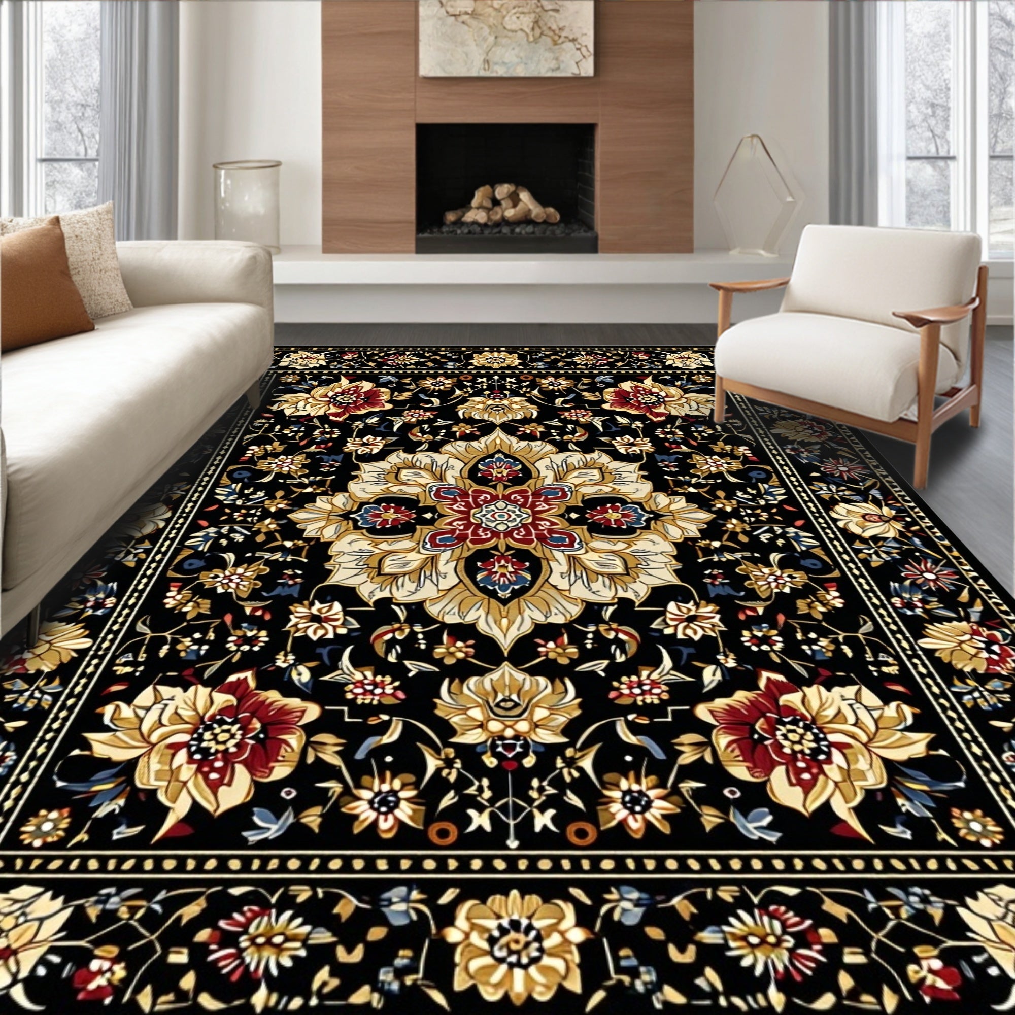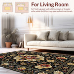 Flatwoven High Traffic Area Rug, Striking Minimalist Monochrome Blooms, Non Slip, Stain Resistant, Washable Area Rugs for Living Room, Bedroom (Black) Overview: