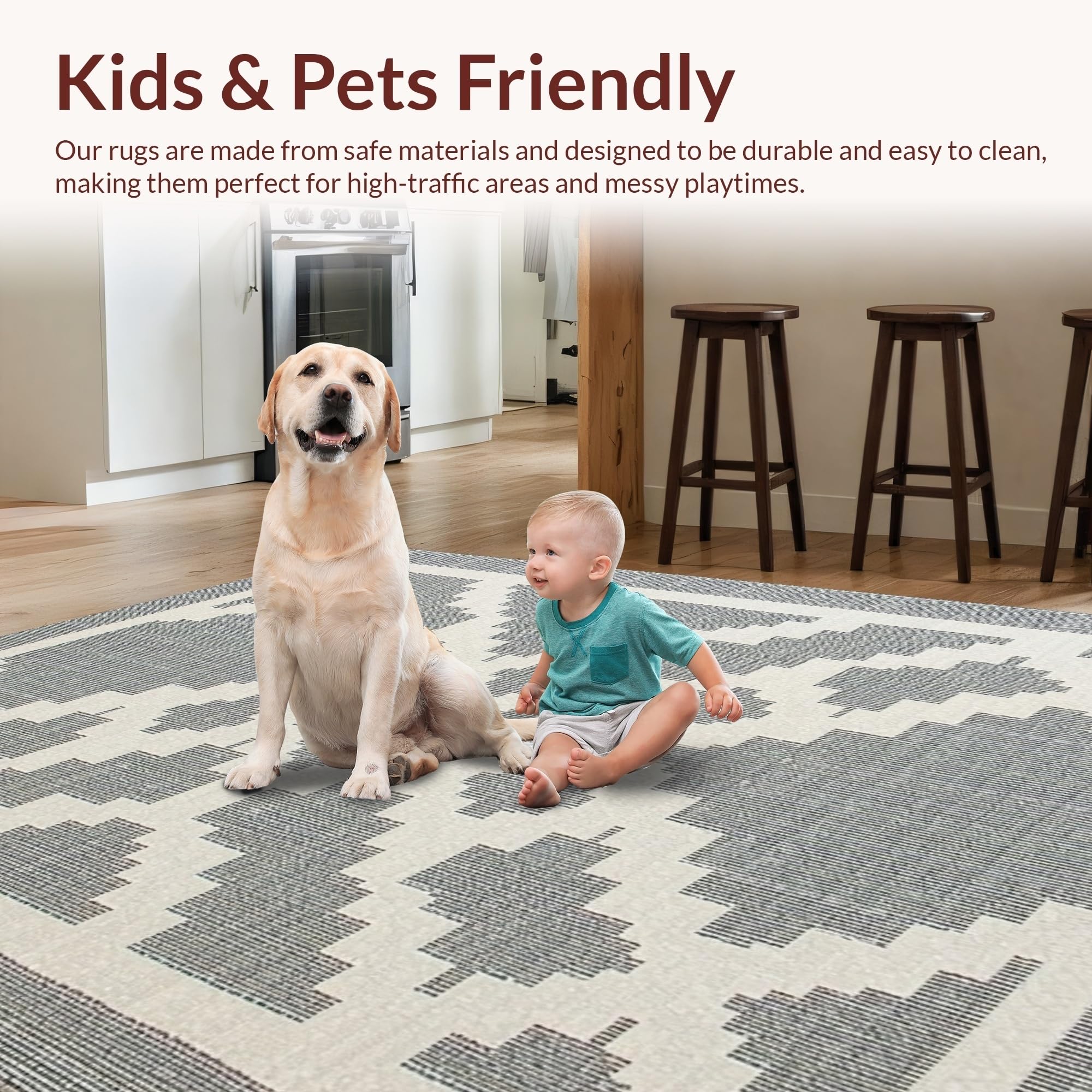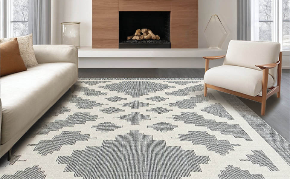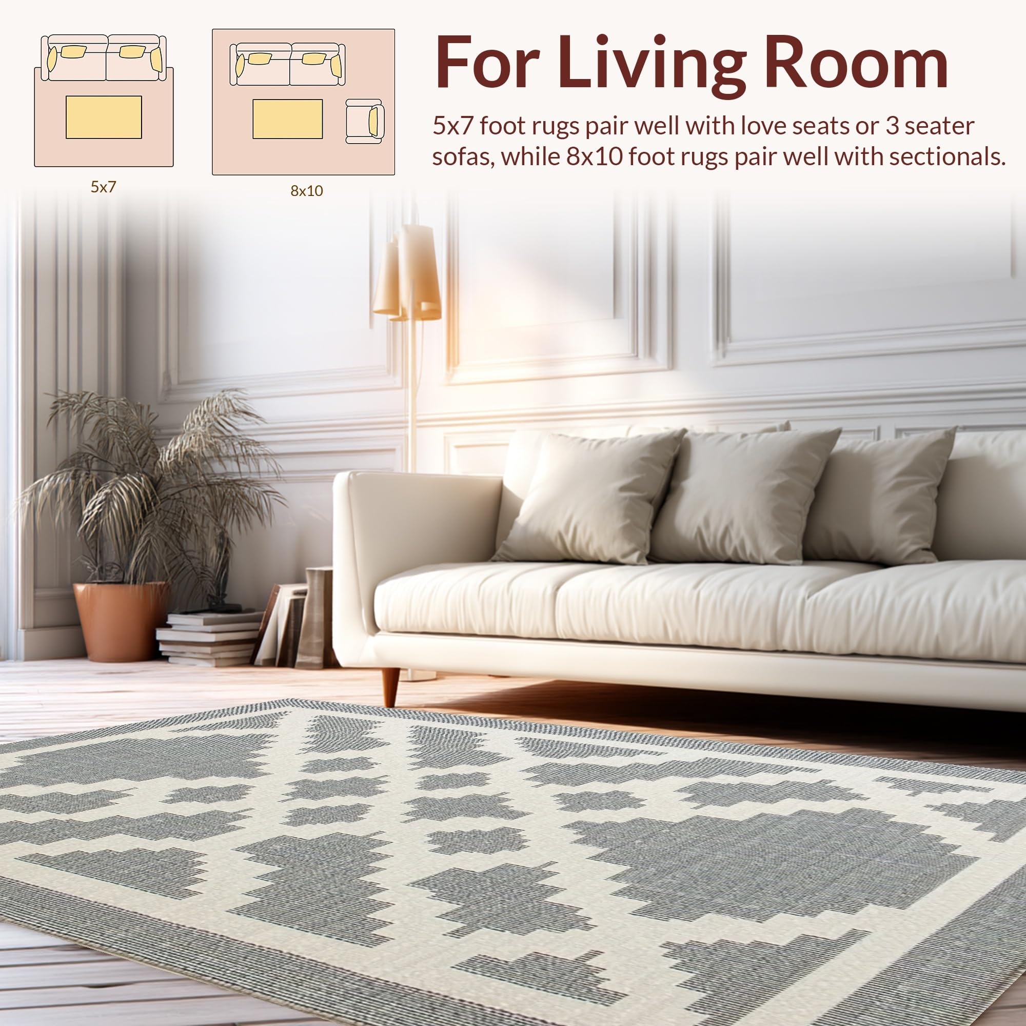 Ultra Soft Area Rug, Non Slip, Stain Resistant, Washable Area Rugs for Living Room, Bedroom, Striking Minimalist Trellis Design(Gray) Overview:
