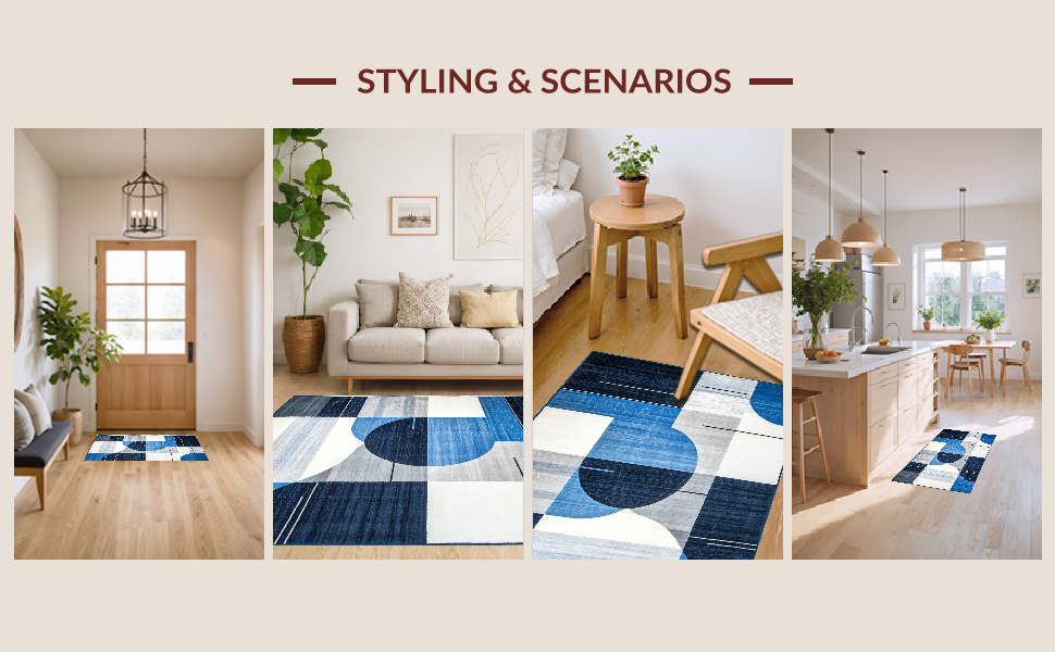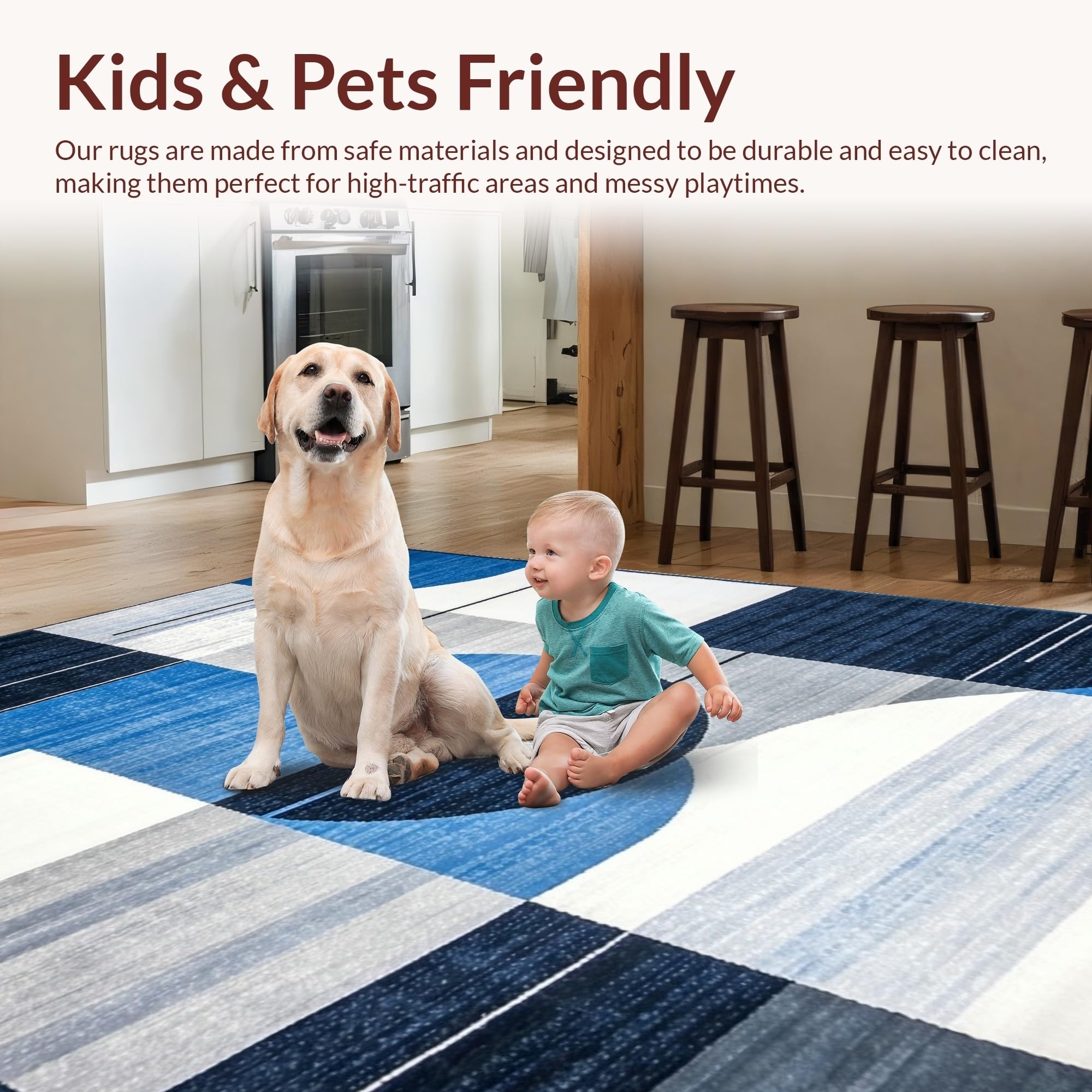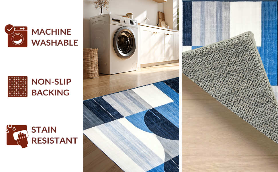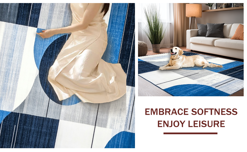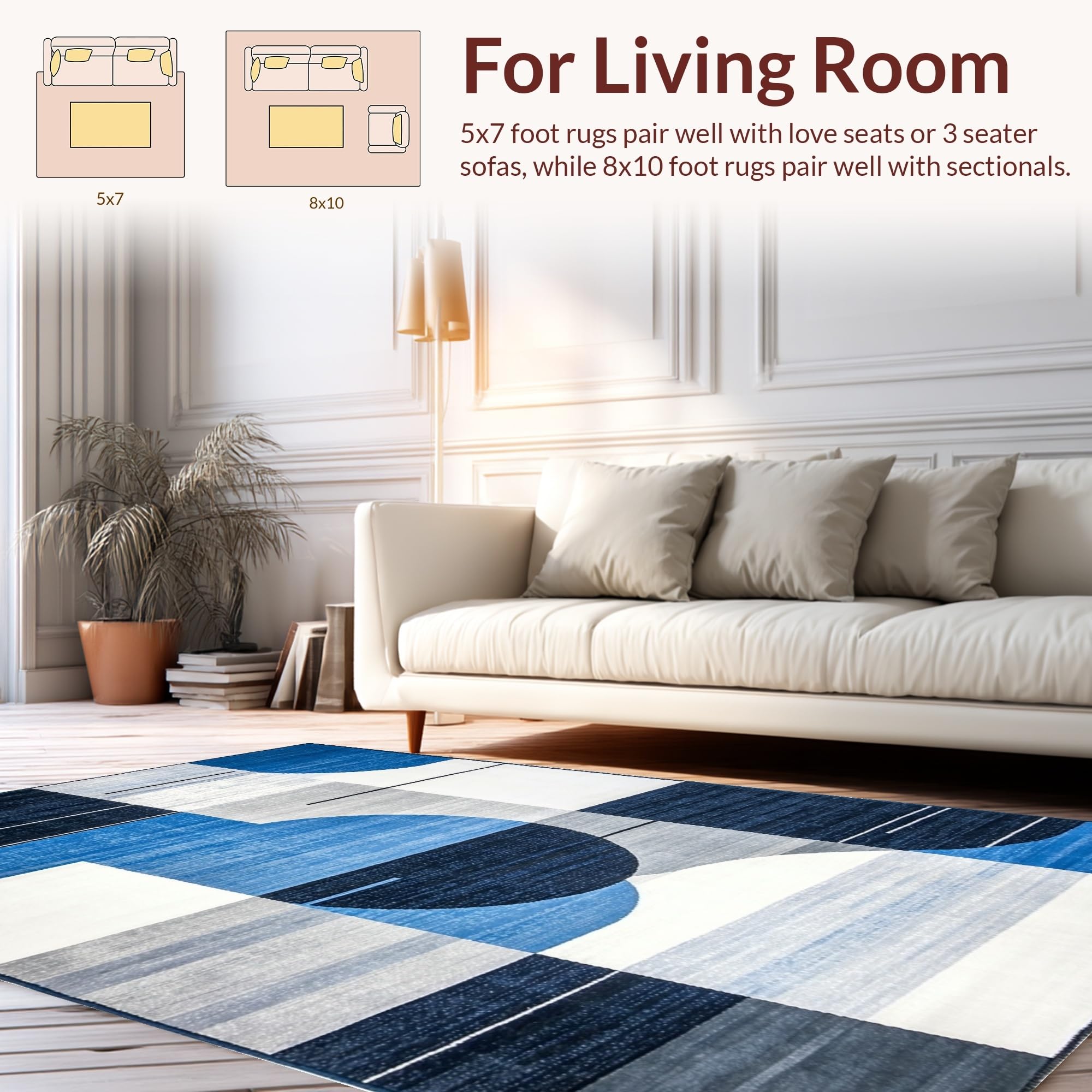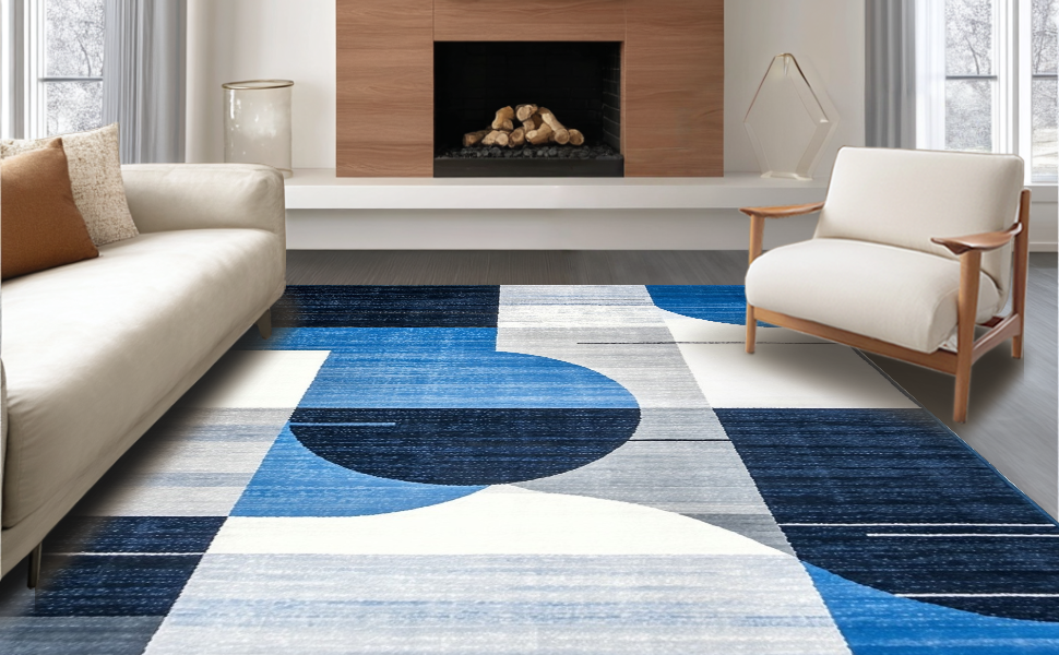 Ultra Soft Area Rug, Non Slip, Stain Resistant, Washable Area Rugs for Living Room, Bedroom, Striking Modern Linear Composition(Blue) Overview: