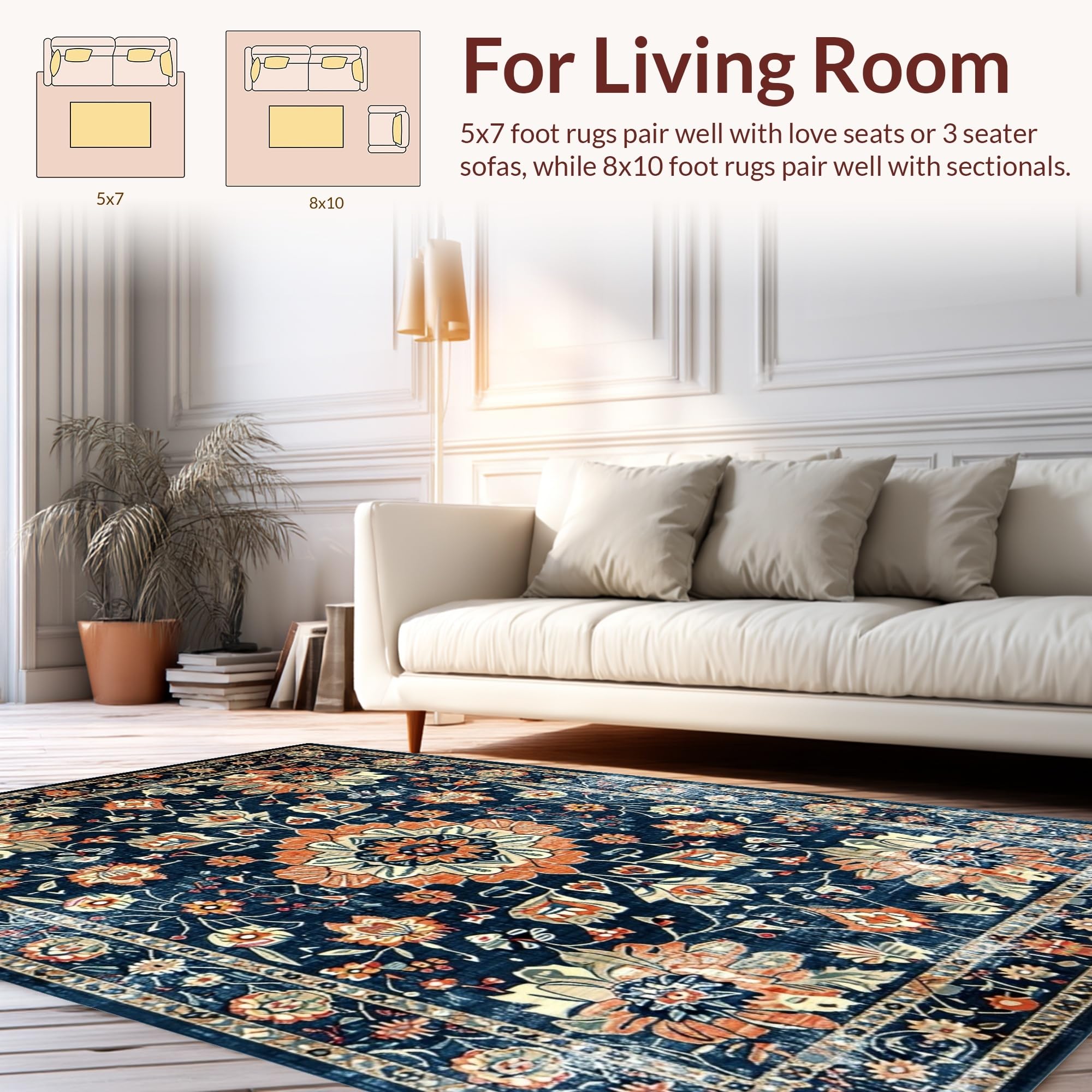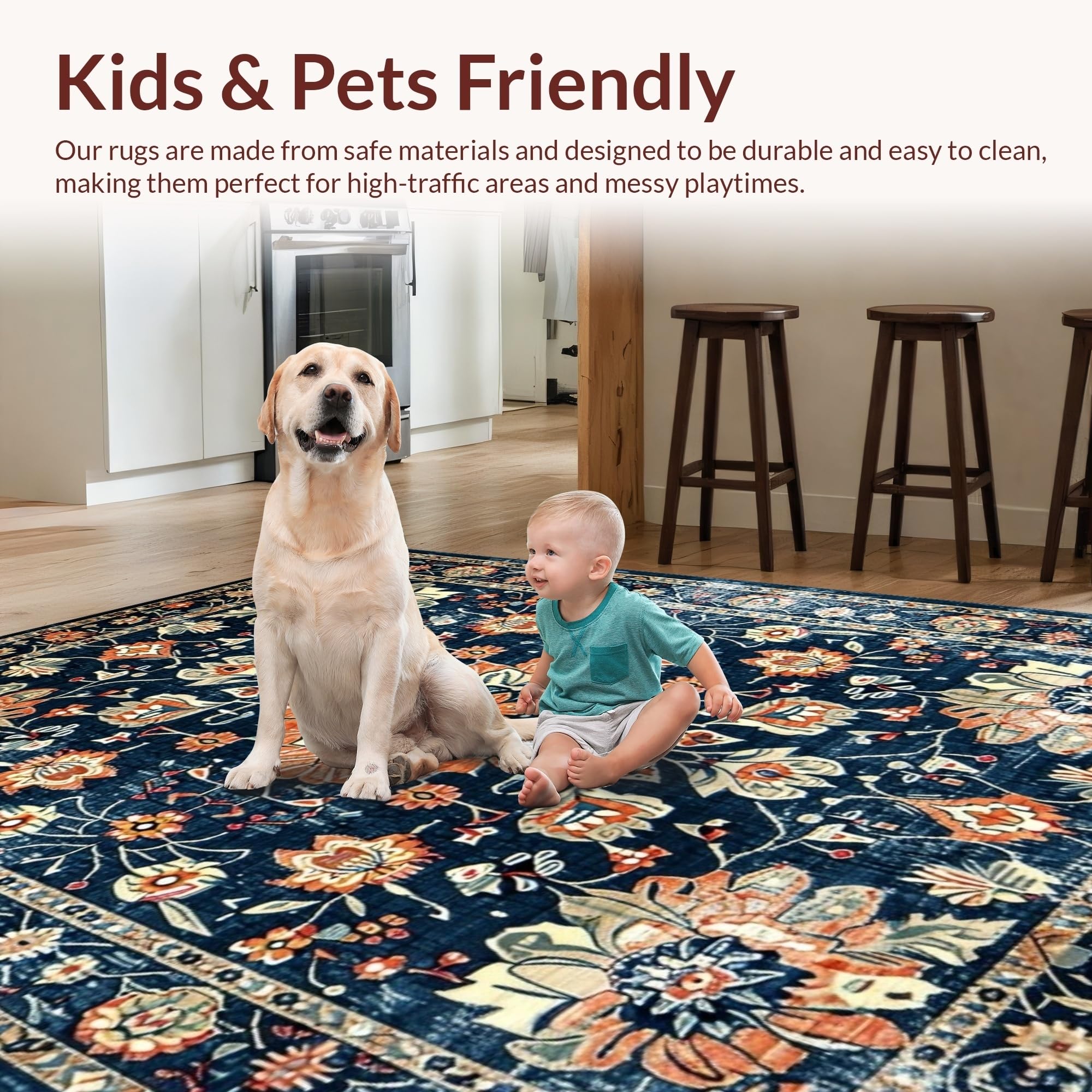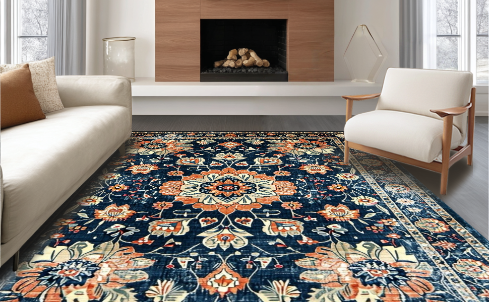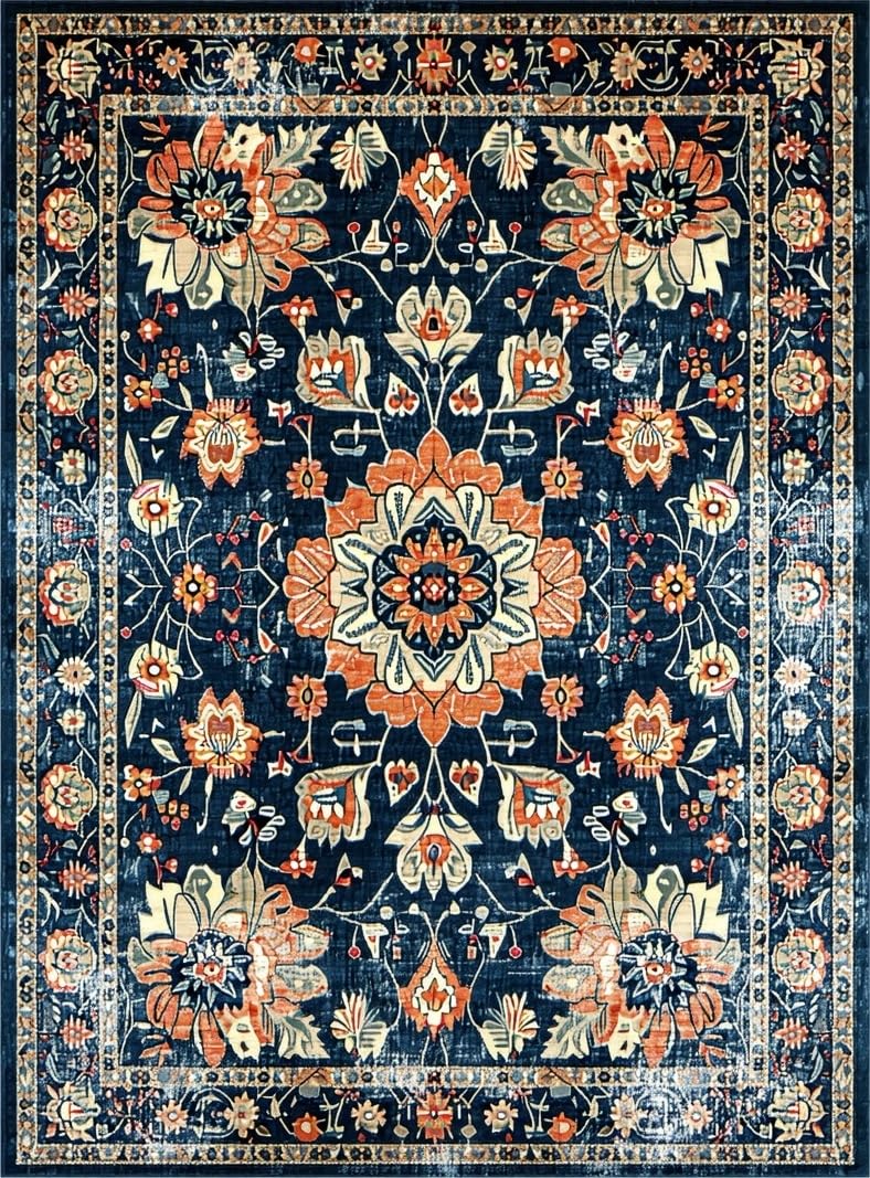 Ultra Soft Area Rug, Non Slip, Stain Resistant, Washable Area Rugs for Living Room, Bedroom, Striking Modern Tiled Composition(Blue) Overview: