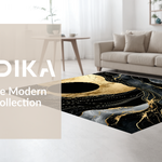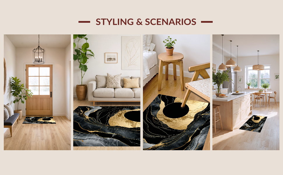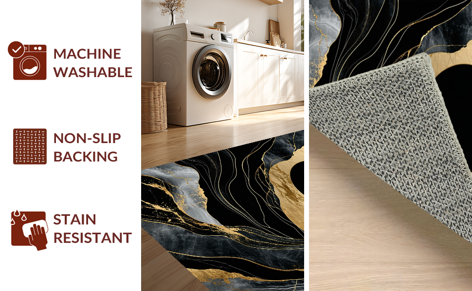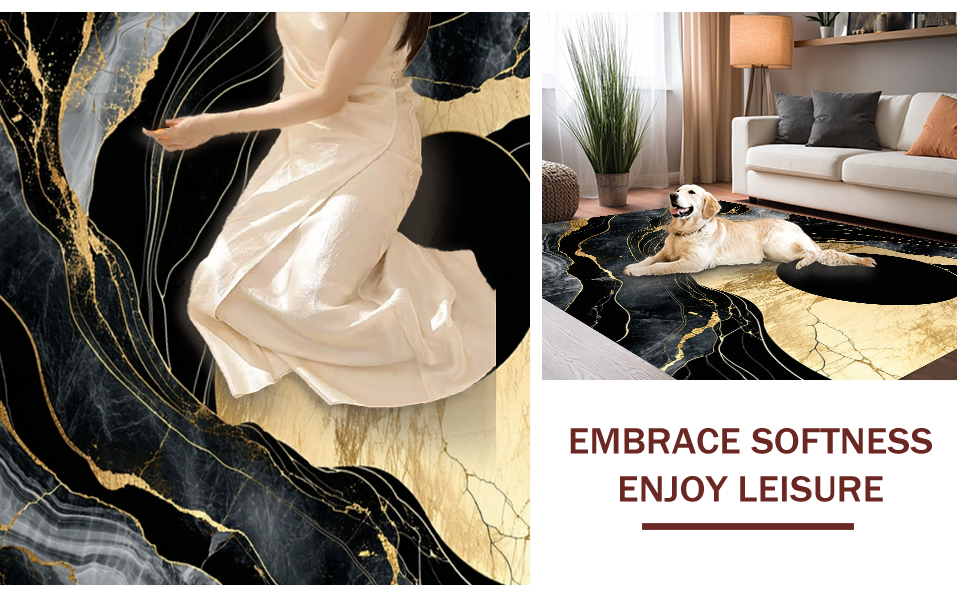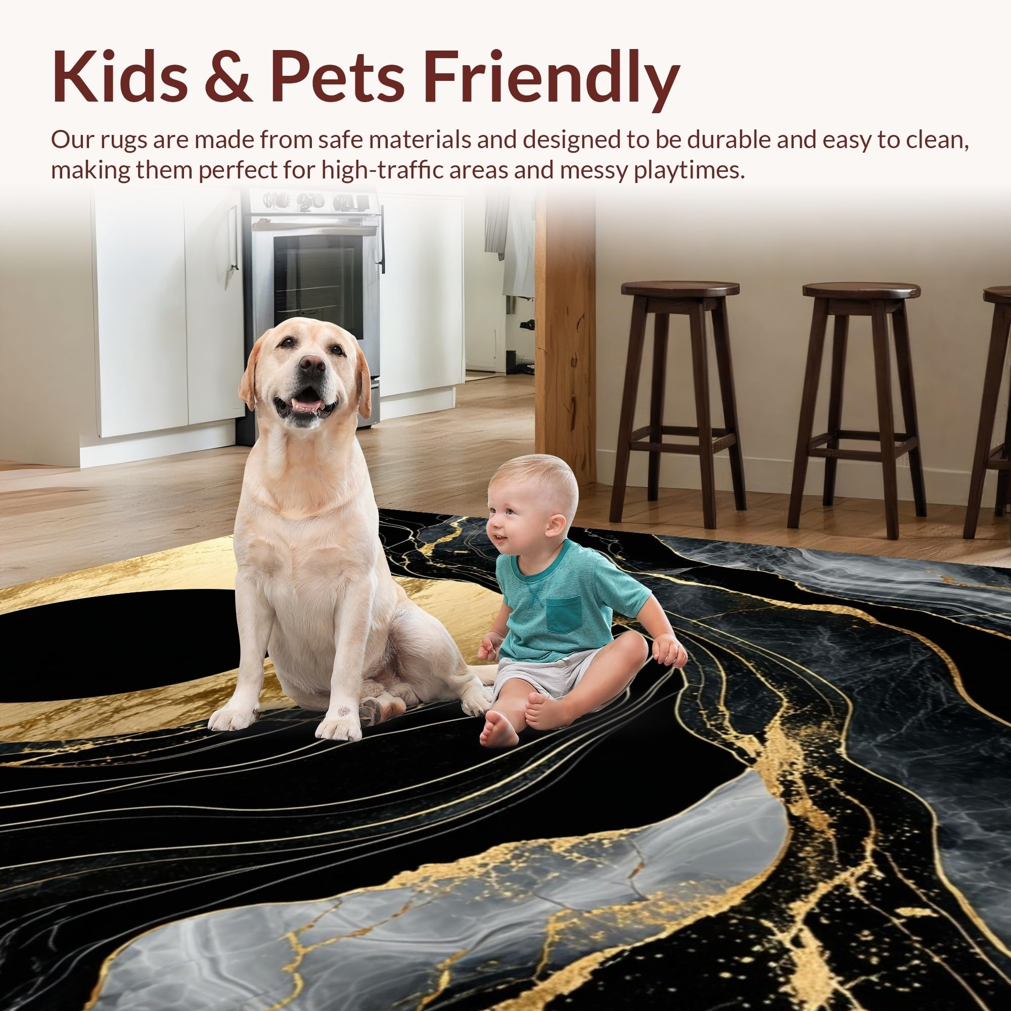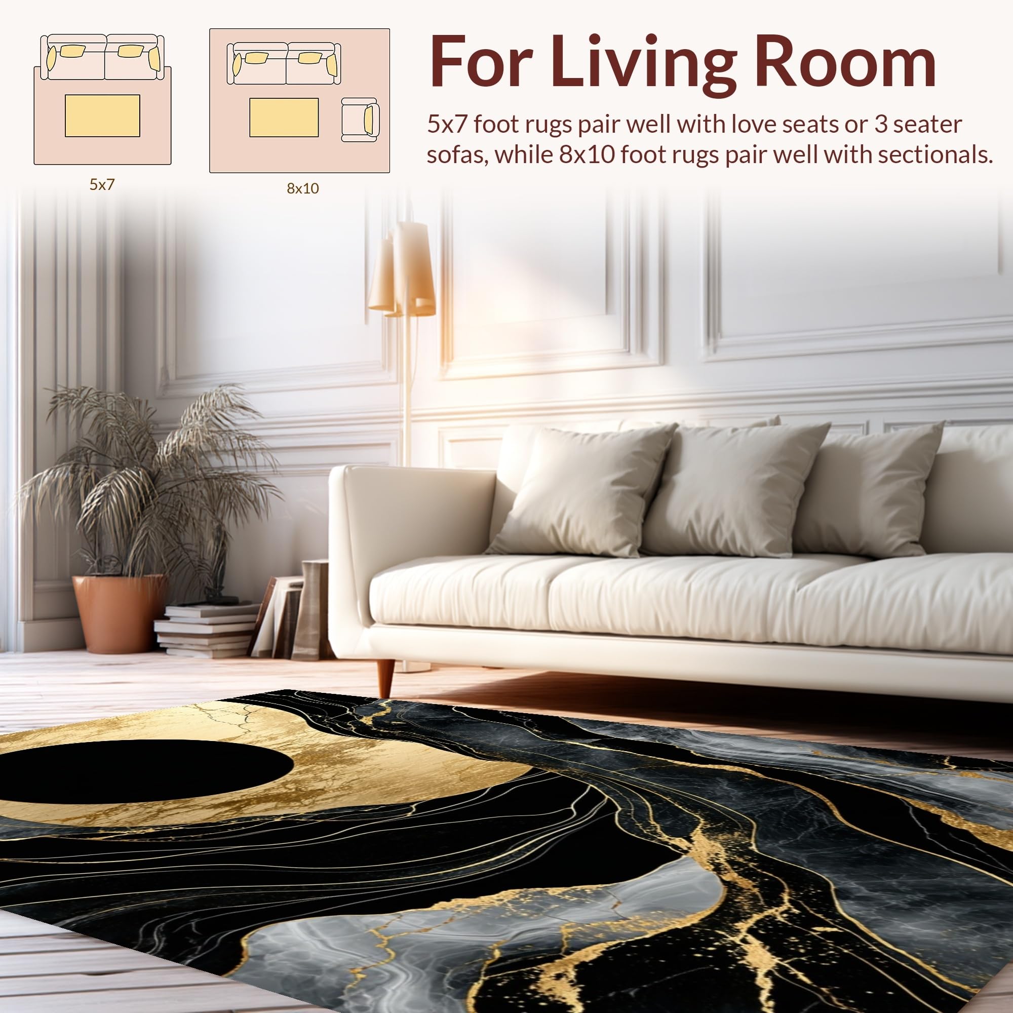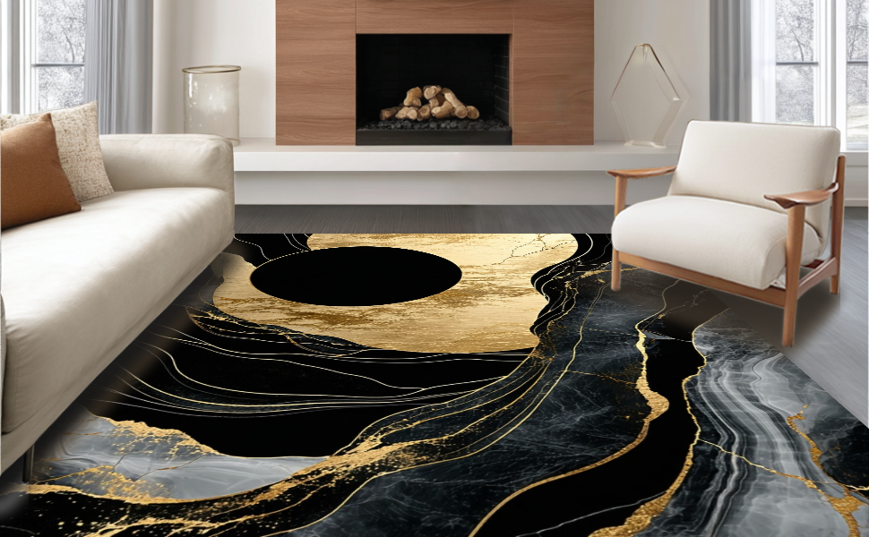 Ultra Soft Area Rug, Non Slip, Stain Resistant, Washable Area Rugs for Living Room, Bedroom, Striking Modernist Gold Highlights(Black) Overview: