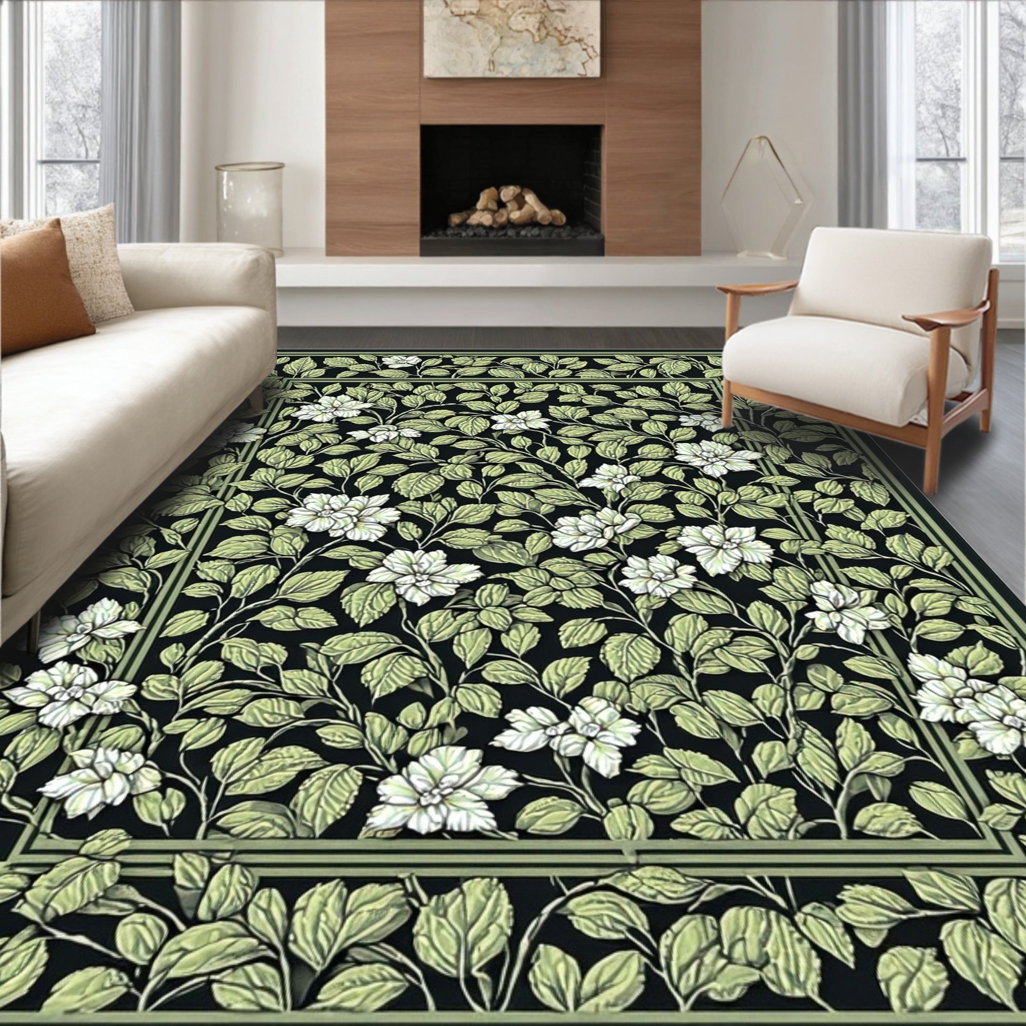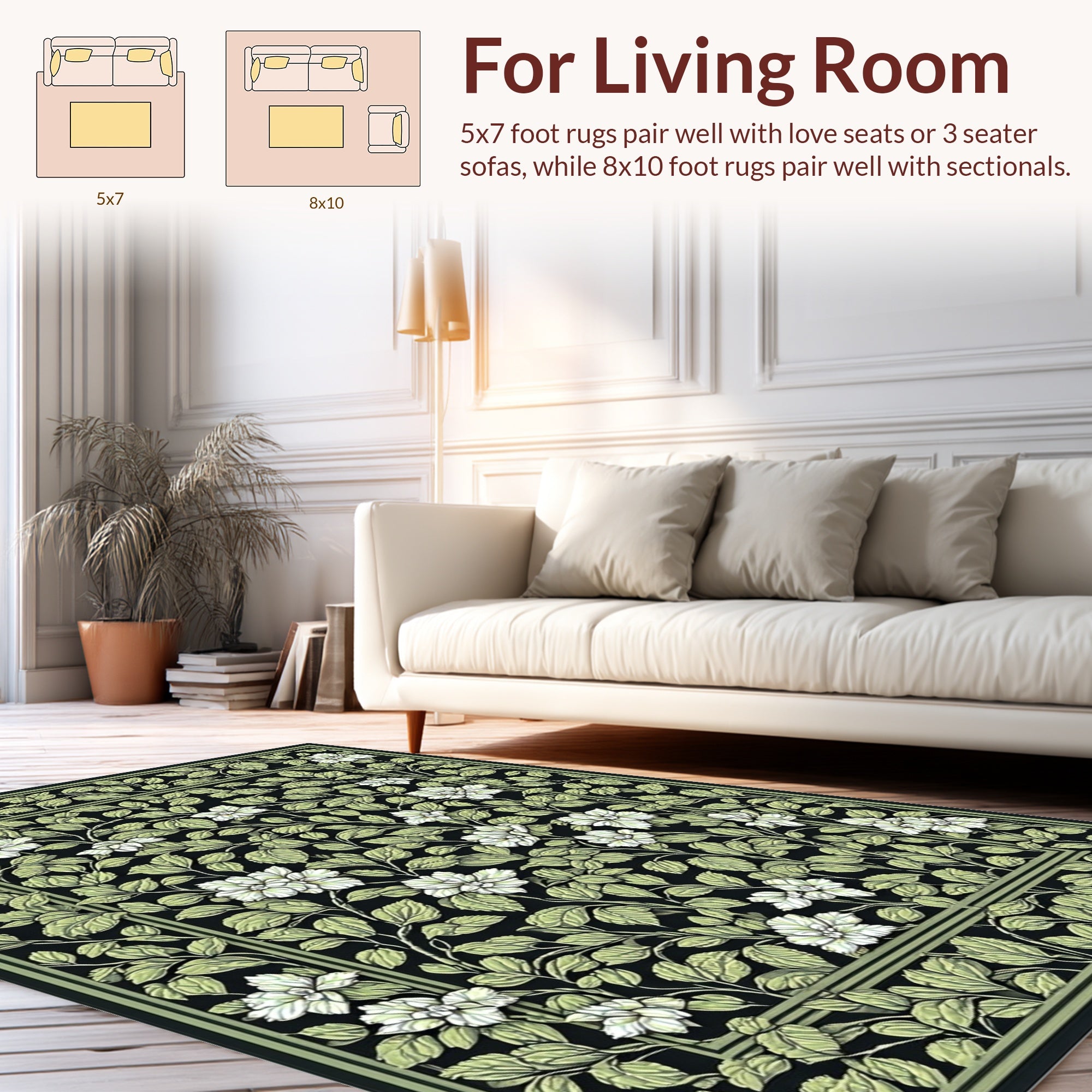 Flatwoven High Traffic Area Rug, Striking Monochrome Plant Motif, Non Slip, Stain Resistant, Washable Area Rugs for Living Room, Bedroom (Black) Overview: