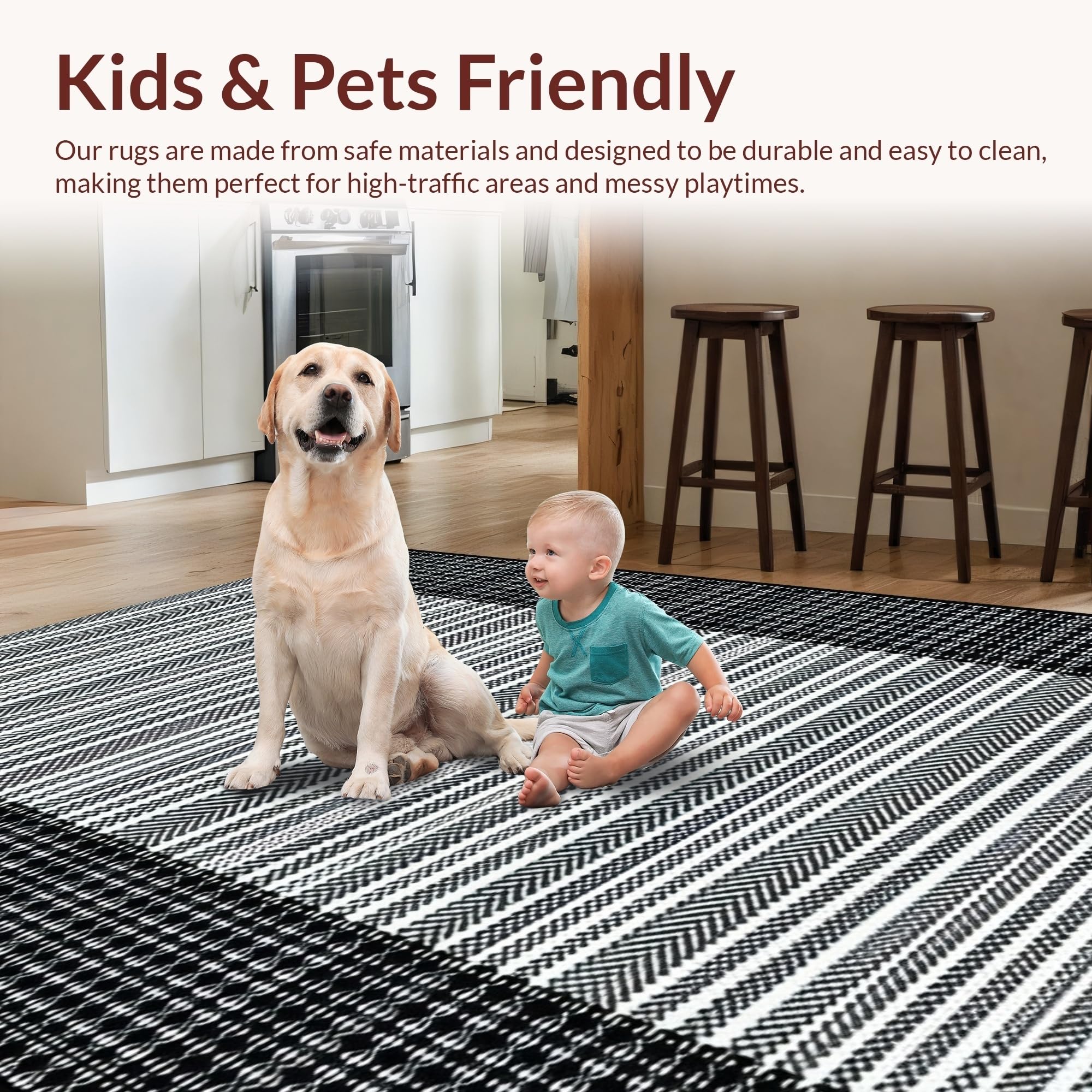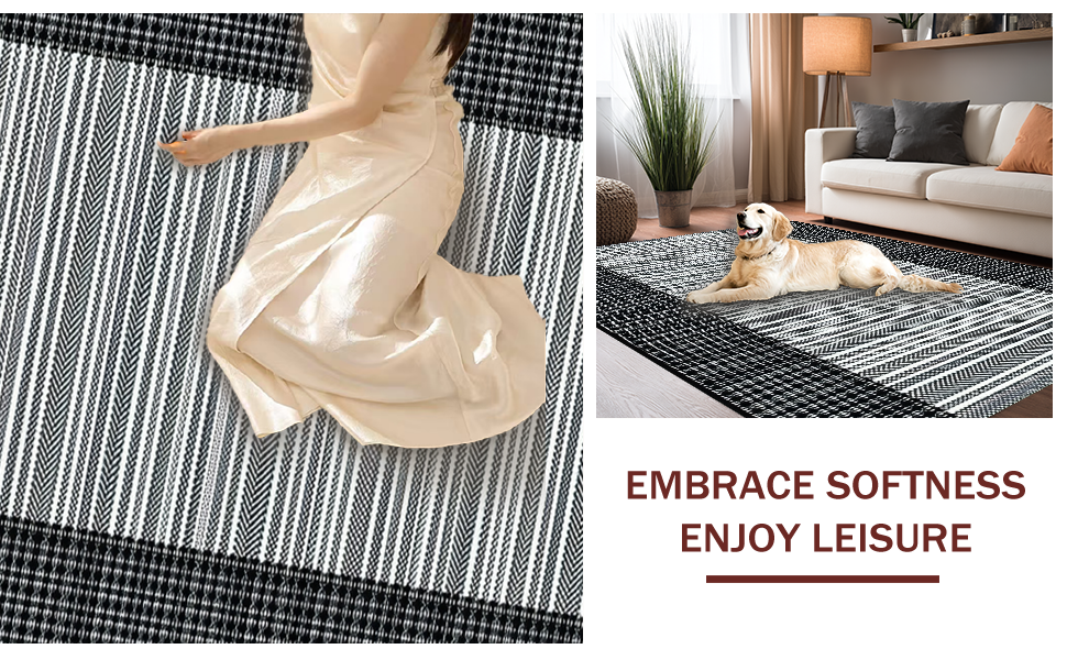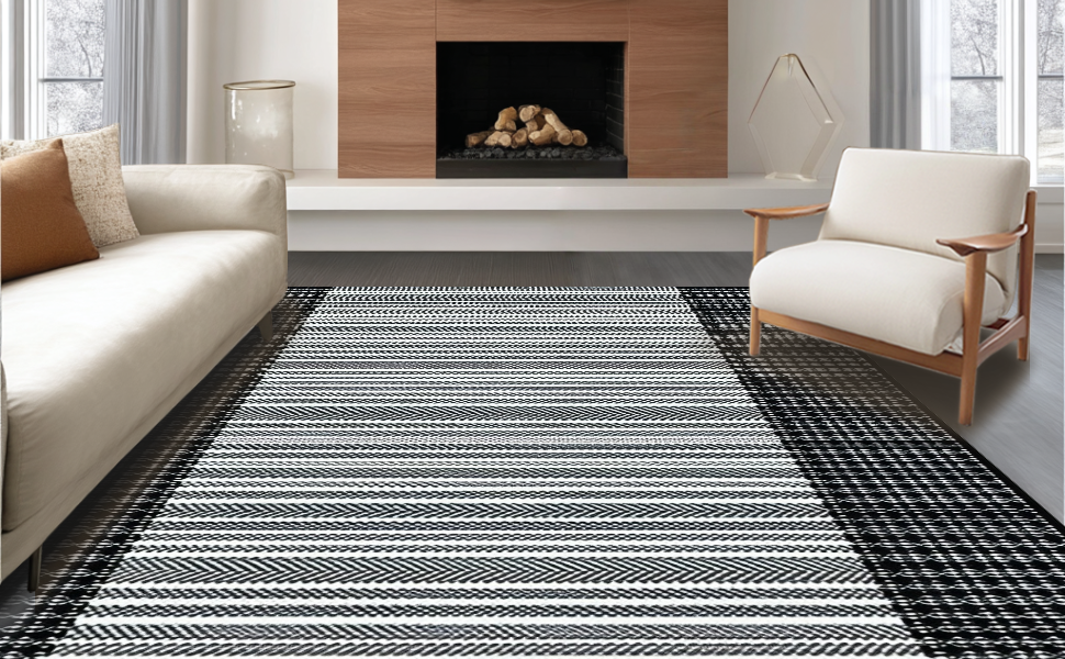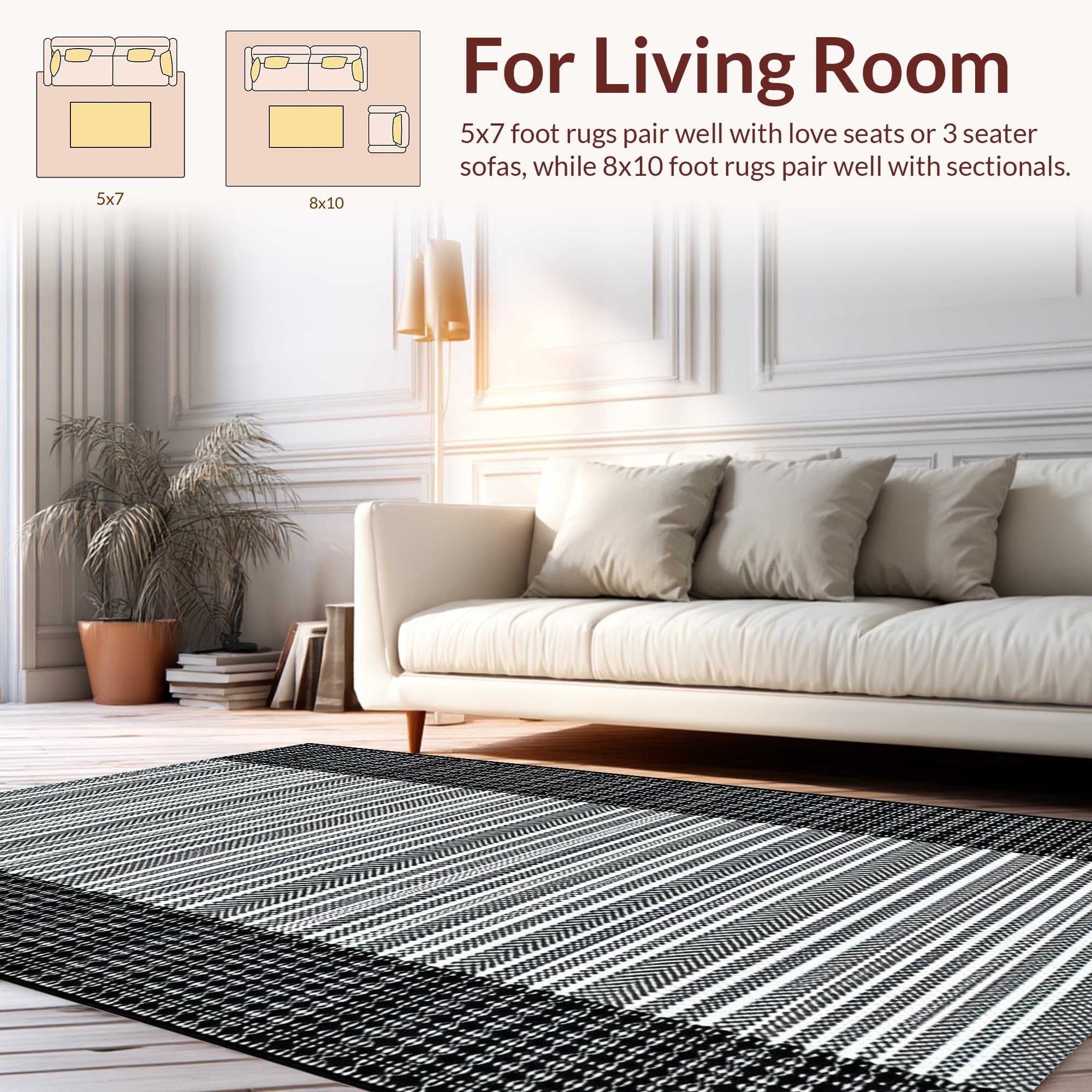 Ultra Soft Area Rug, Non Slip, Stain Resistant, Washable Area Rugs for Living Room, Bedroom, Striking Neutral Floral Elements(Black) Overview: