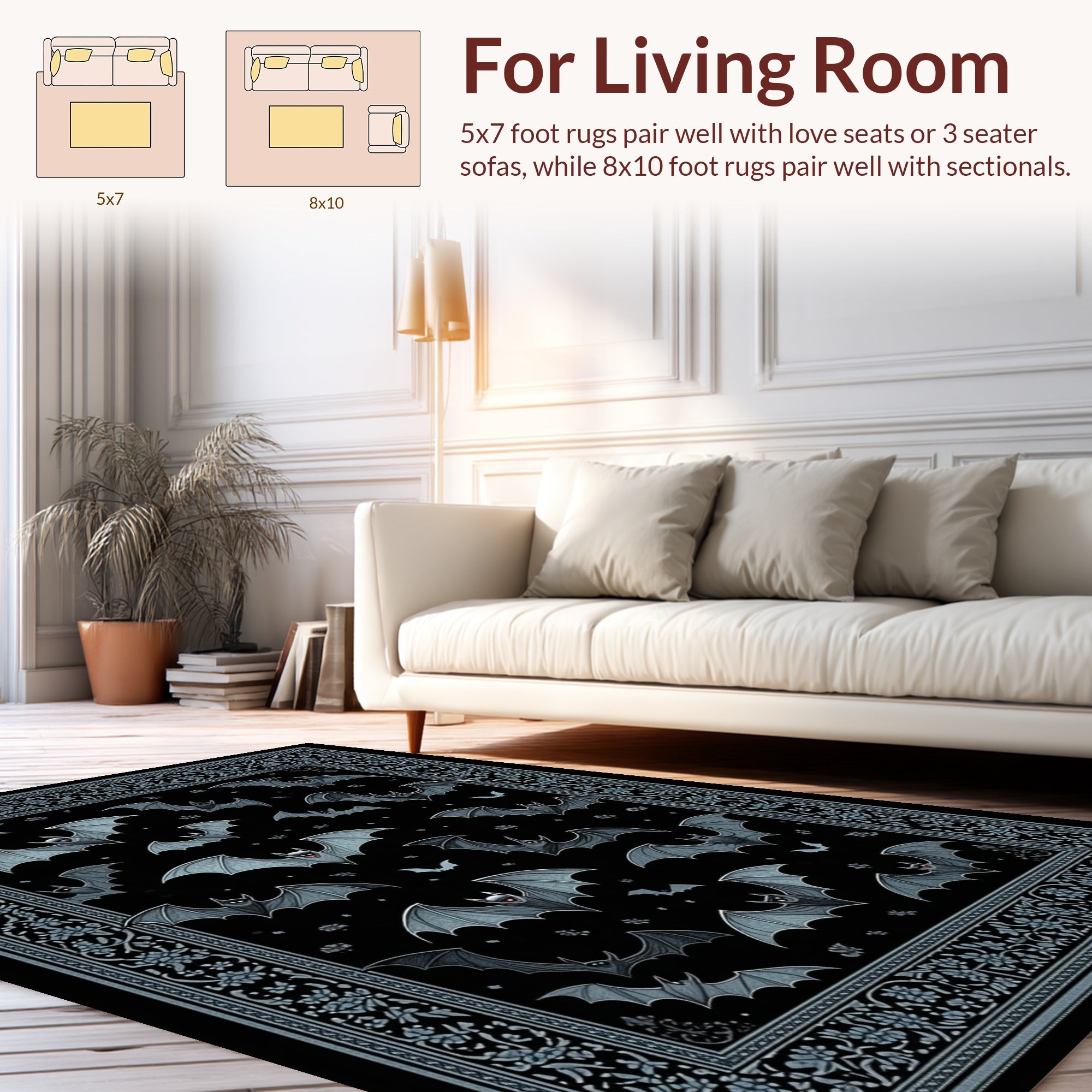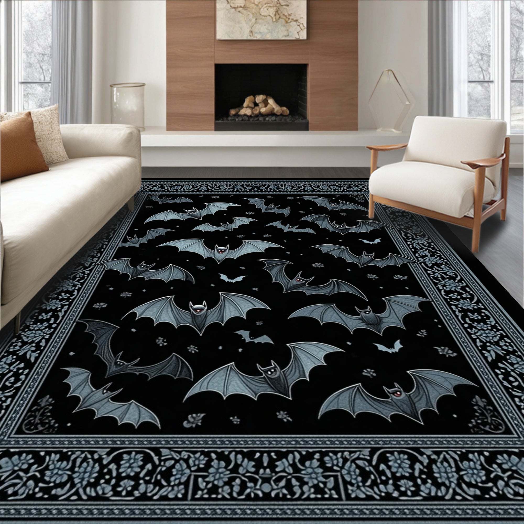 Flatwoven High Traffic Area Rug, Striking Noir Bat, Non Slip, Stain Resistant, Washable Area Rugs for Living Room, Bedroom (Black) Overview: