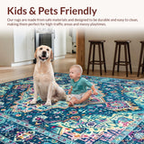 Ultra Soft Area Rug, Non Slip, Stain Resistant, Washable Area Rugs for Living Room, Bedroom, Striking Rustic Medallion Pattern(Blue) Overview: