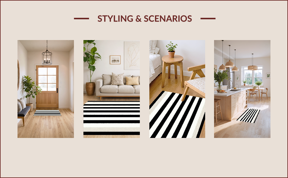 Ultra Soft Area Rug, Non Slip, Stain Resistant, Washable Area Rugs for Living Room, Bedroom, Striped Modern Kitchen Washable Area Rug(Black) Overview: