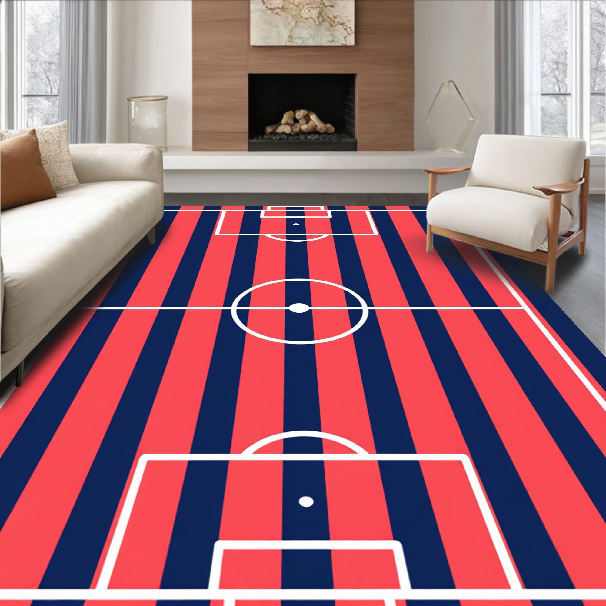 Ultra Soft Area Rug, Non Slip, Stain Resistant, Washable Area Rugs for Living Room, Bedroom, Striped Soccer Field Pitch Markings Design(blue) Overview: