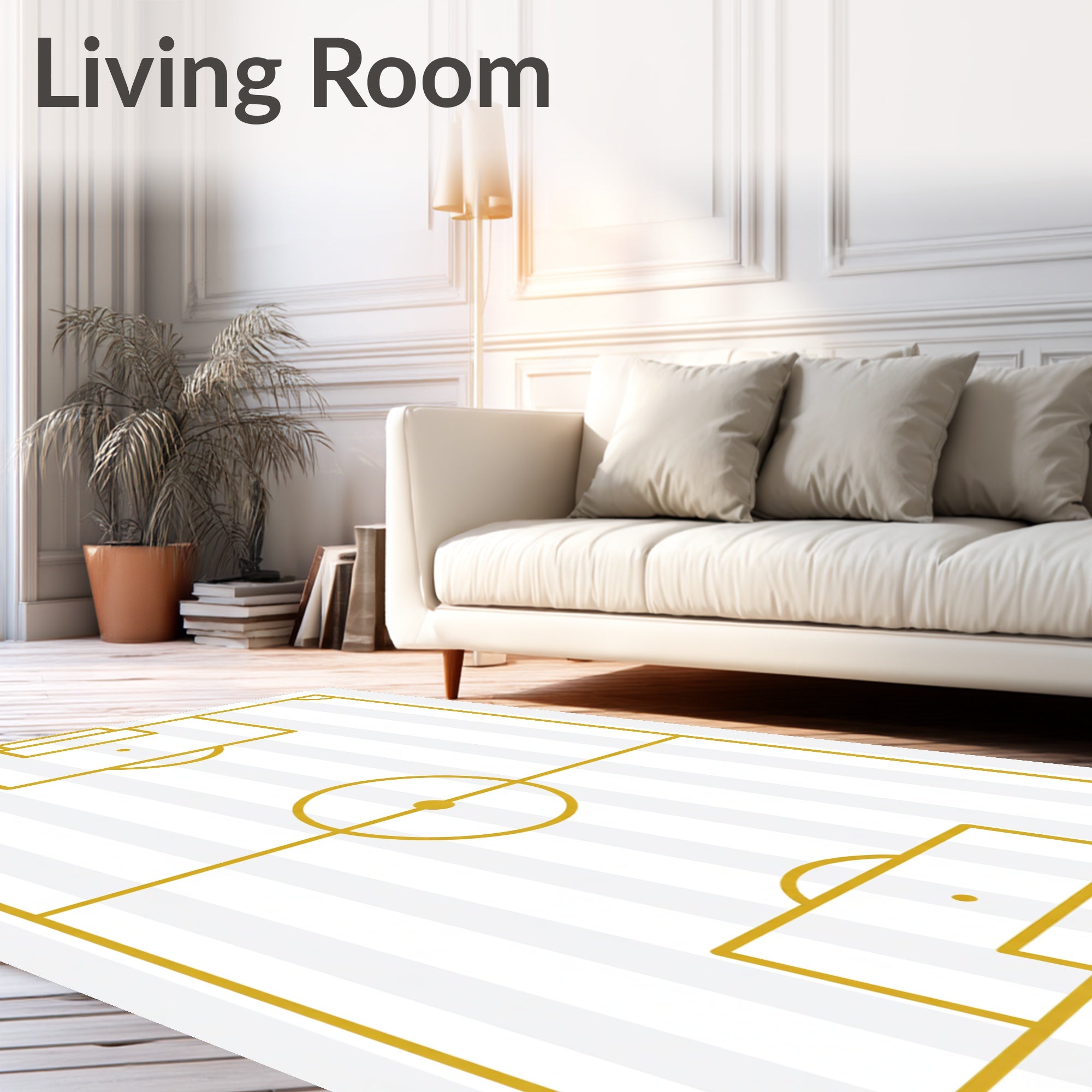 Ultra Soft Area Rug, Non Slip, Stain Resistant, Washable Area Rugs for Living Room, Bedroom, Striped Soccer Field Pitch Markings(gold) Overview: