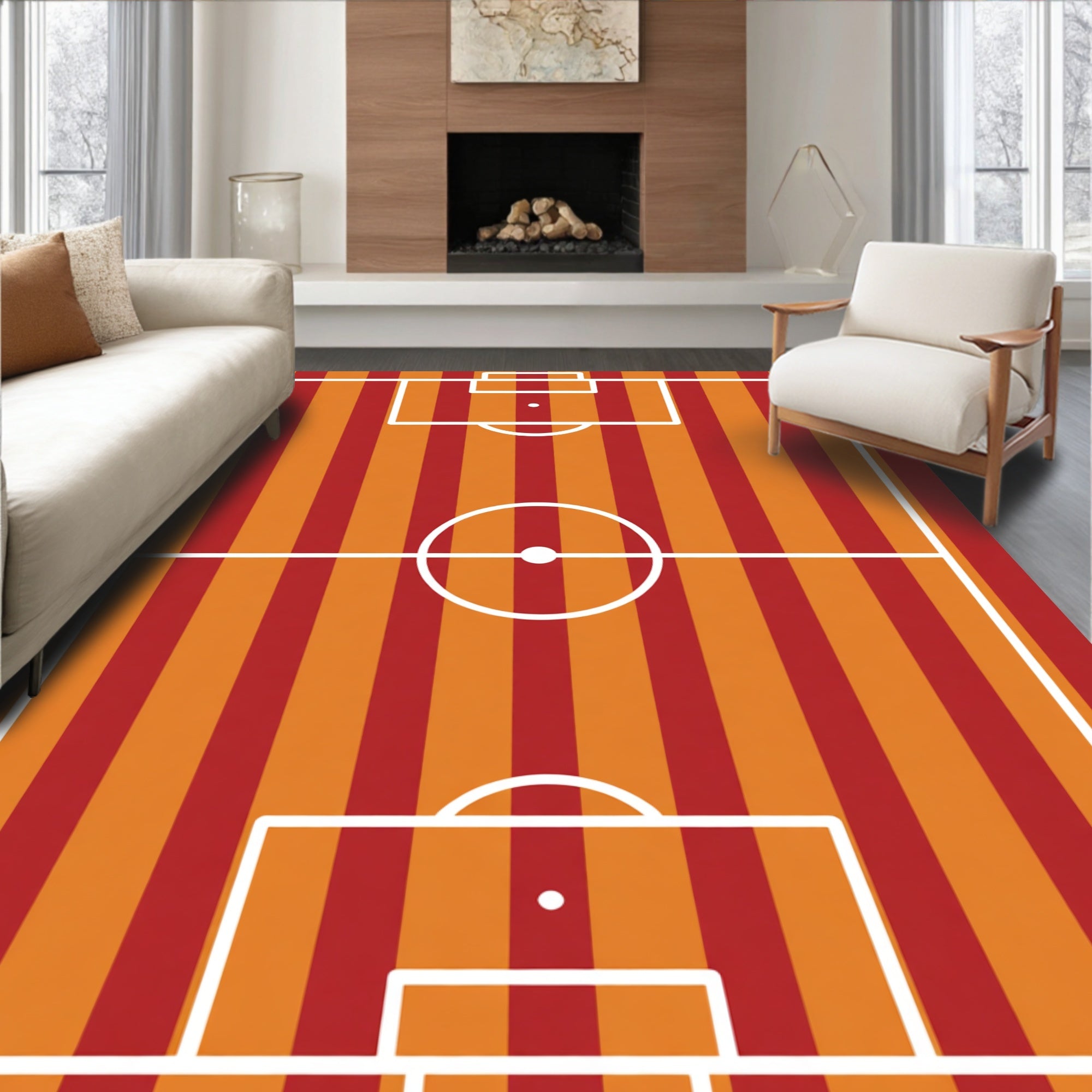 Ultra Soft Area Rug, Non Slip, Stain Resistant, Washable Area Rugs for Living Room, Bedroom, Striped Soccer Field(orange) Overview:
