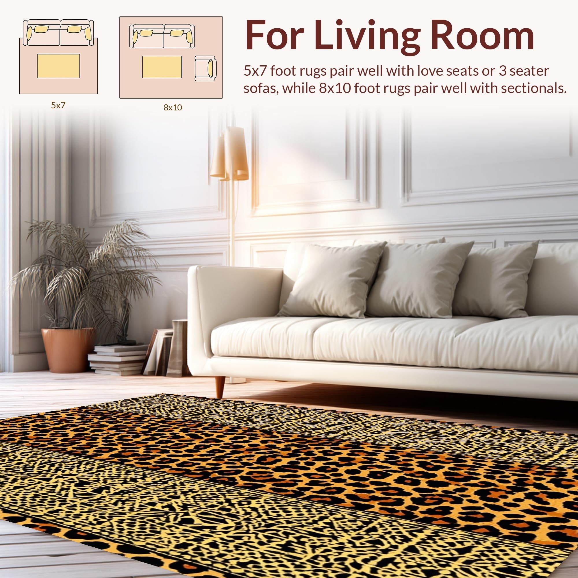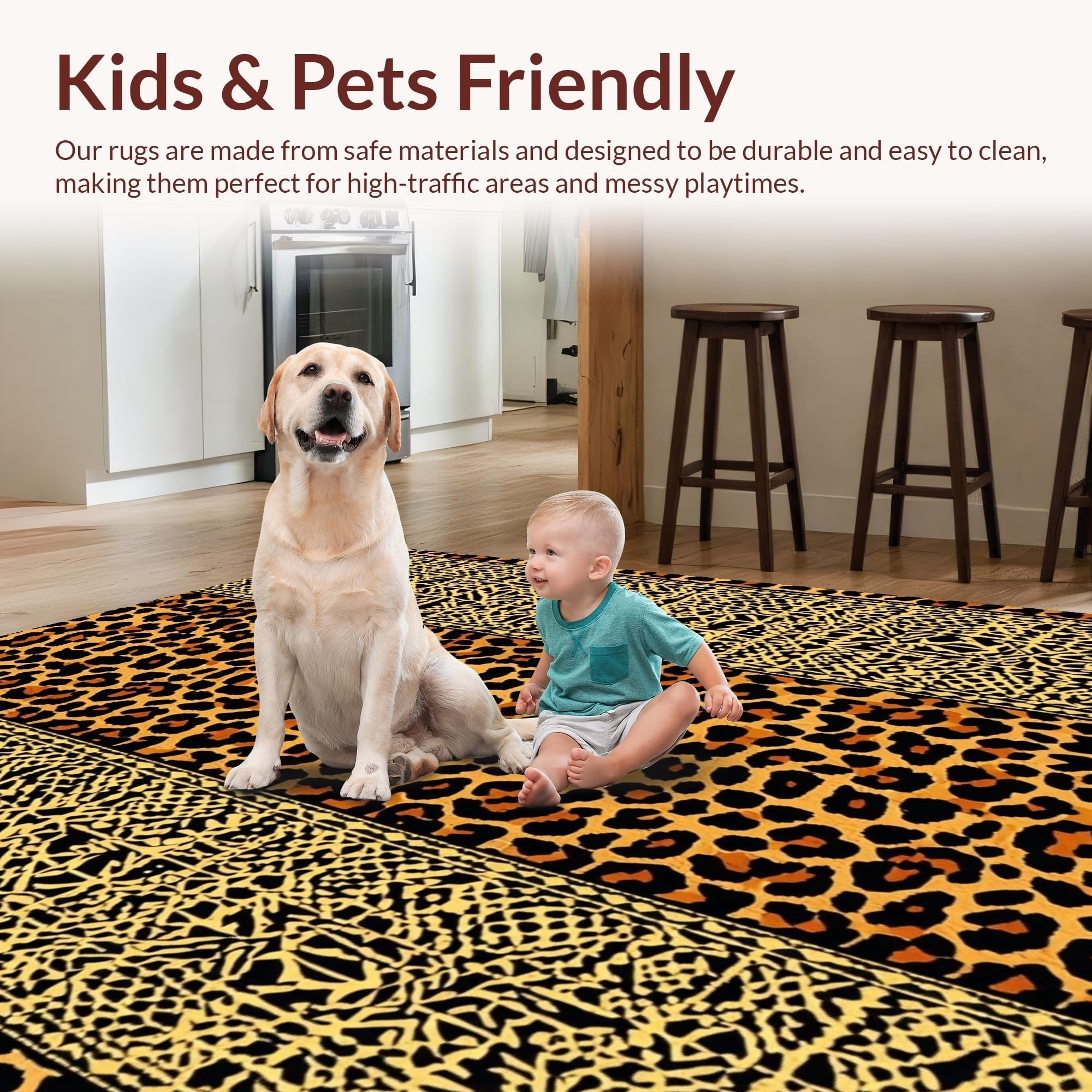 Ultra Soft Area Rug, Non Slip, Stain Resistant, Washable Area Rugs for Living Room, Bedroom, Stylish Abstract Animal Imagery(Brown) Overview: