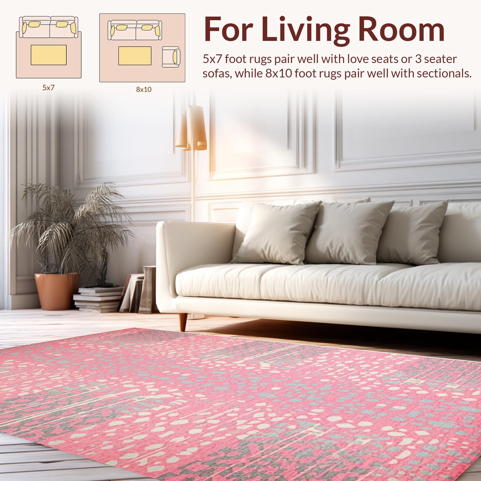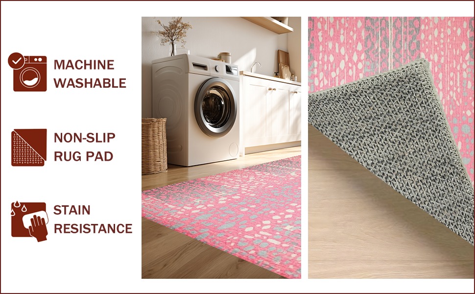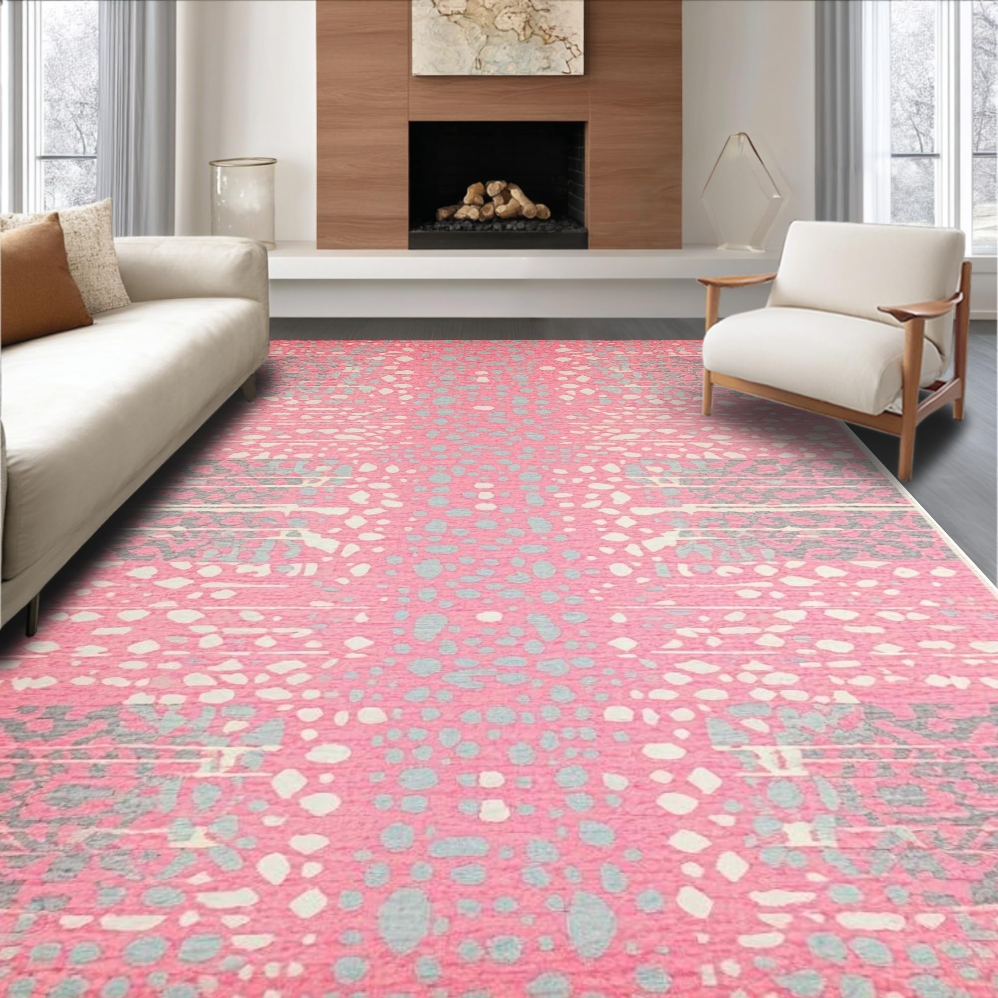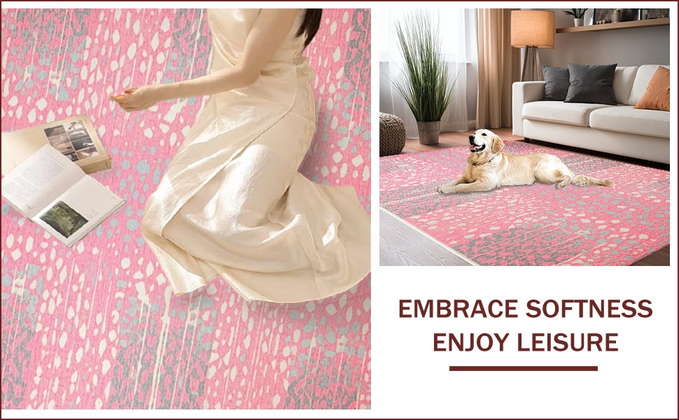 Ultra Soft Area Rug, Non Slip, Stain Resistant, Washable Area Rugs for Living Room, Bedroom, Stylish Abstract Animal Motif(Pink) Overview: