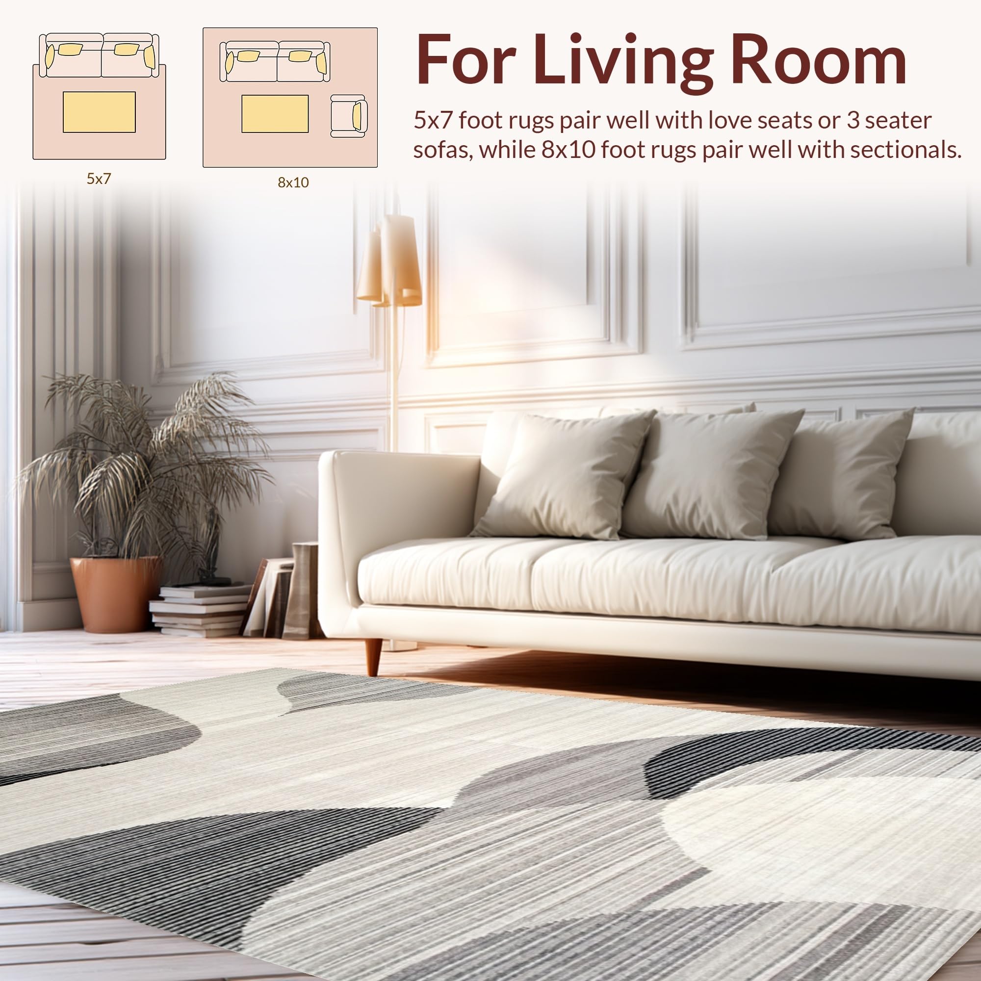 Ultra Soft Area Rug, Non Slip, Stain Resistant, Washable Area Rugs for Living Room, Bedroom, Stylish Abstract Earthy Design(Gray) Overview: