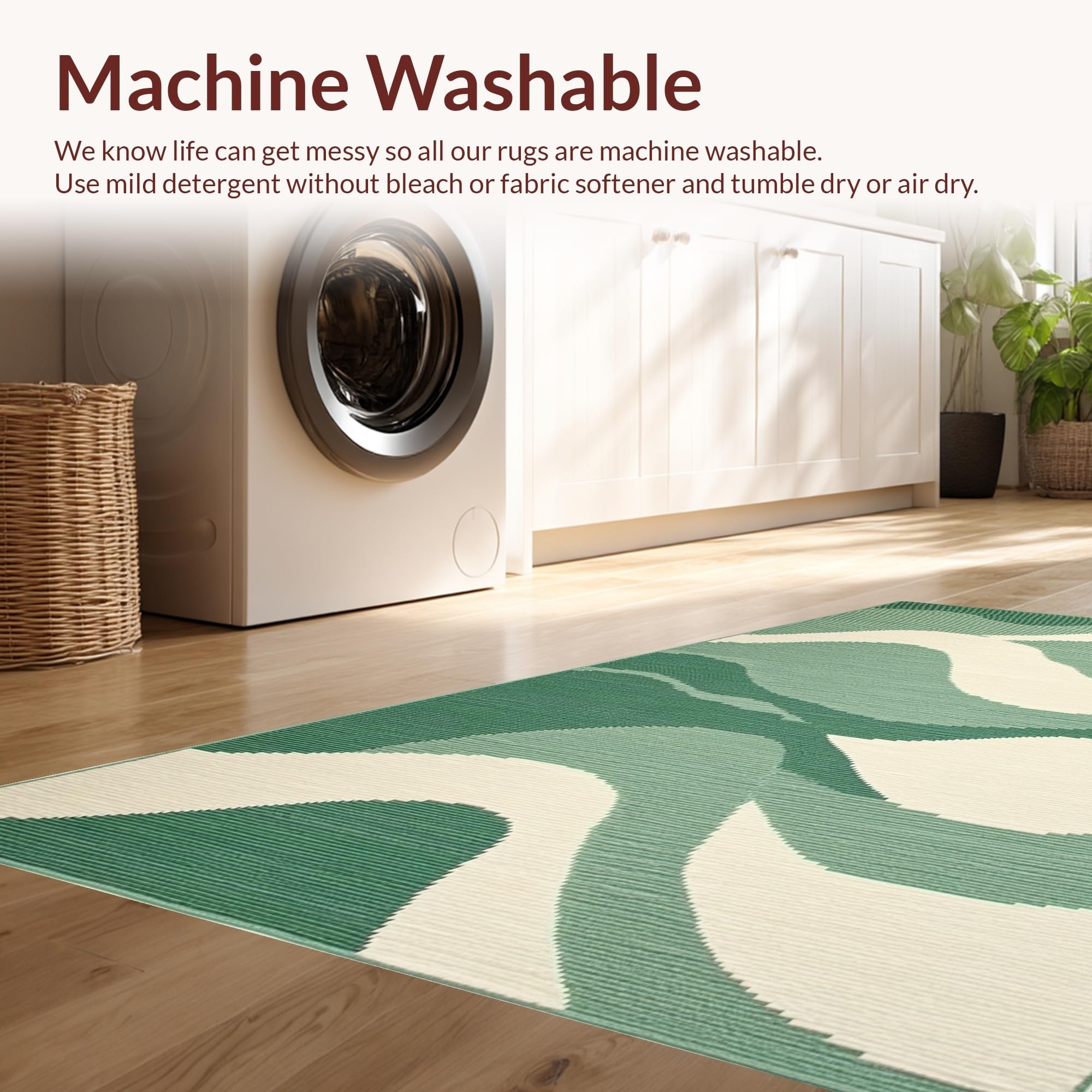 - Machine Washable: Our rugs can be easily thrown in the wash machine.