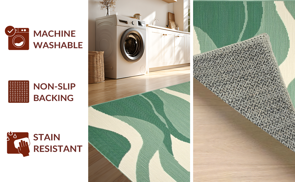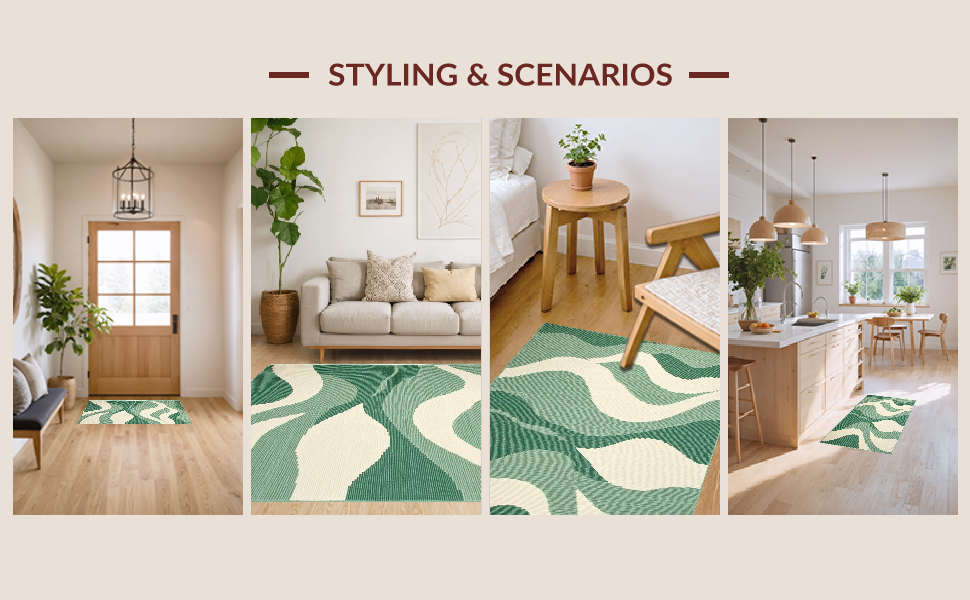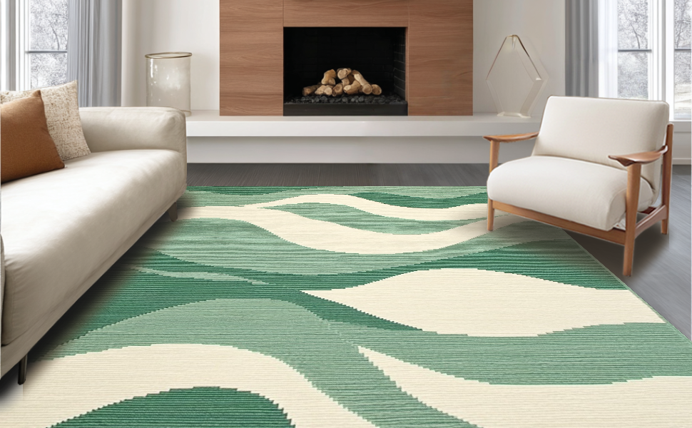 Ultra Soft Area Rug, Non Slip, Stain Resistant, Washable Area Rugs for Living Room, Bedroom, Stylish Abstract Expressionism Theme(Green) Overview: