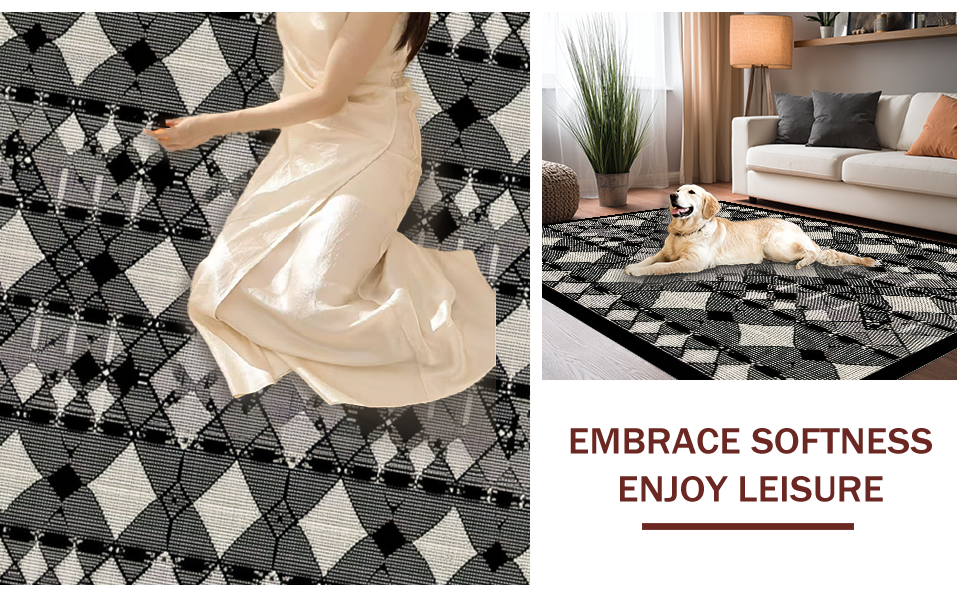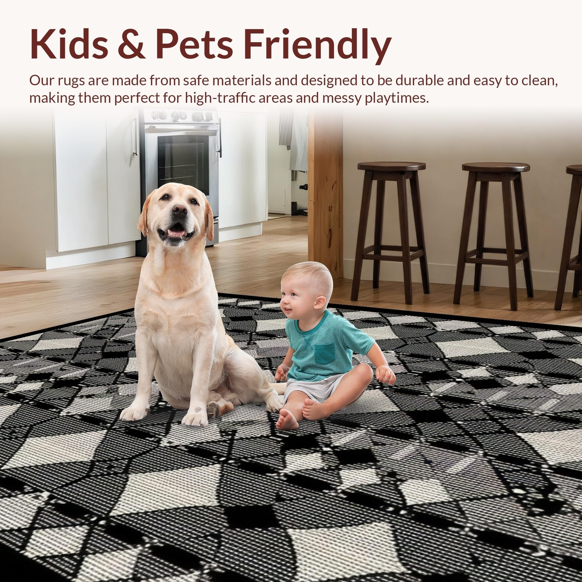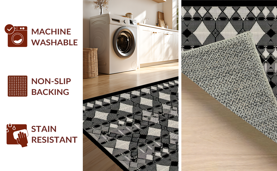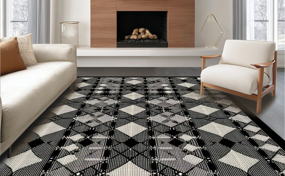 Ultra Soft Area Rug, Non Slip, Stain Resistant, Washable Area Rugs for Living Room, Bedroom, Stylish Abstract Monochrome Artistry(Black) Overview: