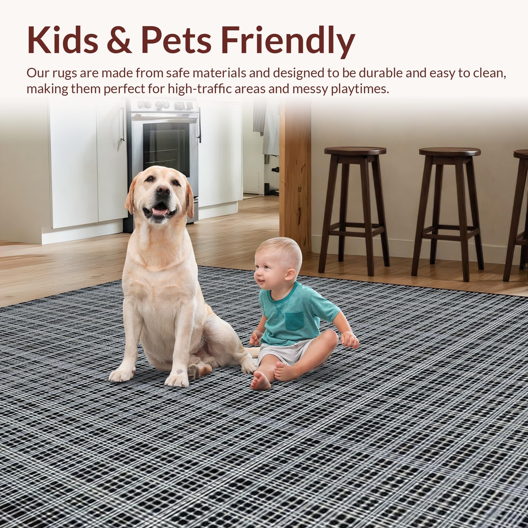 Ultra Soft Area Rug, Non Slip, Stain Resistant, Washable Area Rugs for Living Room, Bedroom, Stylish Abstract Monochrome Motif(Gray) Overview: