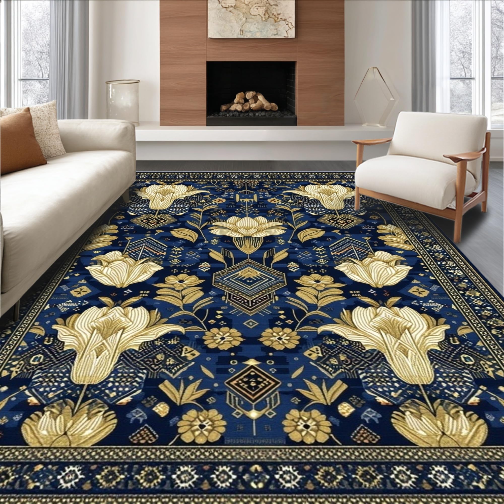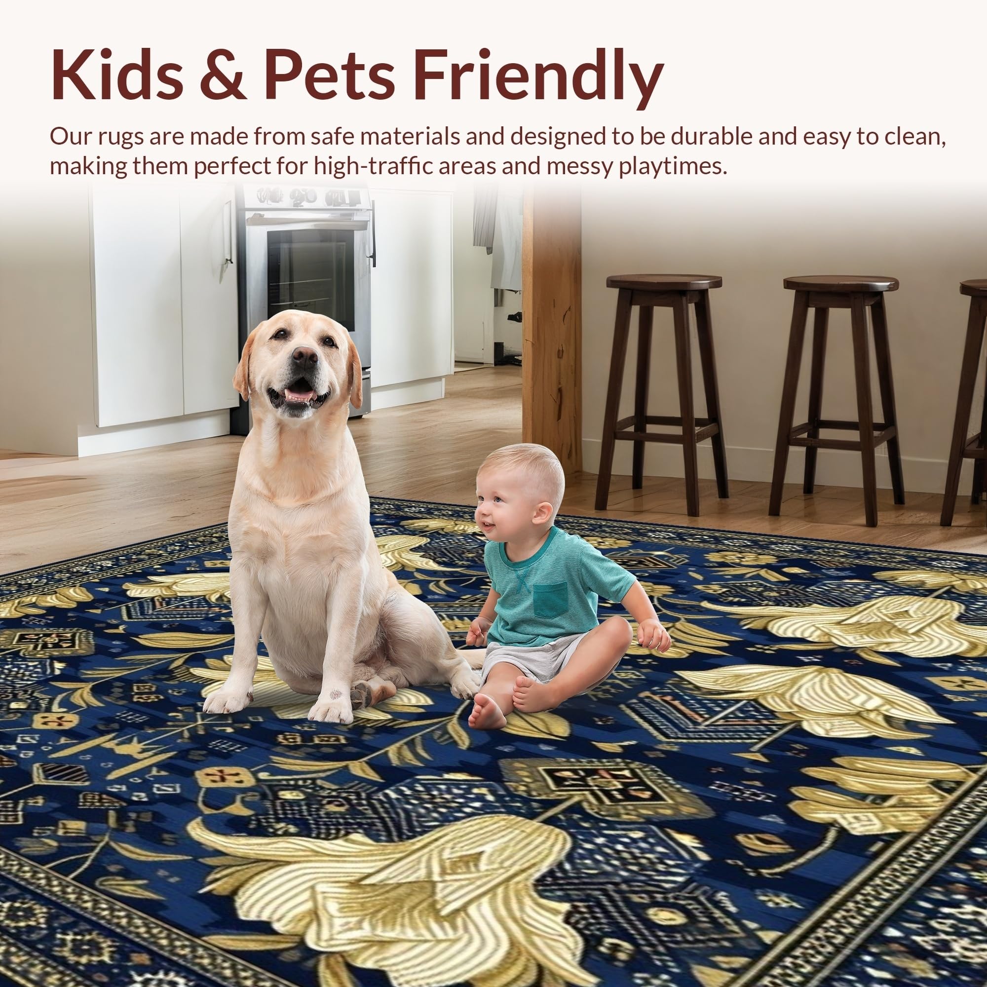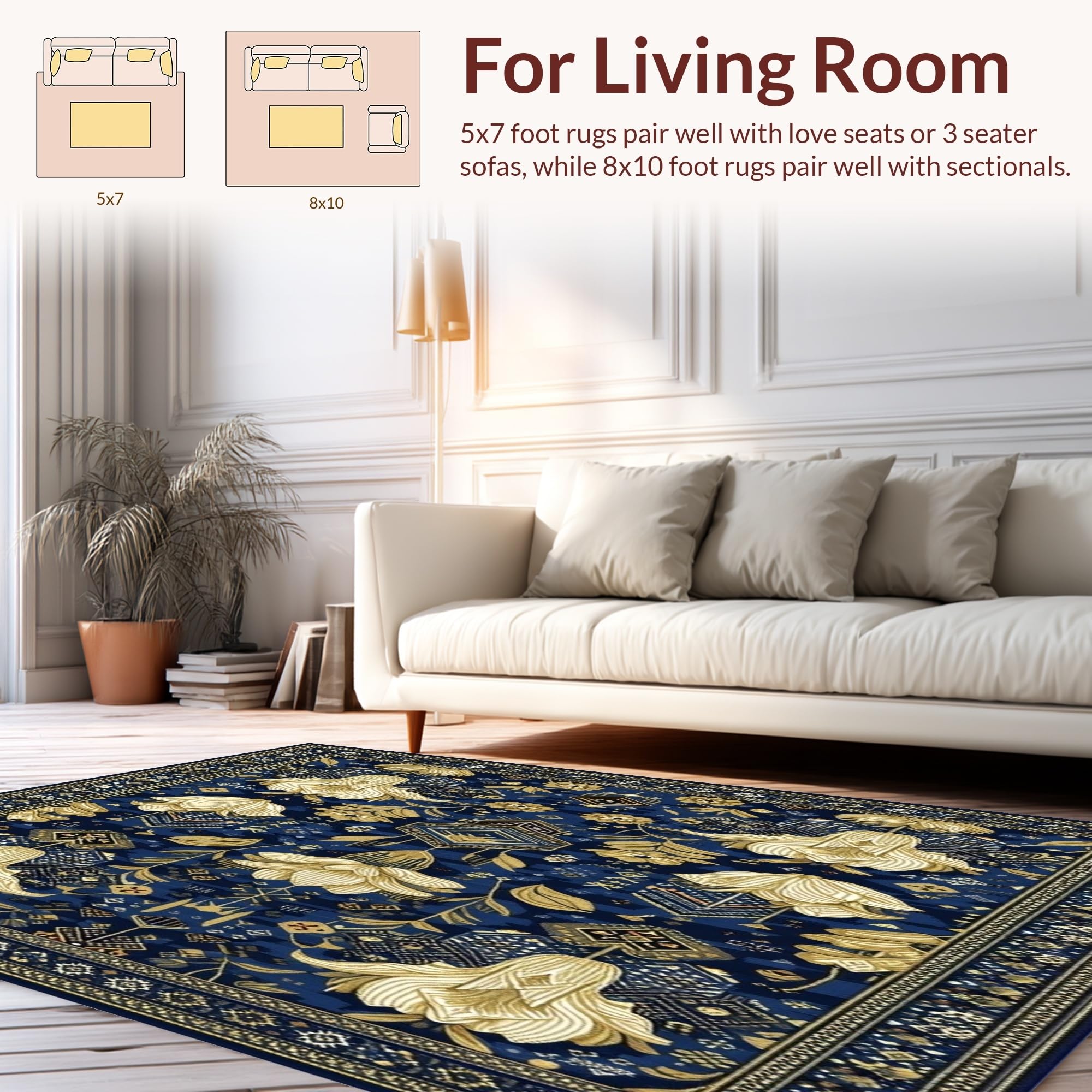 Ultra Soft Area Rug, Non Slip, Stain Resistant, Washable Area Rugs for Living Room, Bedroom, Stylish Area Featuring Abstract Animal Design and Geometric(Blue) Overview: