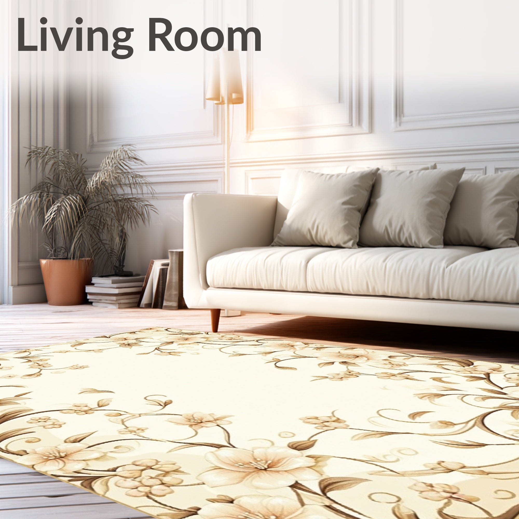 Flatwoven High Traffic Area Rug, Stylish with Elegant Floral Design for Effortless Style, Non Slip, Stain Resistant, Washable Area Rugs for Living Room, Bedroom (Beige) Overview: