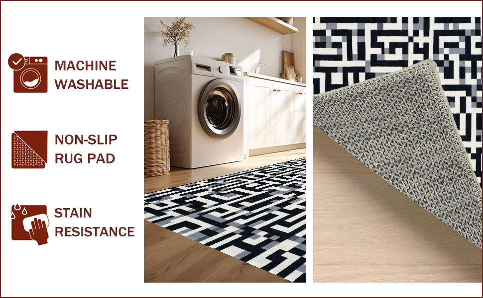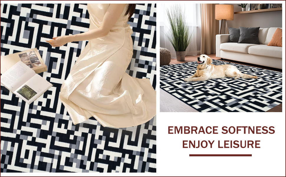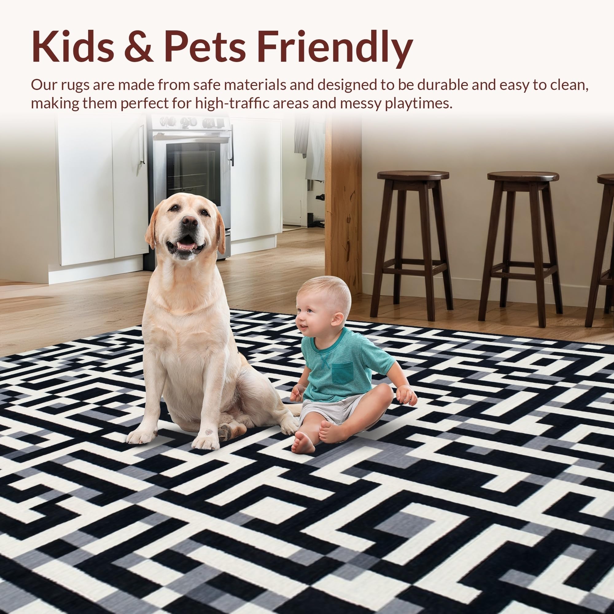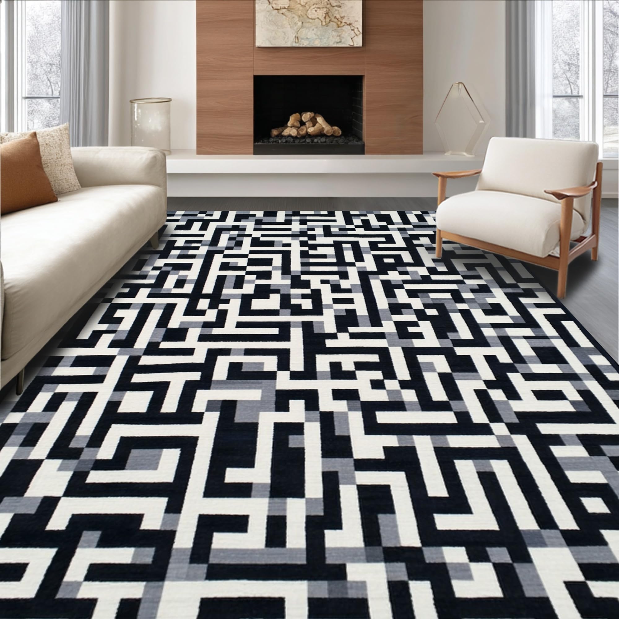 Ultra Soft Area Rug, Non Slip, Stain Resistant, Washable Area Rugs for Living Room, Bedroom, Stylish Black and White Chevron Design(Black) Overview: