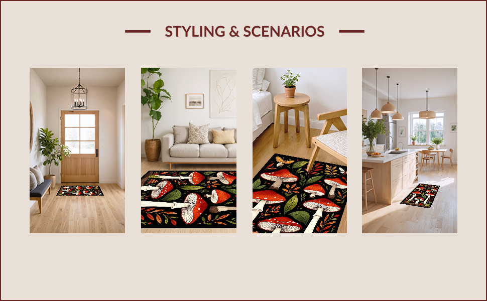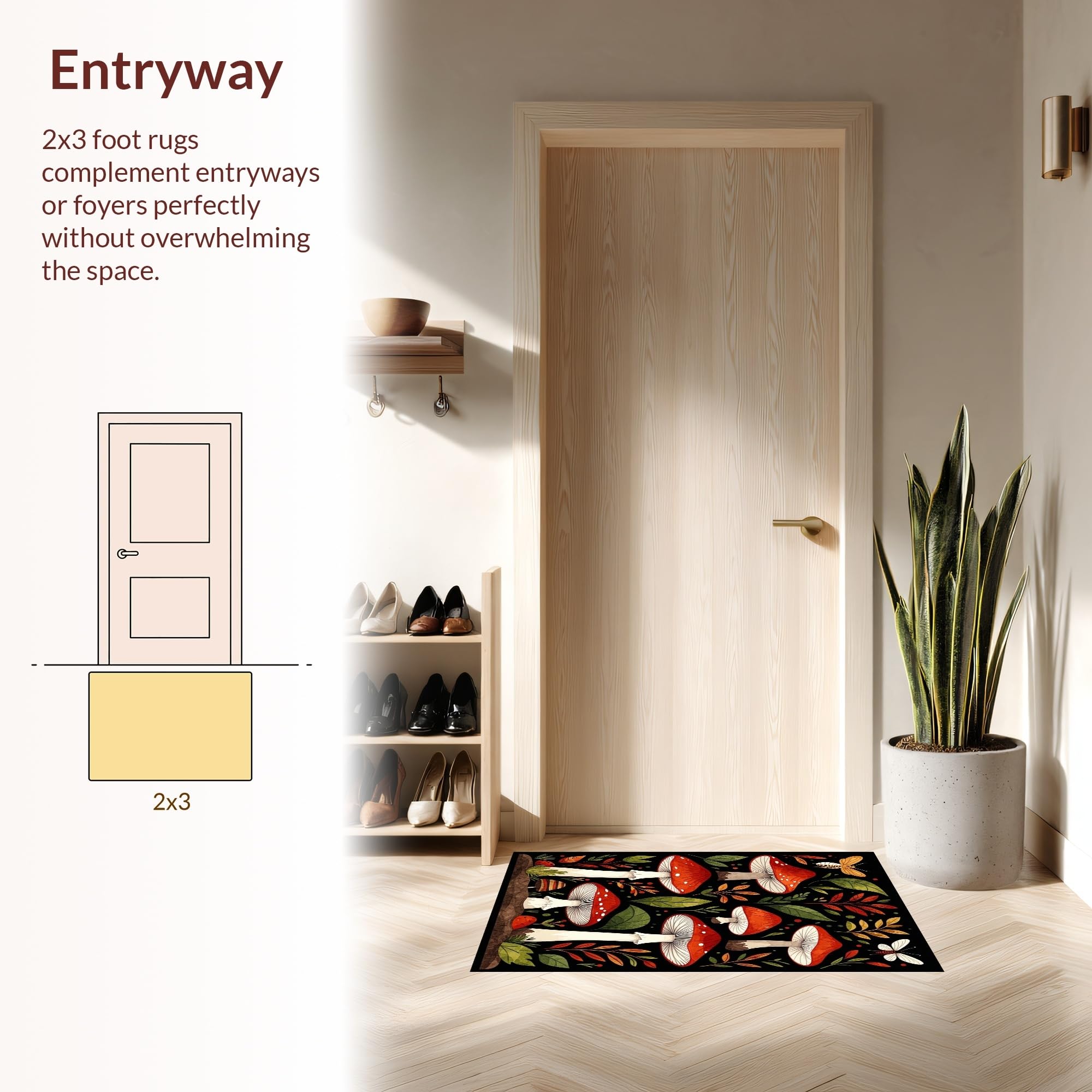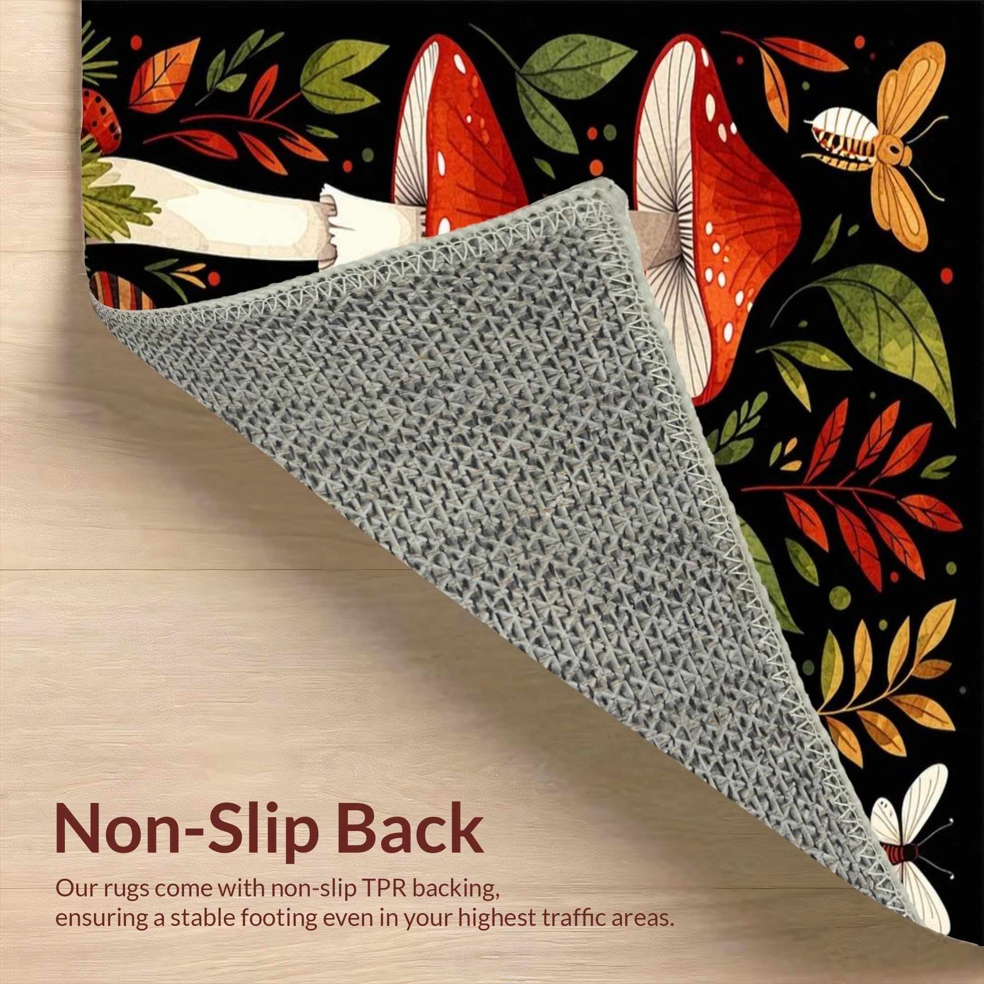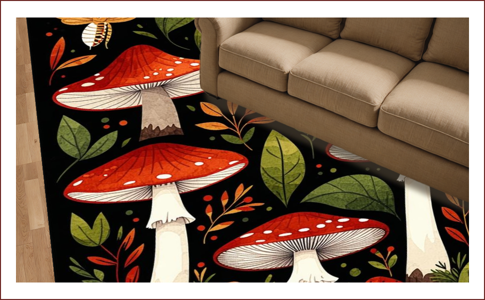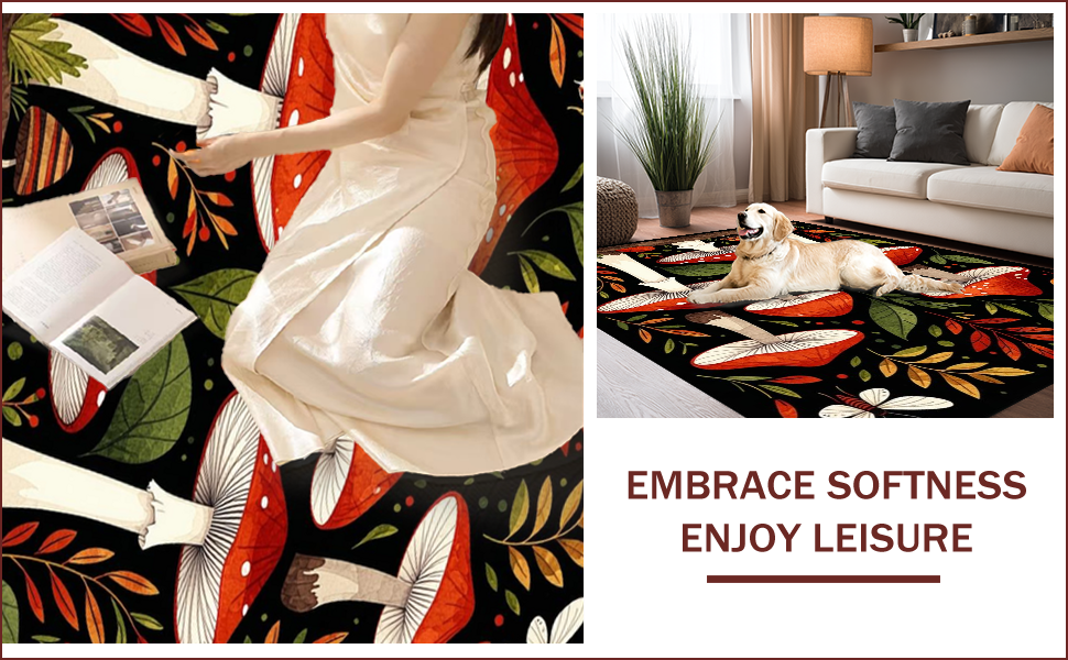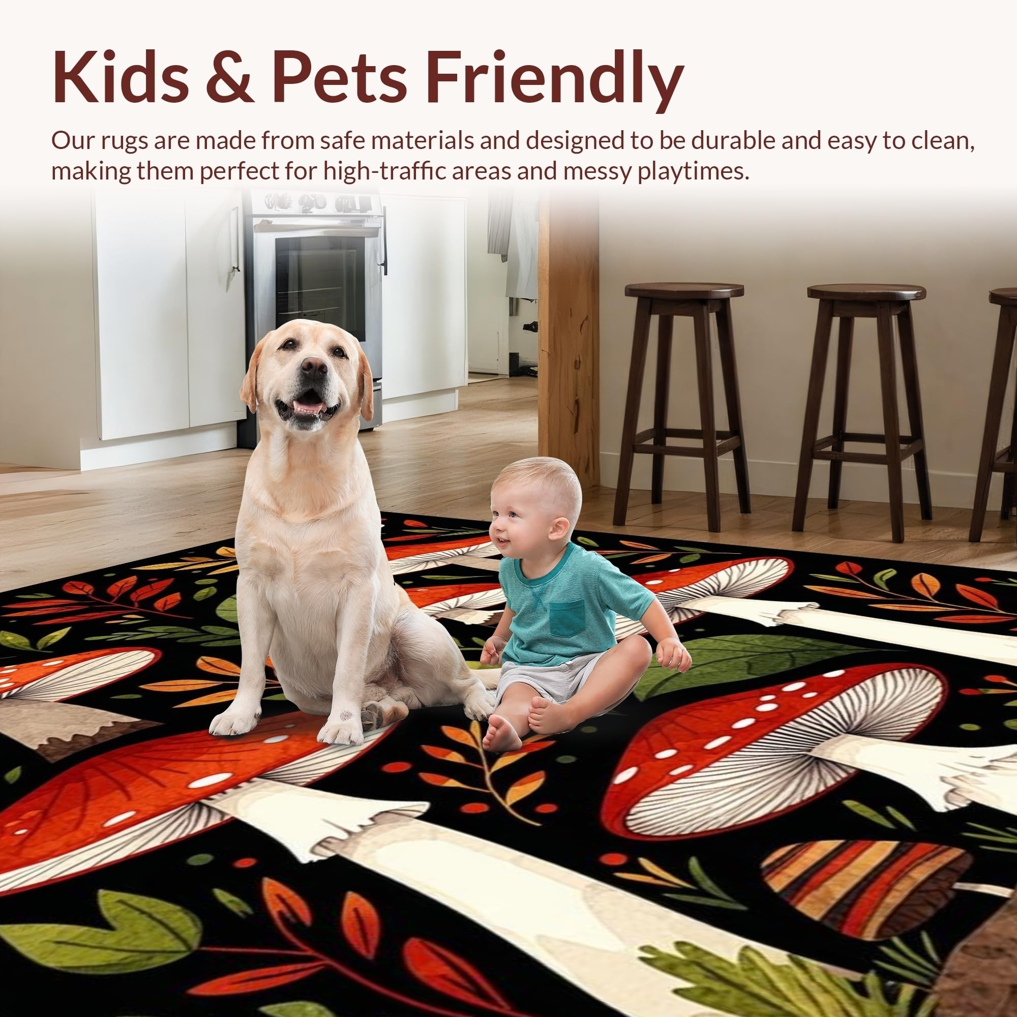 Ultra Soft Area Rug, Non Slip, Stain Resistant, Washable Area Rugs for Living Room, Bedroom, Stylish Black Nature Theme(Red) Overview: